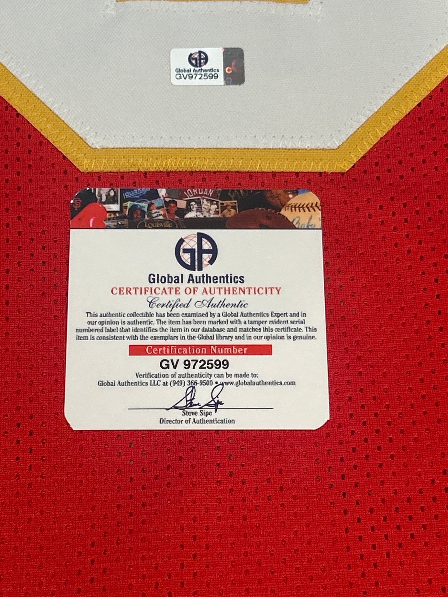 Signature has been certified, but What's In The Box does not recognize Global Authentics as a reputable authentication company. For that reason, we cannot guarantee authentic signature.