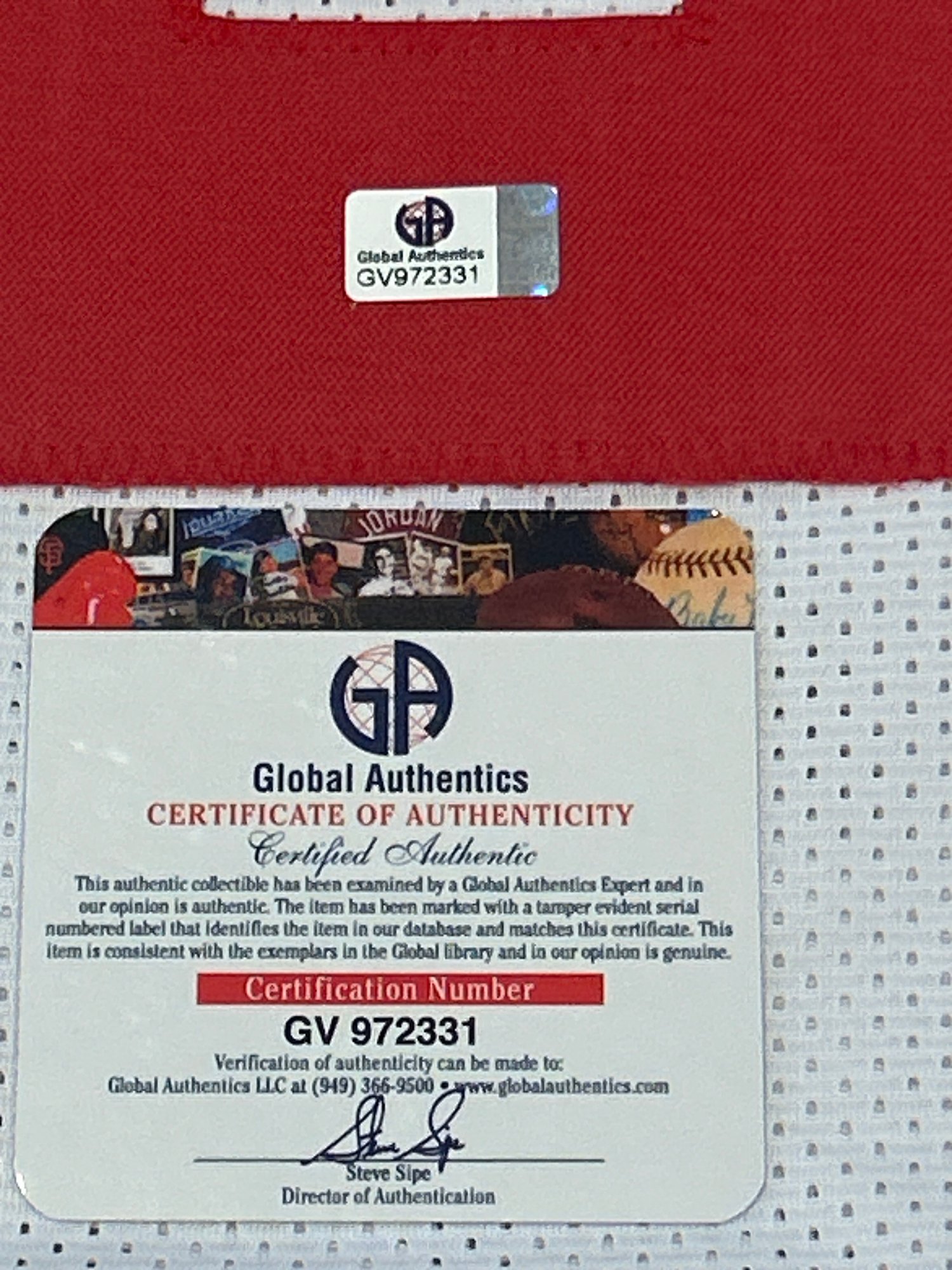 Signature has been certified, but What's In The Box does not recognize Global Authentics as a reputable authentication company. For that reason, we cannot guarantee authentic signature.