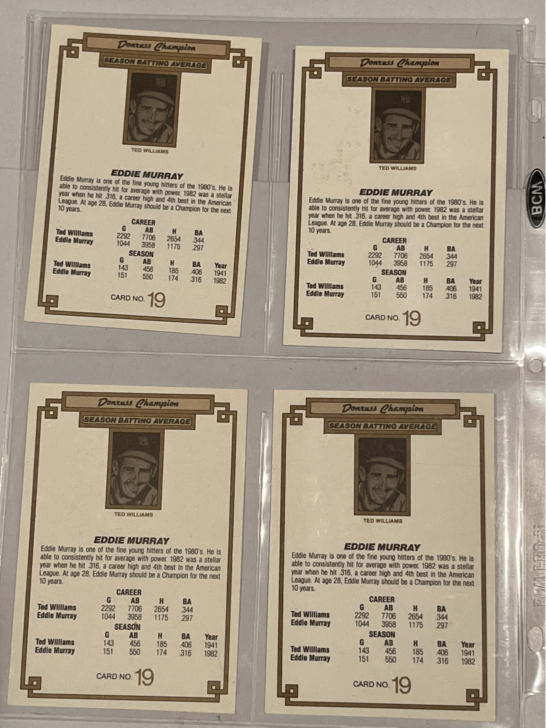 Eddie Murray lot Of 4 Donruss large cards