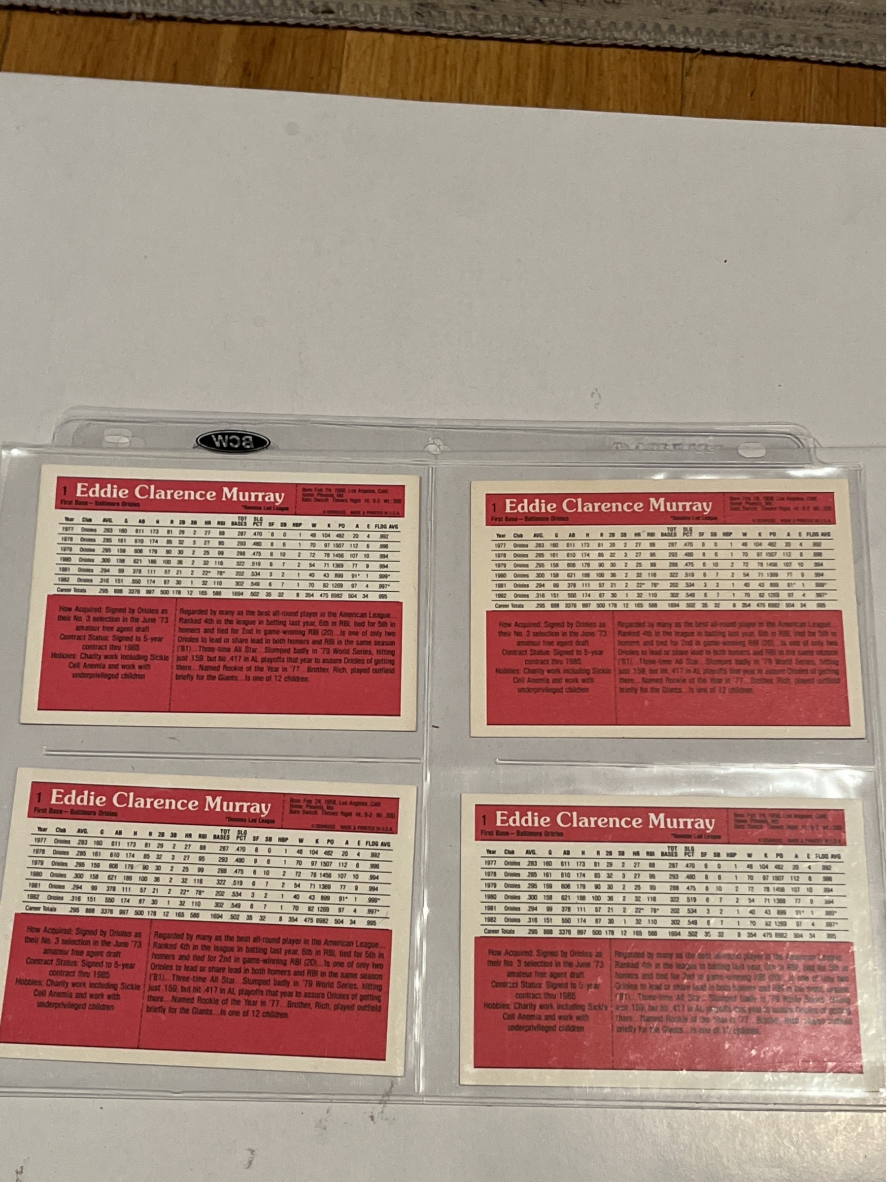 Eddie Murray lot Of 4 Donruss large cards