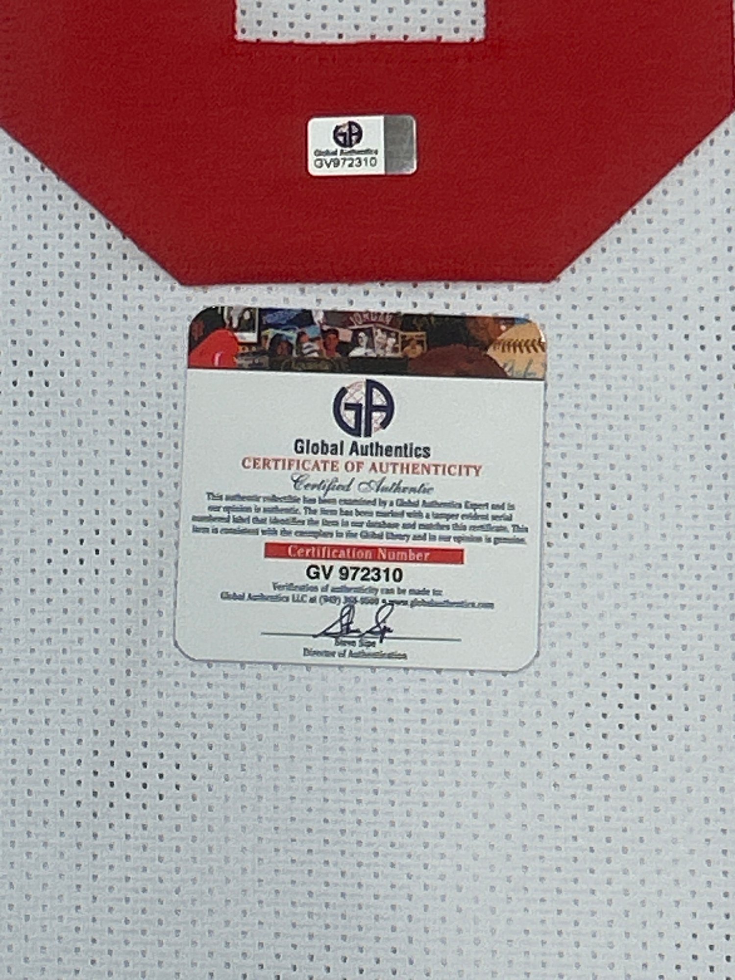 Signature has been certified, but What's In The Box does not recognize Global Authentics as a reputable authentication company. For that reason, we cannot guarantee authentic signature.