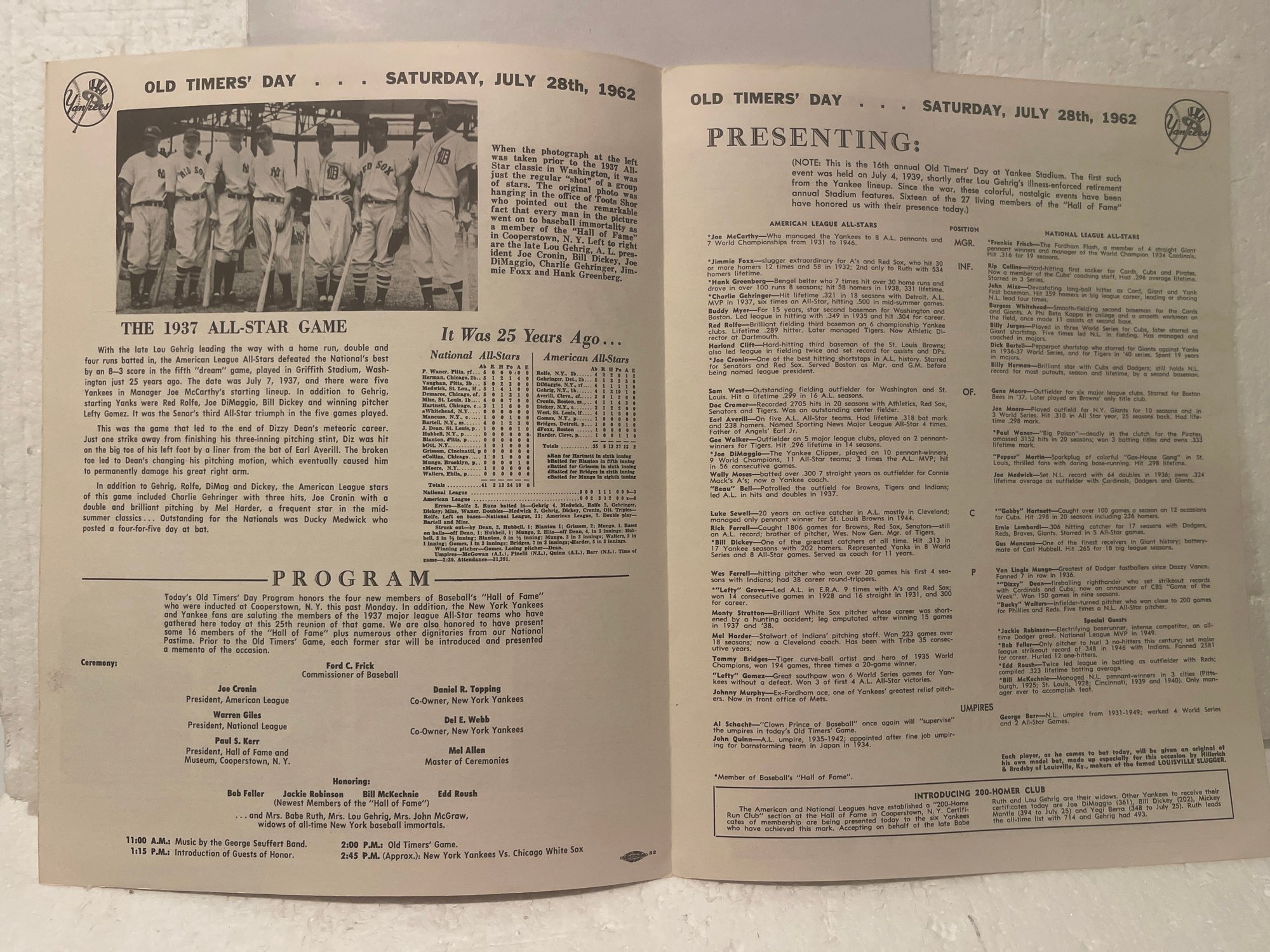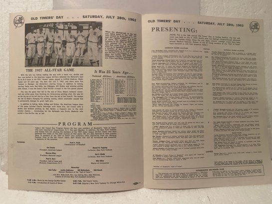 NEW YORK YANKEES 16TH ANNUAL OLD TIMERS DAY PROGRAM JULY 28 1962