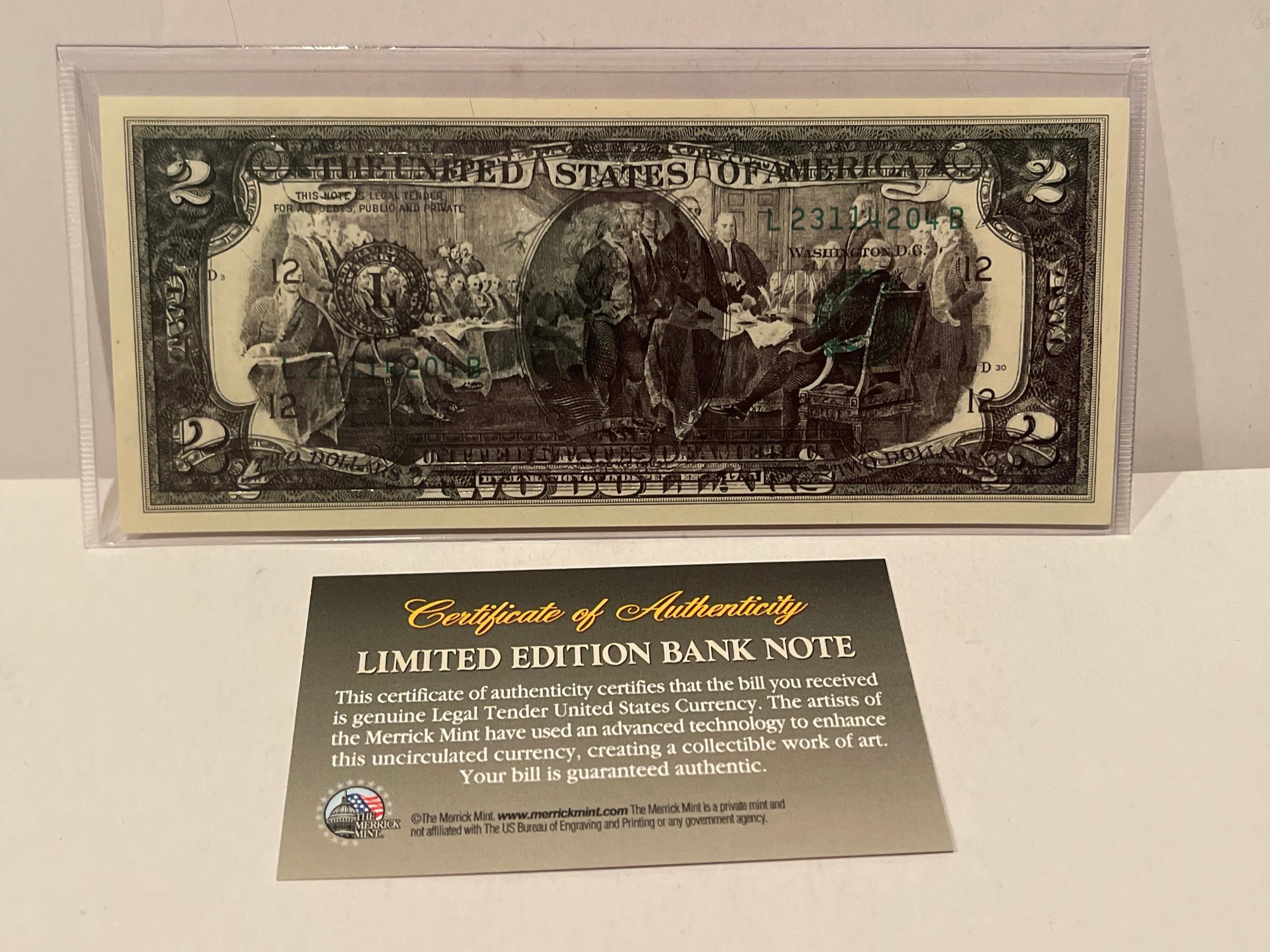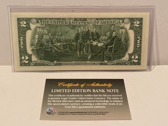 FULL BACK to FACE OFFSET COLORIZED PRINTING ERROR OVERPRINT $2 Genuine US Bill