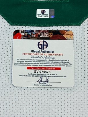 Signature has been certified, but What's In The Box does not recognize Global Authentics as a reputable authentication company. For that reason, we cannot guarantee authentic signature.