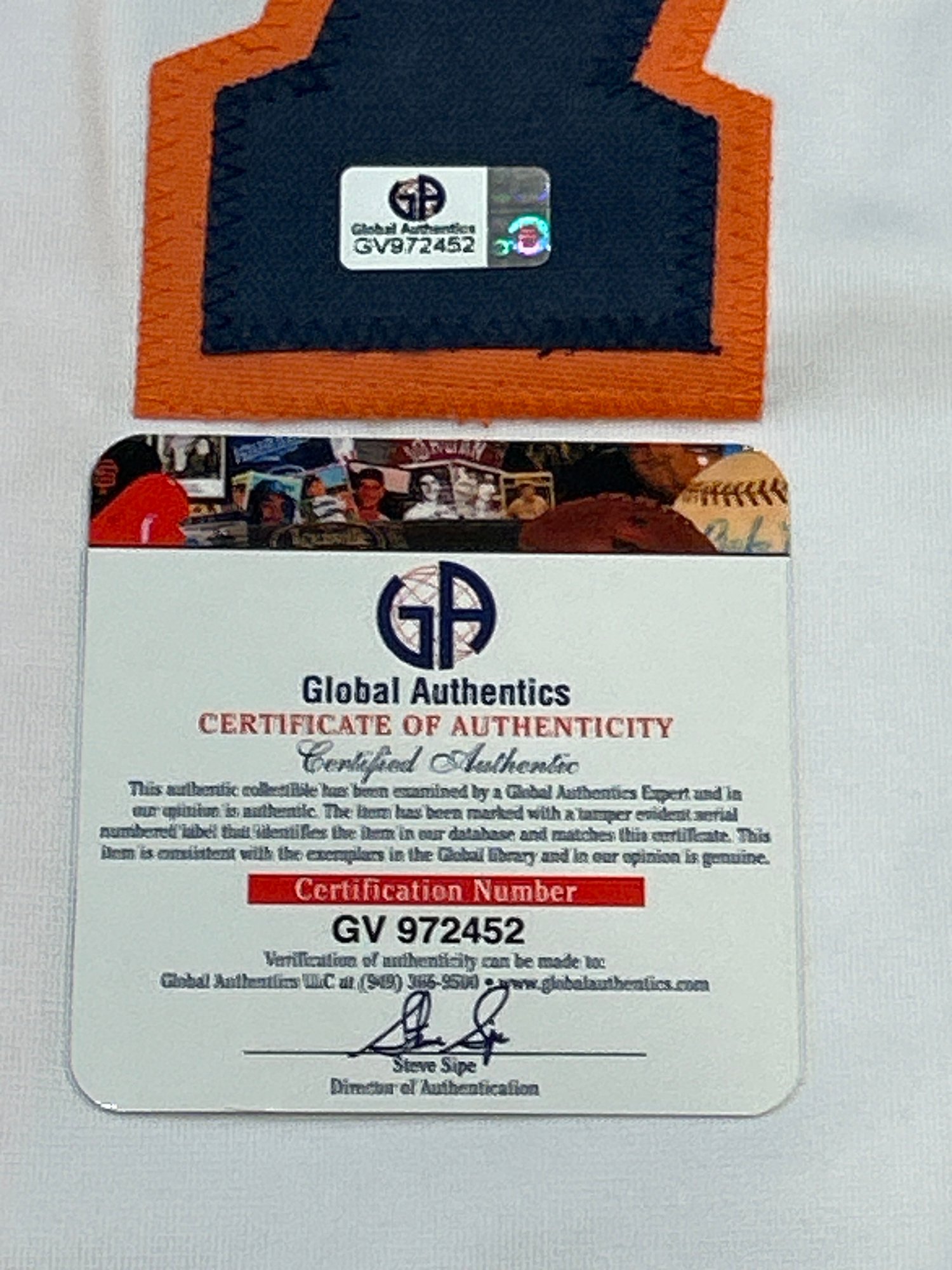 Signature has been certified, but What's In The Box does not recognize Global Authentics as a reputable authentication company. For that reason, we cannot guarantee authentic signature.