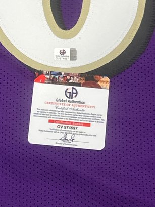 Signature has been certified, but What's In The Box does not recognize Global Authentics as a reputable authentication company. For that reason, we cannot guarantee authentic signature.