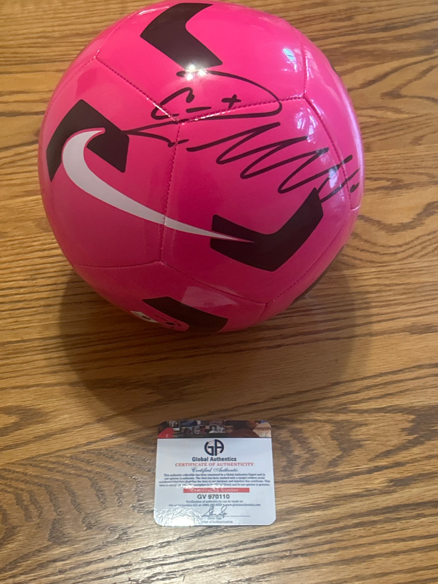 Great investment! Legendary soccer superstar Ronaldo autographed ball with COA!
