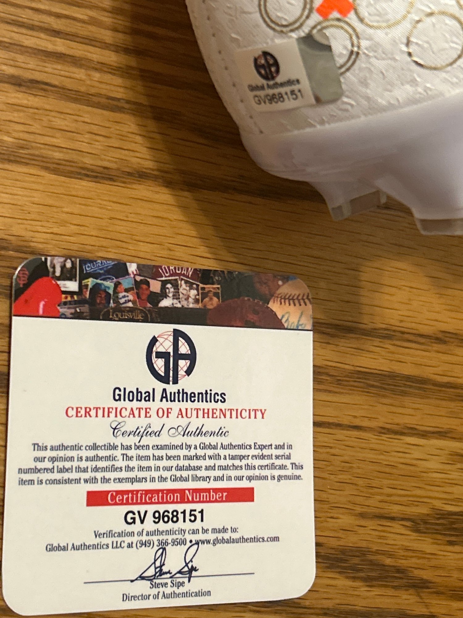 Signature has been certified, but What's In The Box does not recognize Global Authentics as a reputable authentication company. For that reason, we cannot guarantee authentic signature.