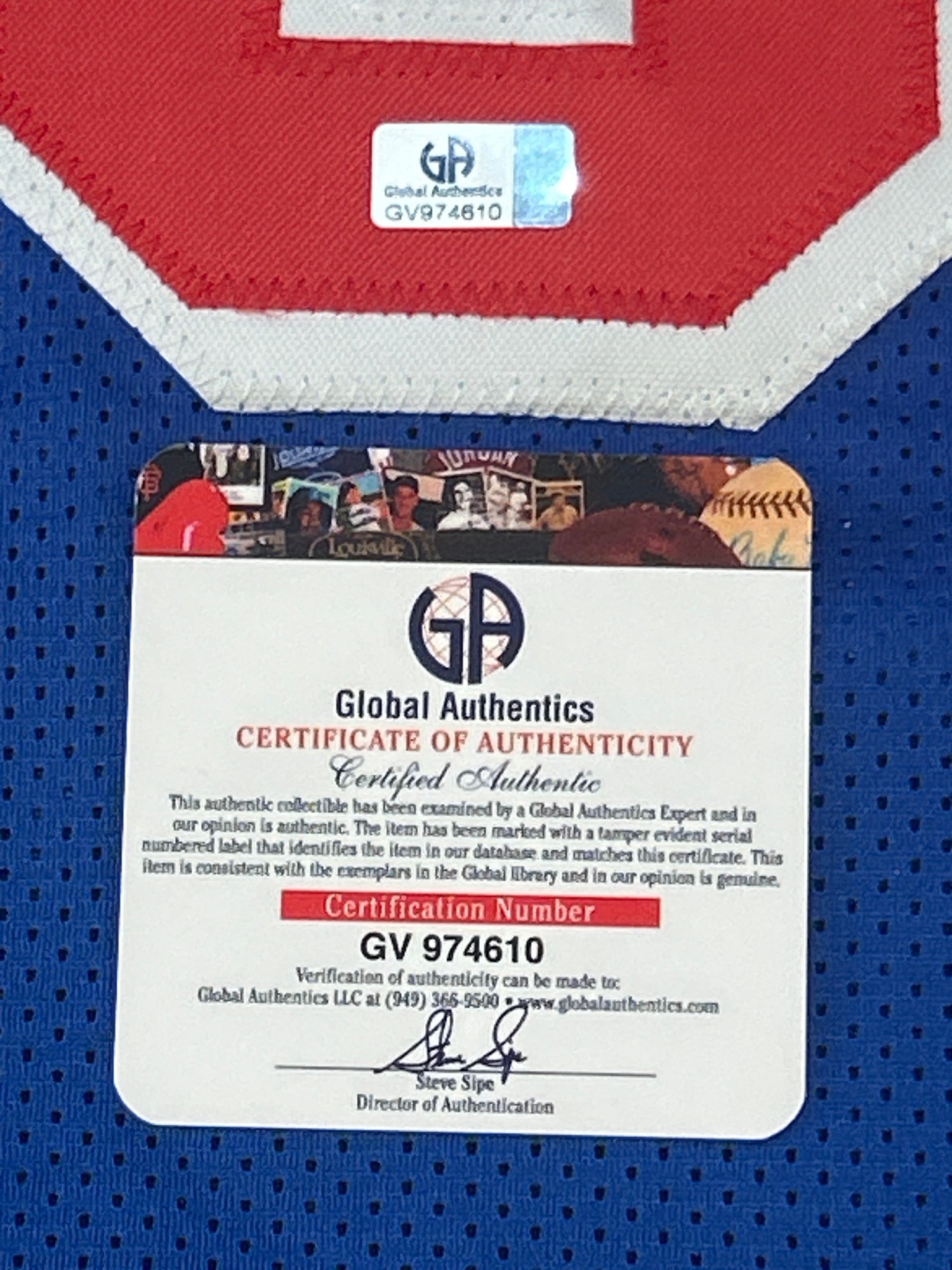 Signature has been certified, but What's In The Box does not recognize Global Authentics as a reputable authentication company. For that reason, we cannot guarantee authentic signature.