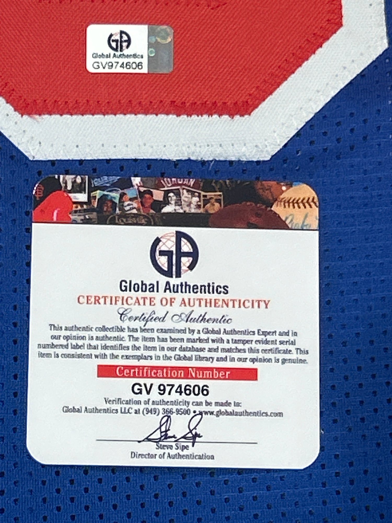 Signature has been certified, but What's In The Box does not recognize Global Authentics as a reputable authentication company. For that reason, we cannot guarantee authentic signature.