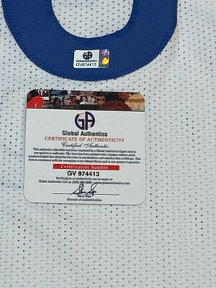 Signature has been certified, but What's In The Box does not recognize Global Authentics as a reputable authentication company. For that reason, we cannot guarantee authentic signature.