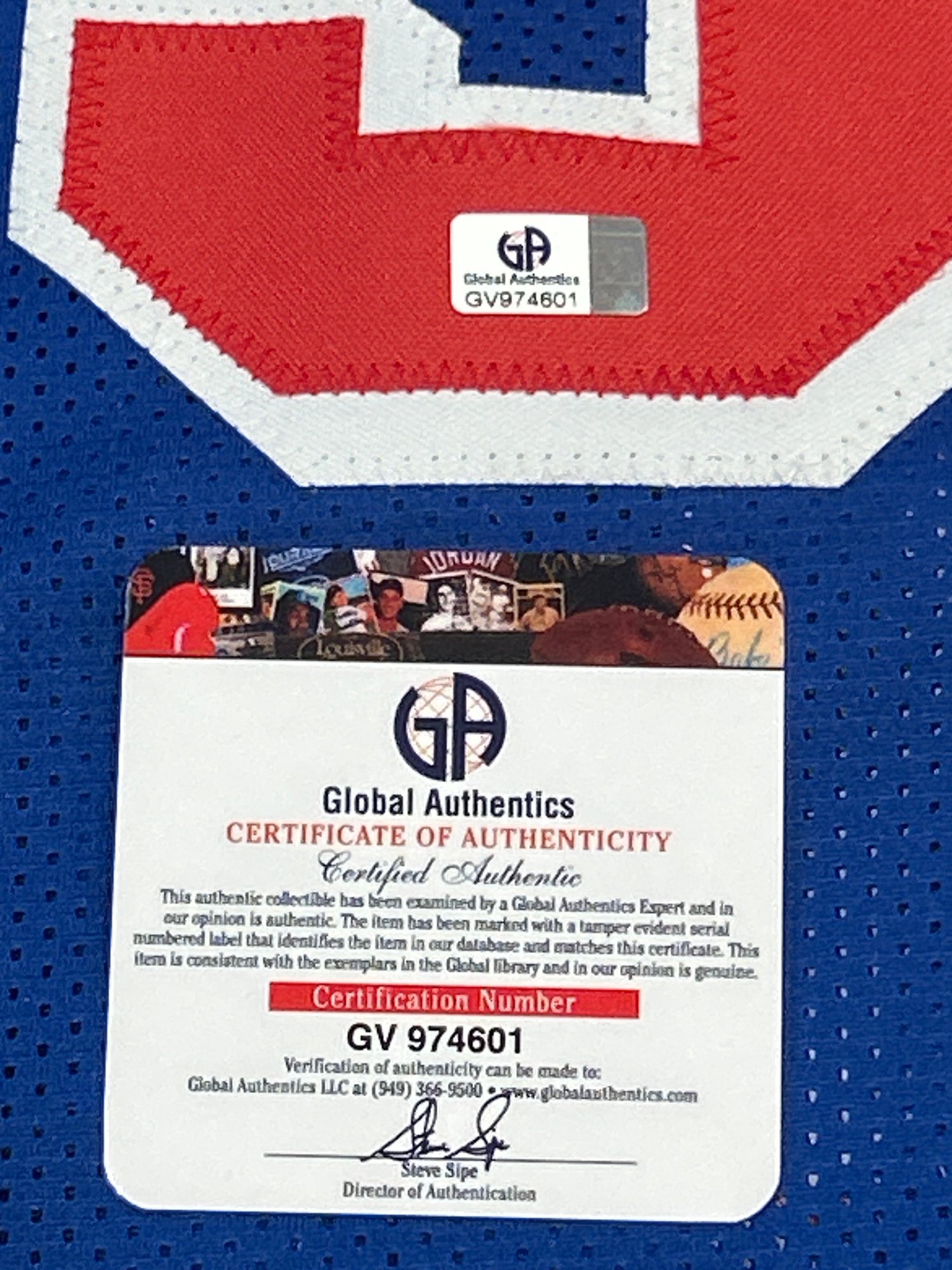 Signature has been certified, but What's In The Box does not recognize Global Authentics as a reputable authentication company. For that reason, we cannot guarantee authentic signature.