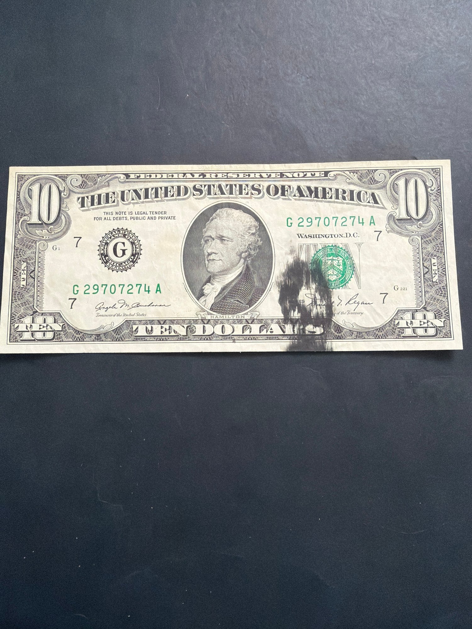 Ten Dollar Bill With Ink Error