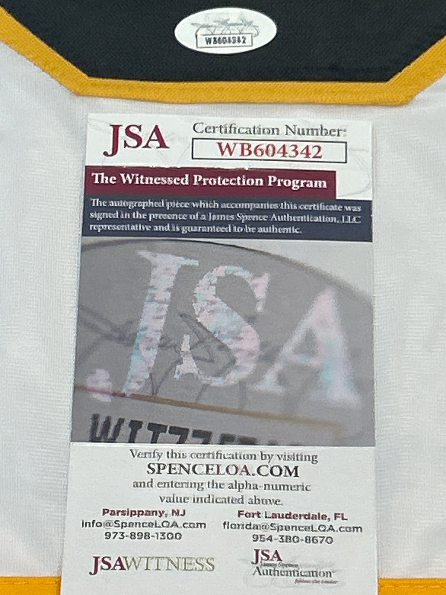 Autographed Bruins Jersey with JSA COA! HOF!!