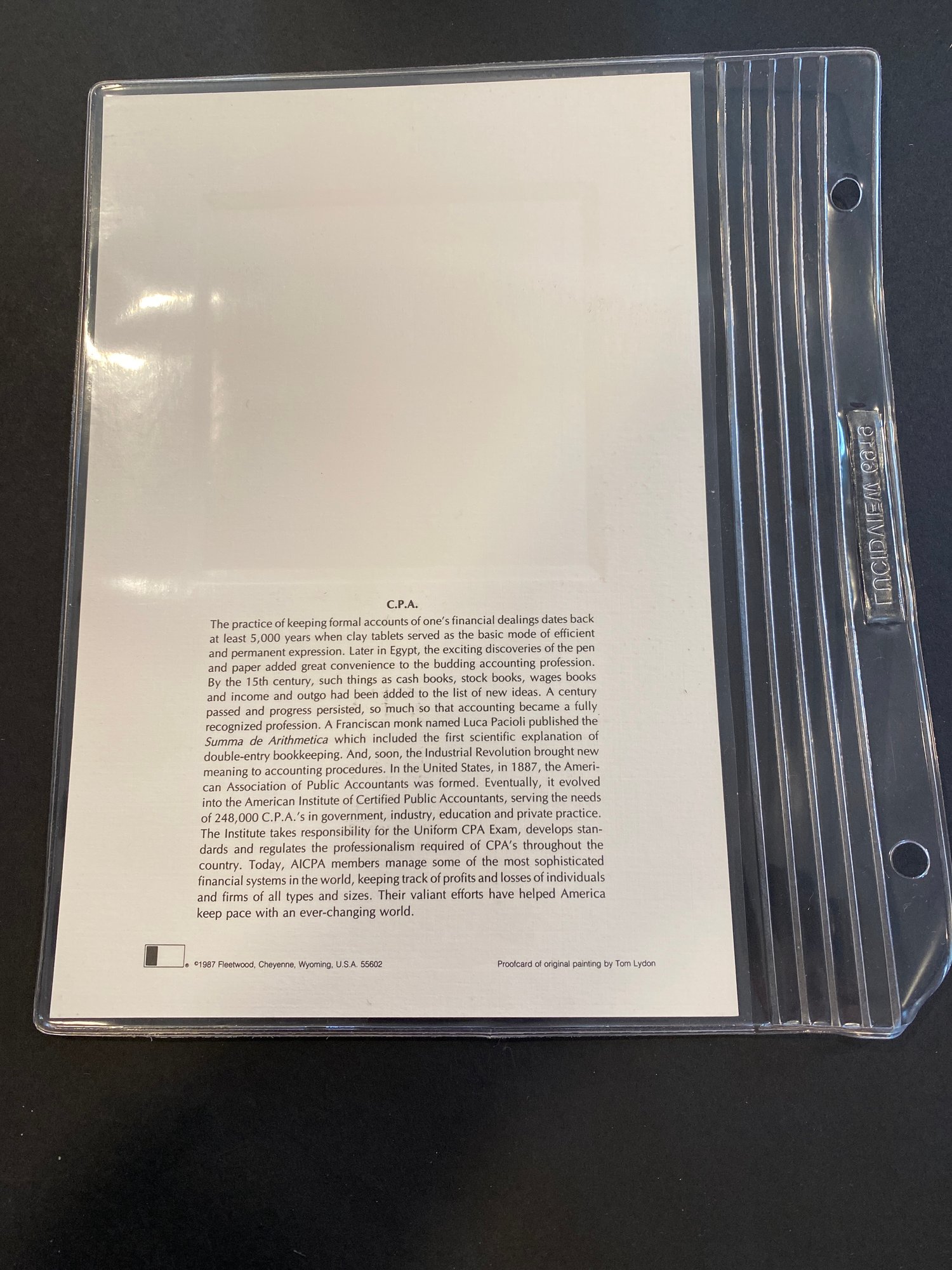 UNITED STATES USA - 1987 C.P.A. - PROOFCARD - FDI
