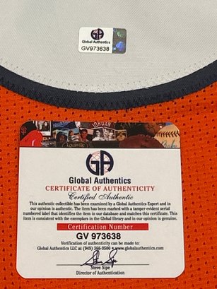Signature has been certified, but What's In The Box does not recognize Global Authentics as a reputable authentication company. For that reason, we cannot guarantee authentic signature