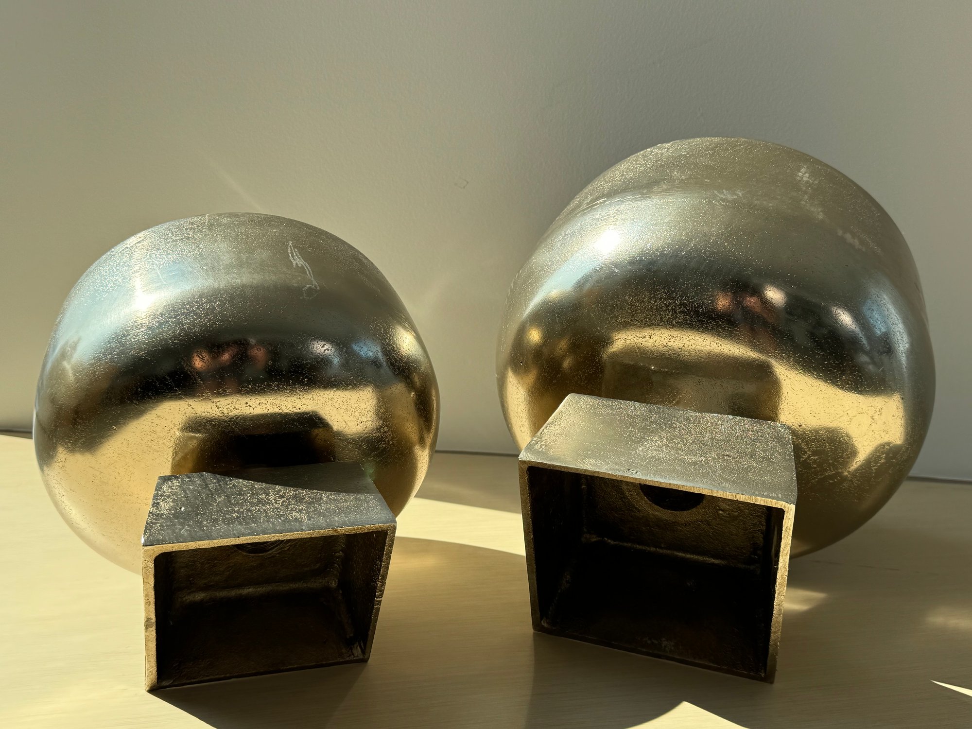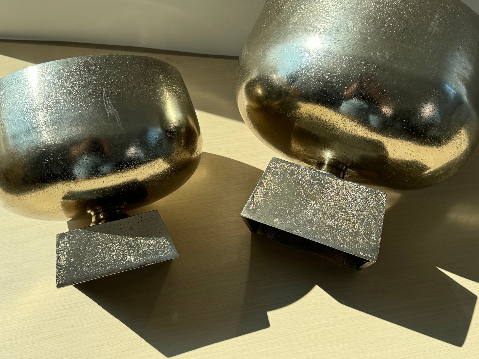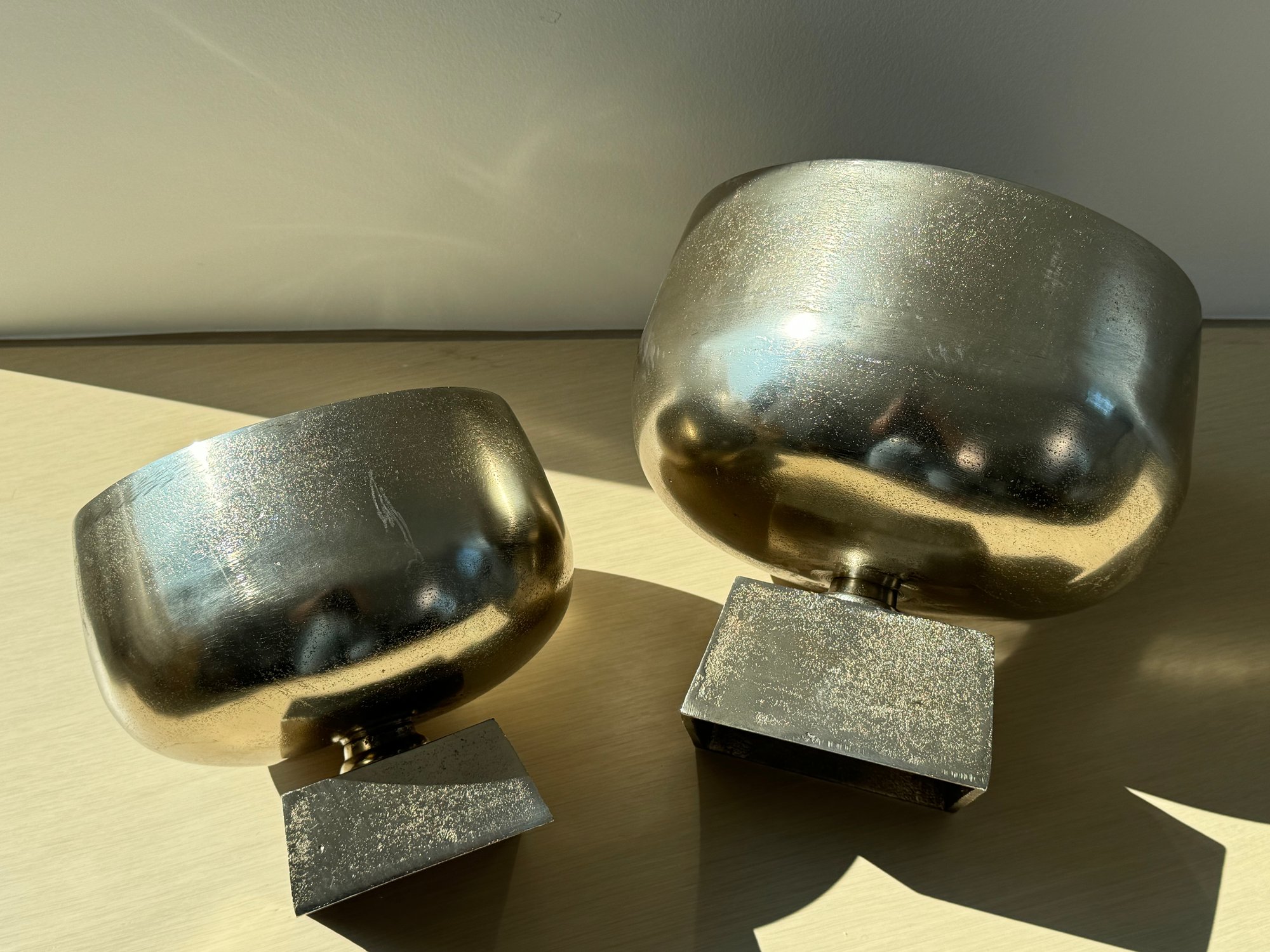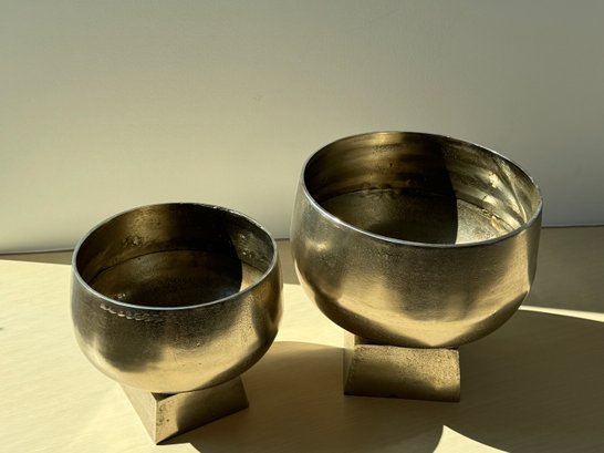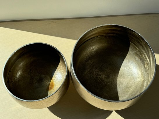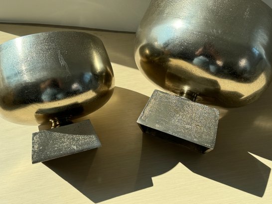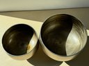 These two pieces measure 9” diameter by 9” high and 11” diameter by 11” high respectively.