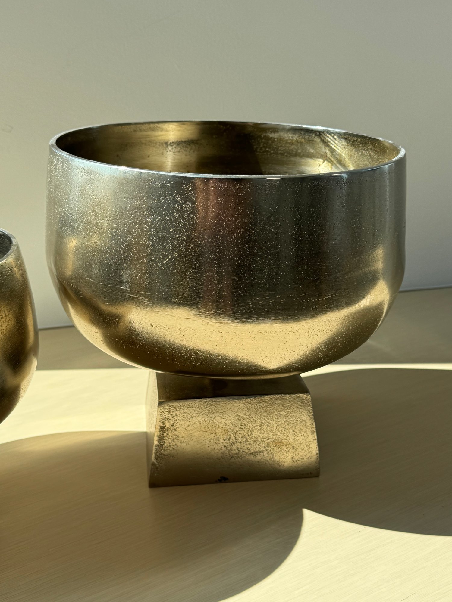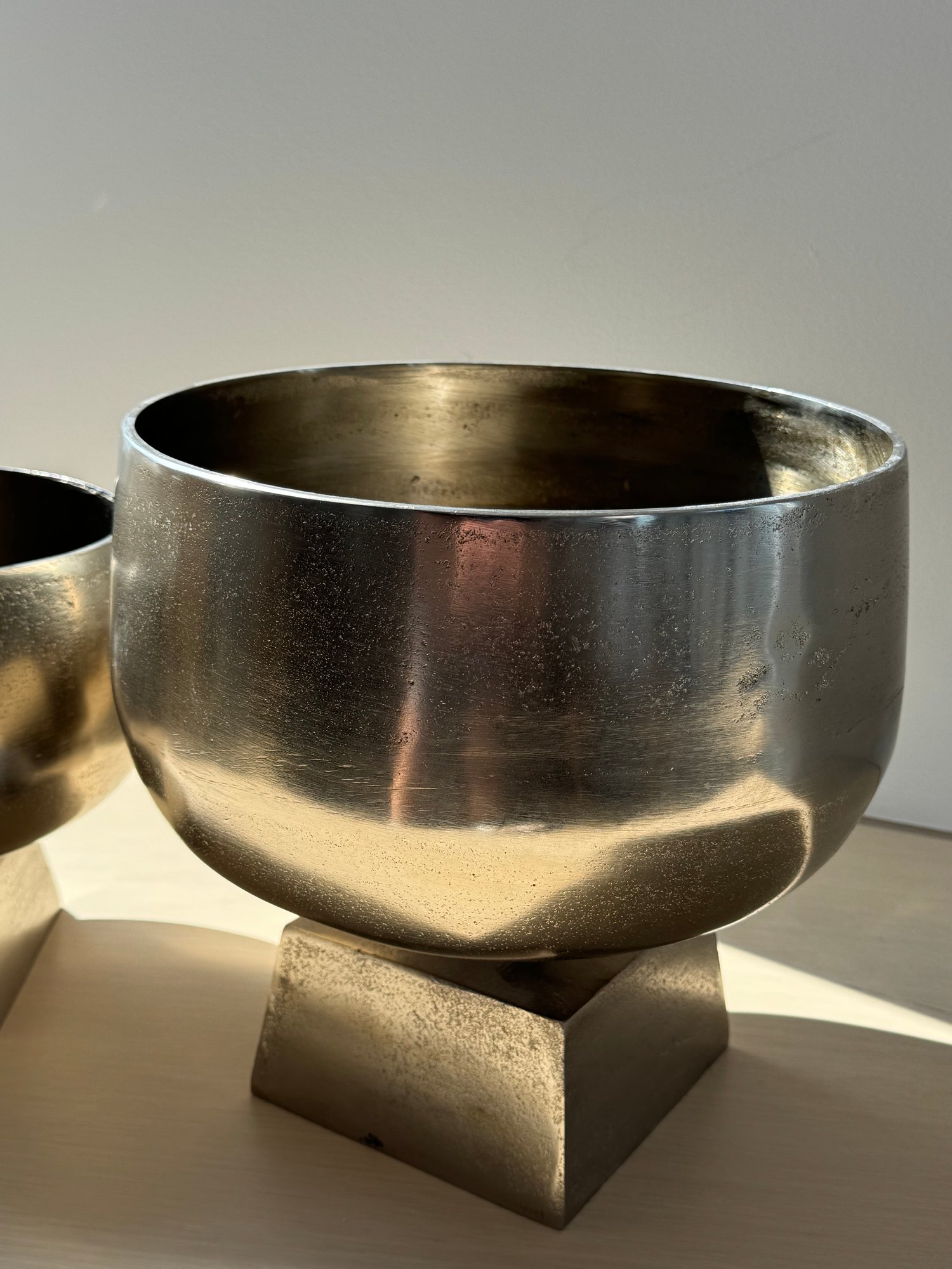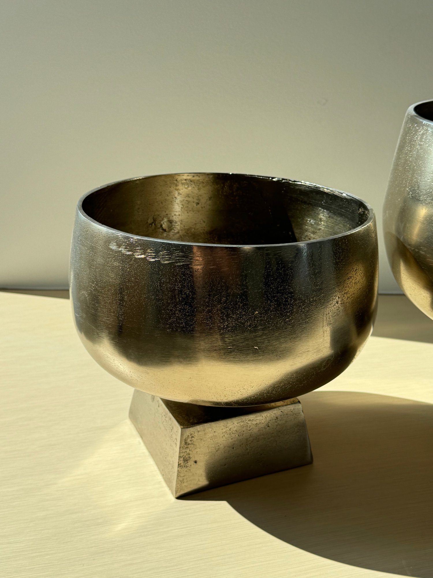 These two pieces measure 9” diameter by 9” high and 11” diameter by 11” high respectively.