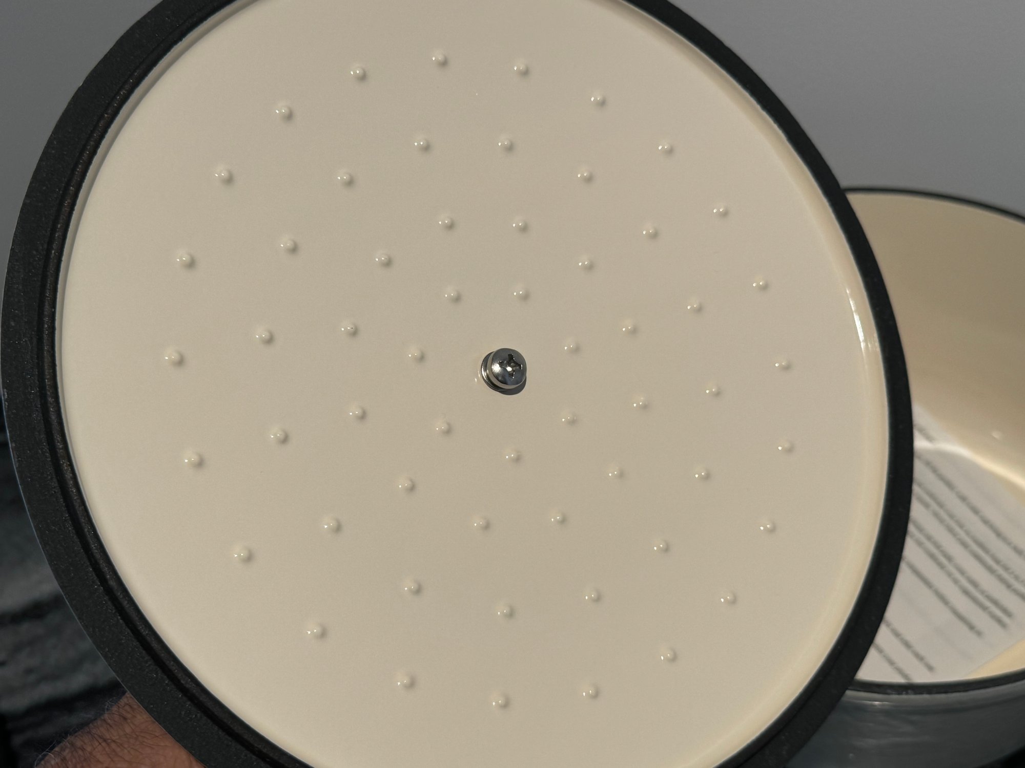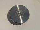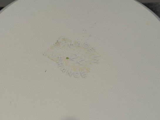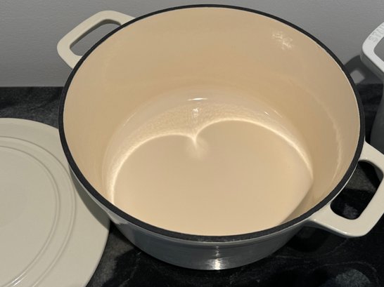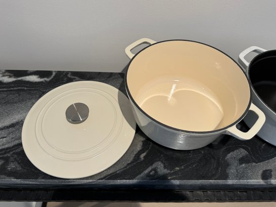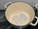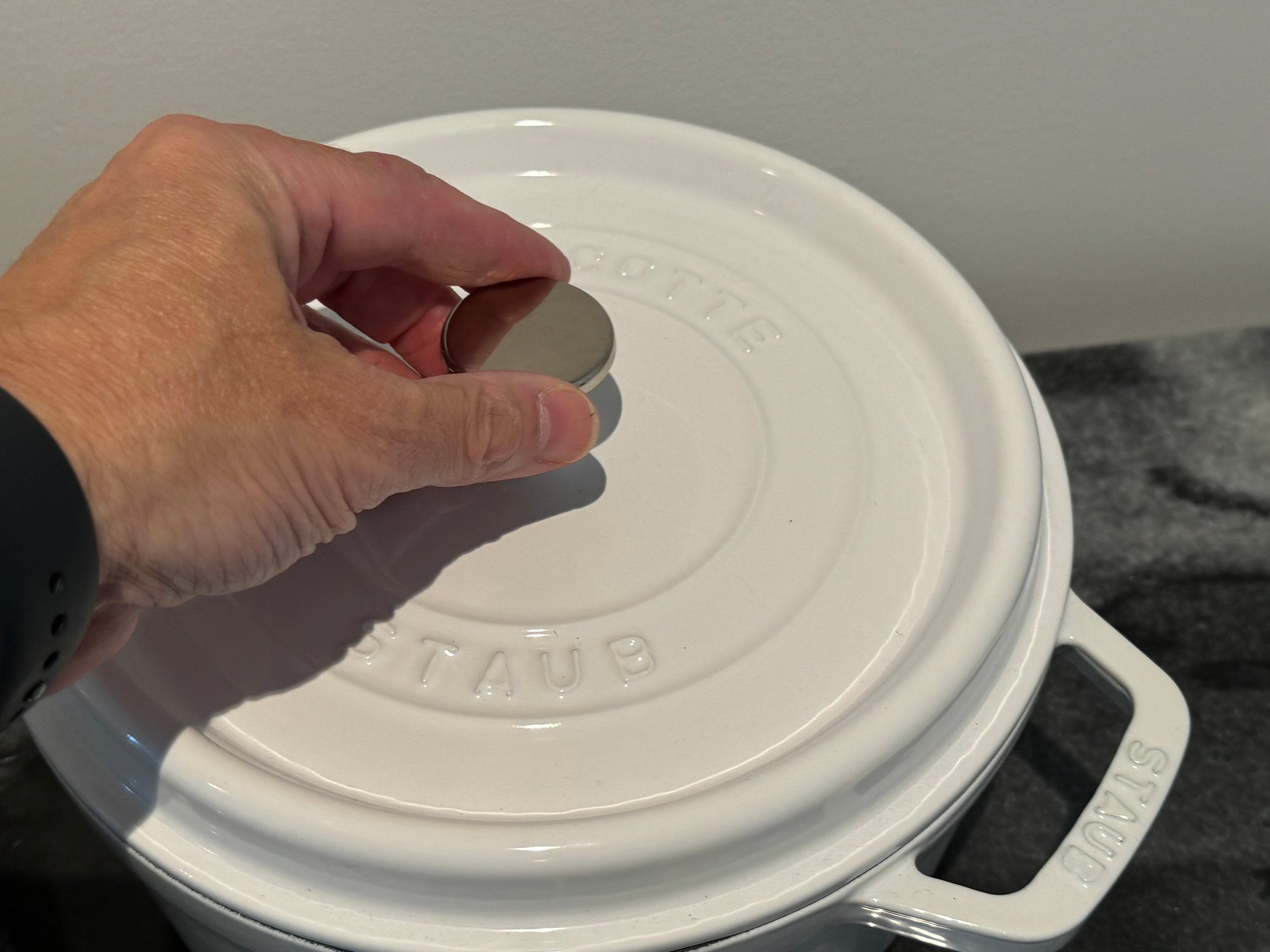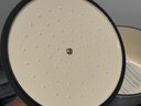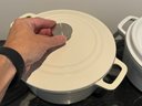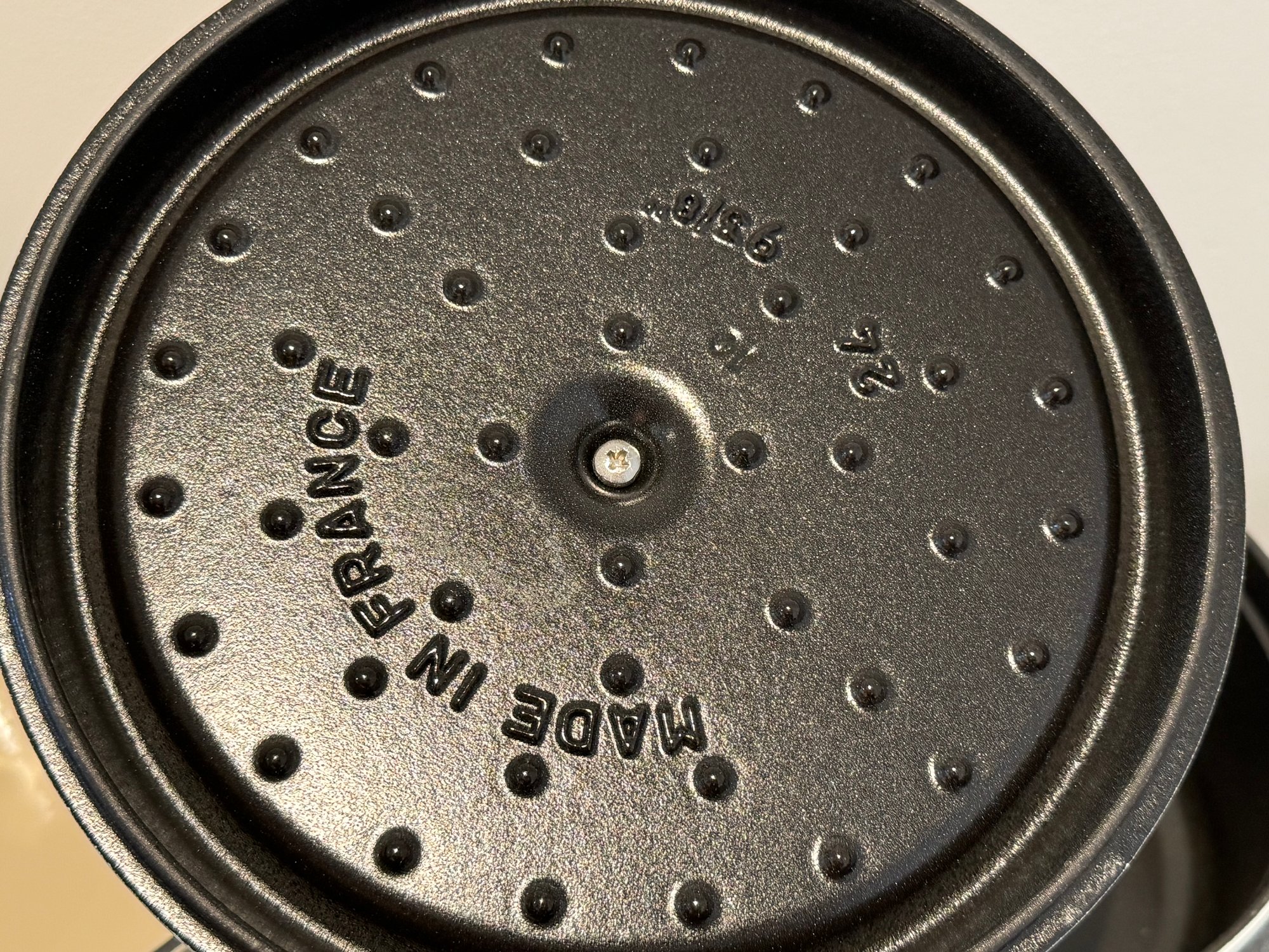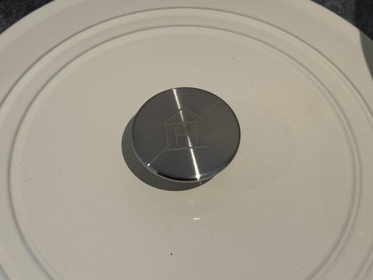 The Staub piece measures 9.5”D x 4.25”H.