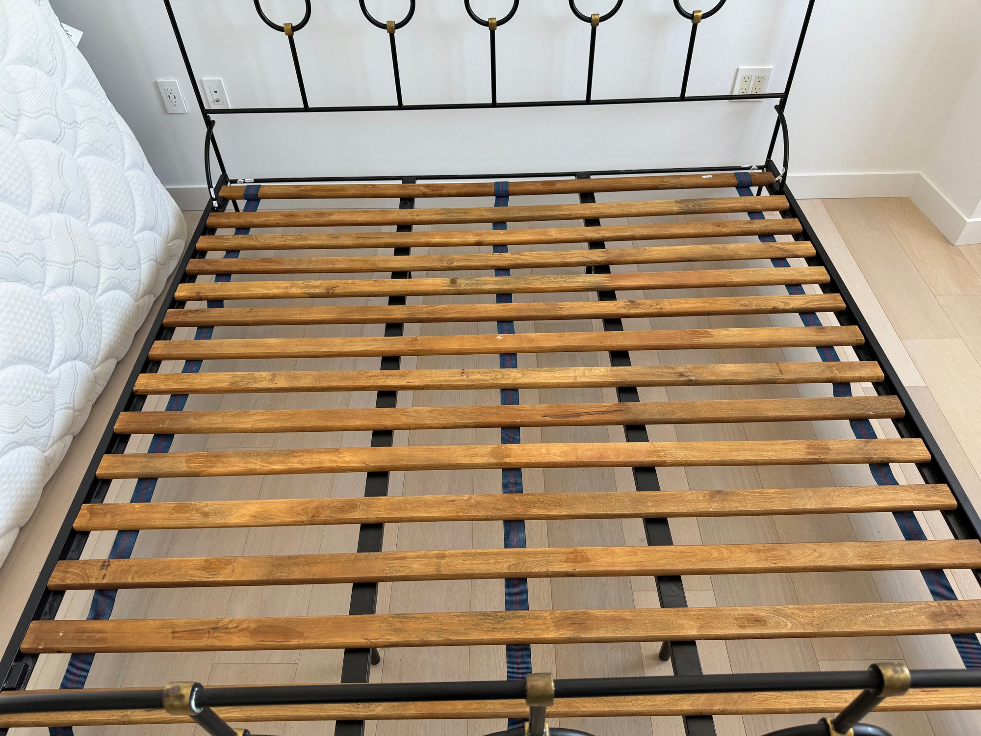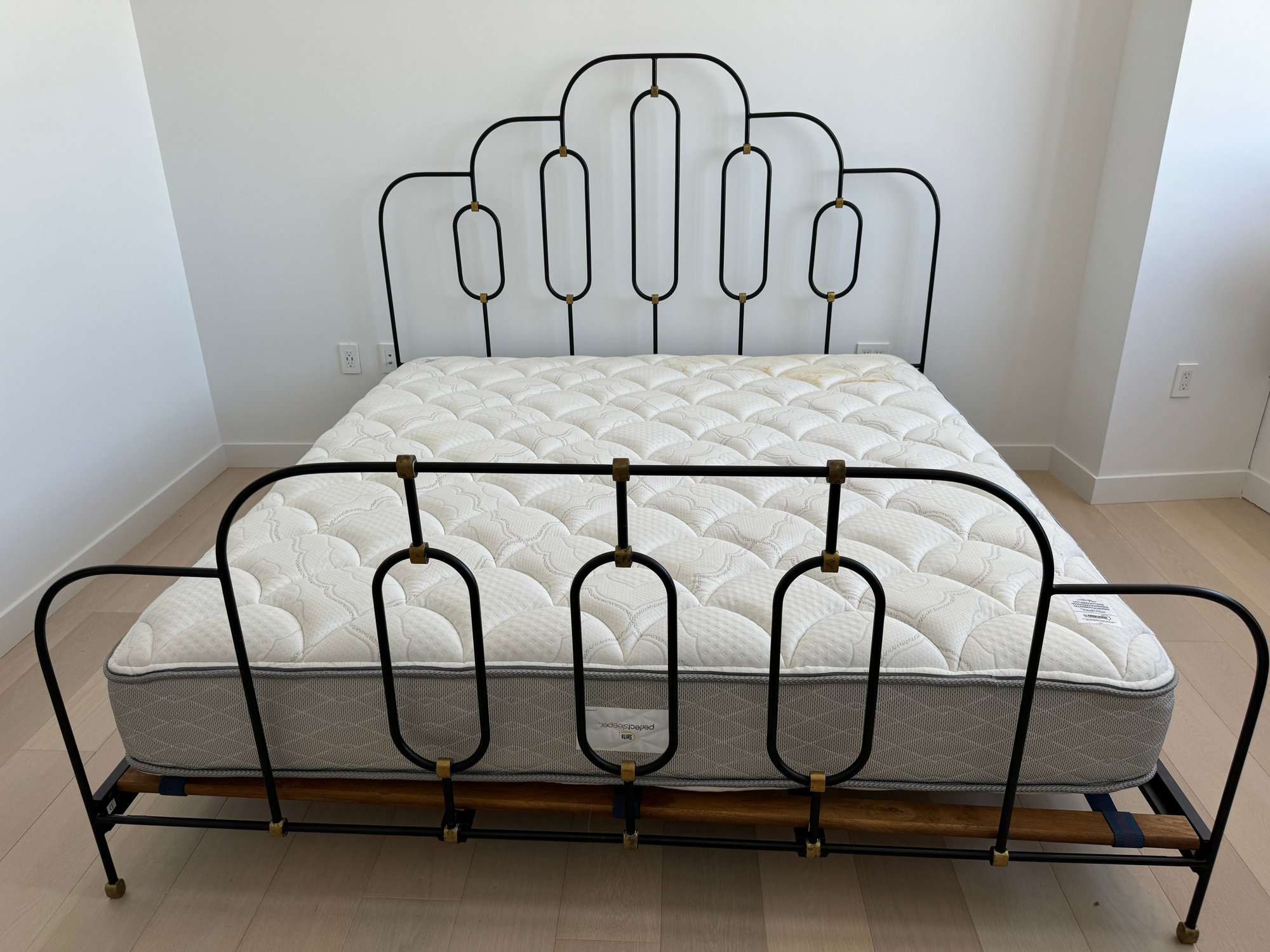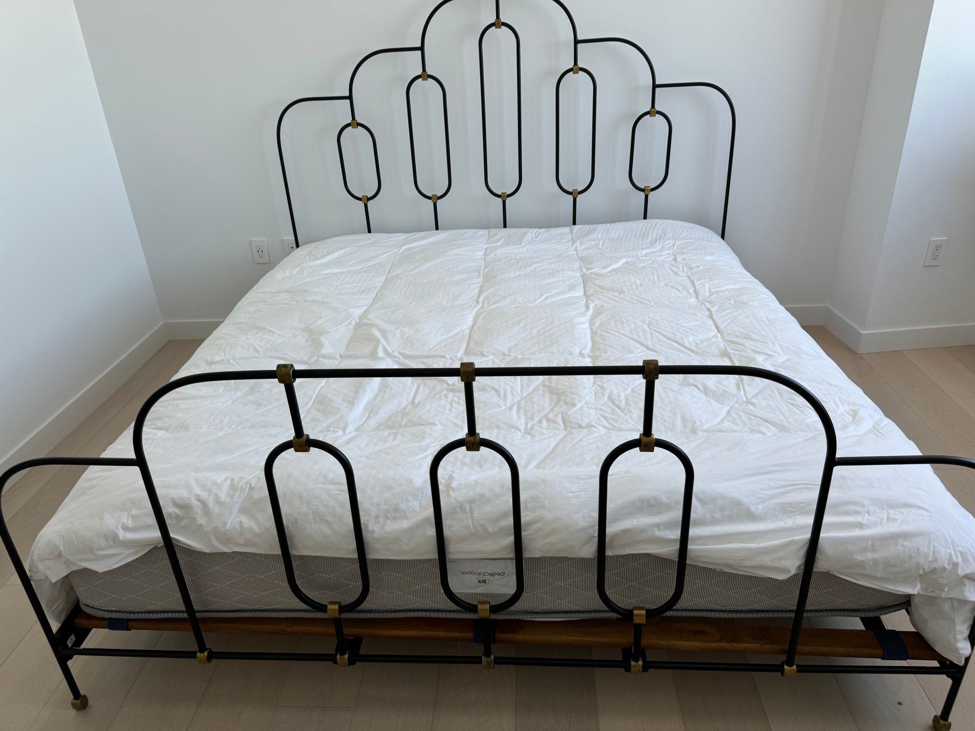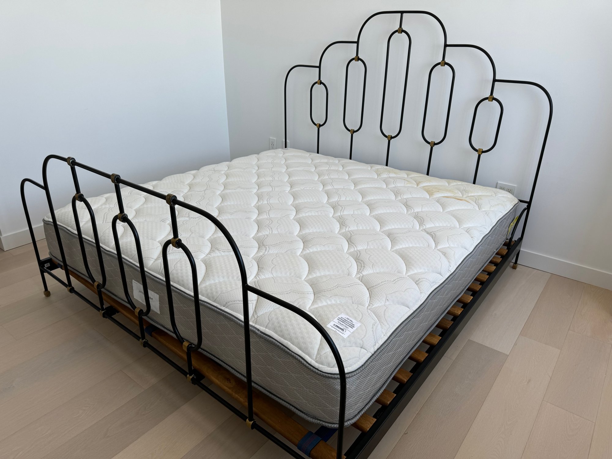 This beautiful bed measures 84”L by 78”W by 60”H at the headboard. The footboard stands 36”H. There are some light signs of age which we have done our best to photo-document. The bedding is included with this bed.