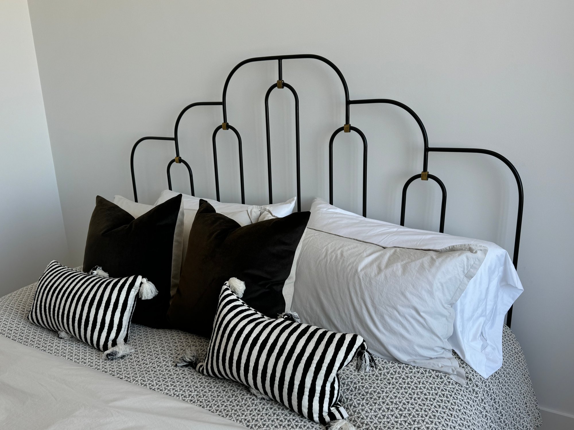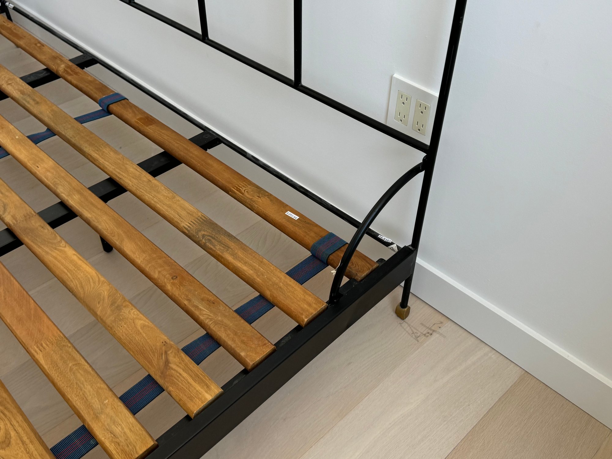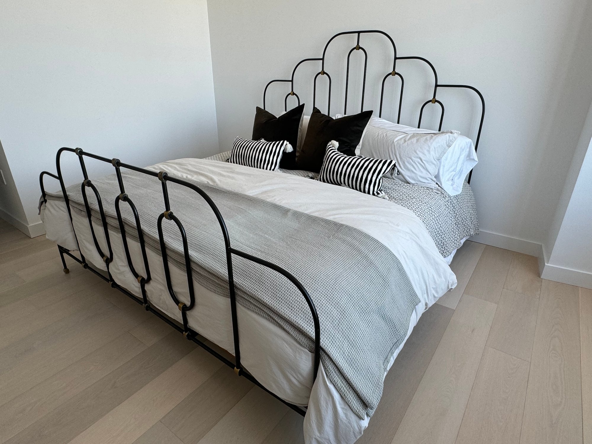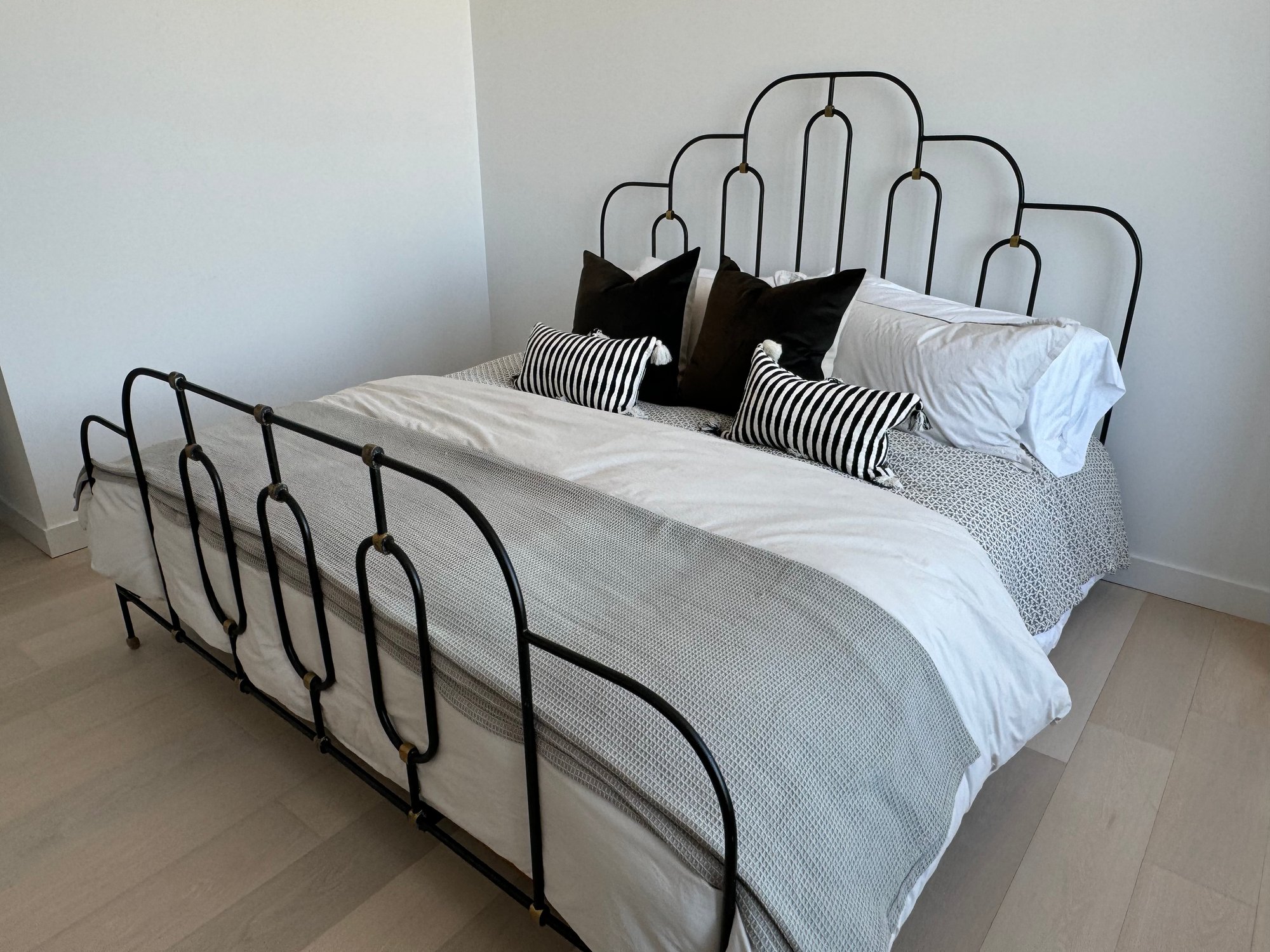 This beautiful bed measures 84”L by 78”W by 60”H at the headboard. The footboard stands 36”H. There are some light signs of age which we have done our best to photo-document. The bedding is included with this bed.
