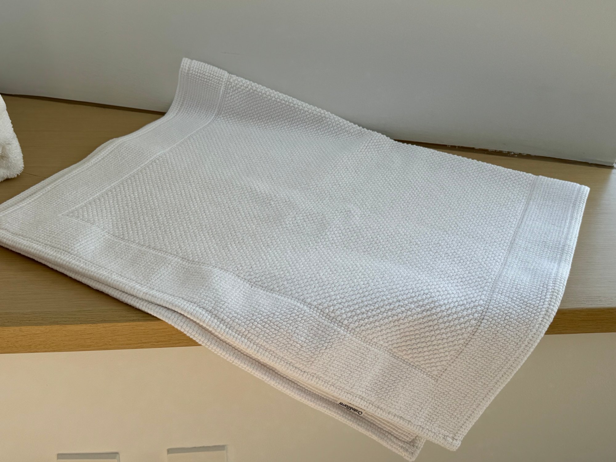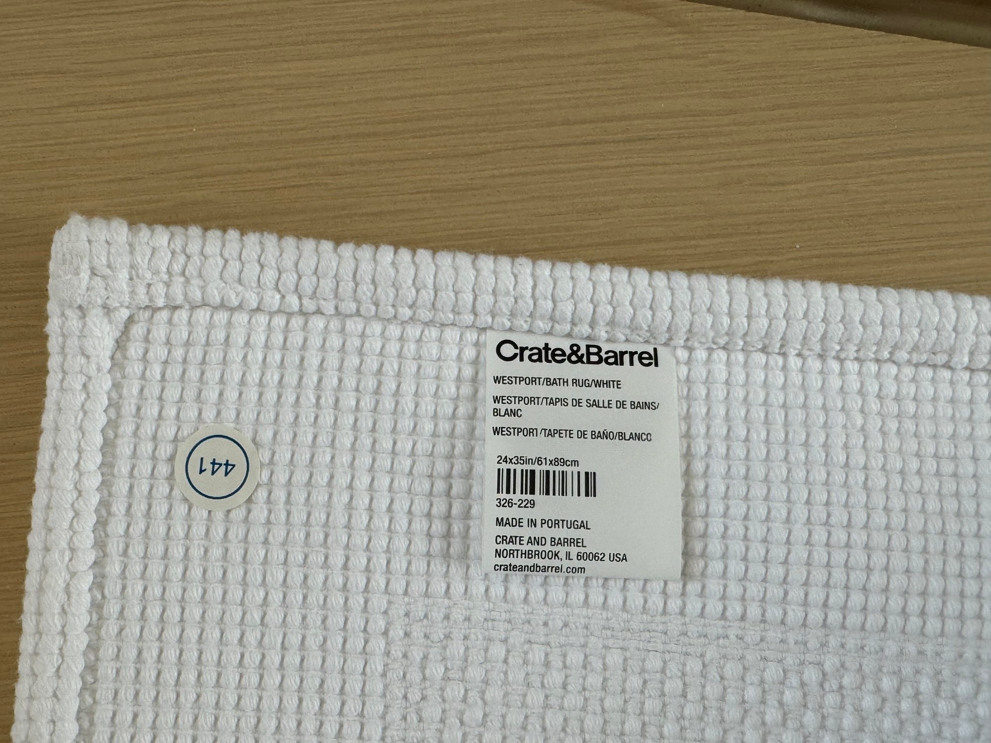 The Crate & Barrel Westport bathmat is 24” x 25”.