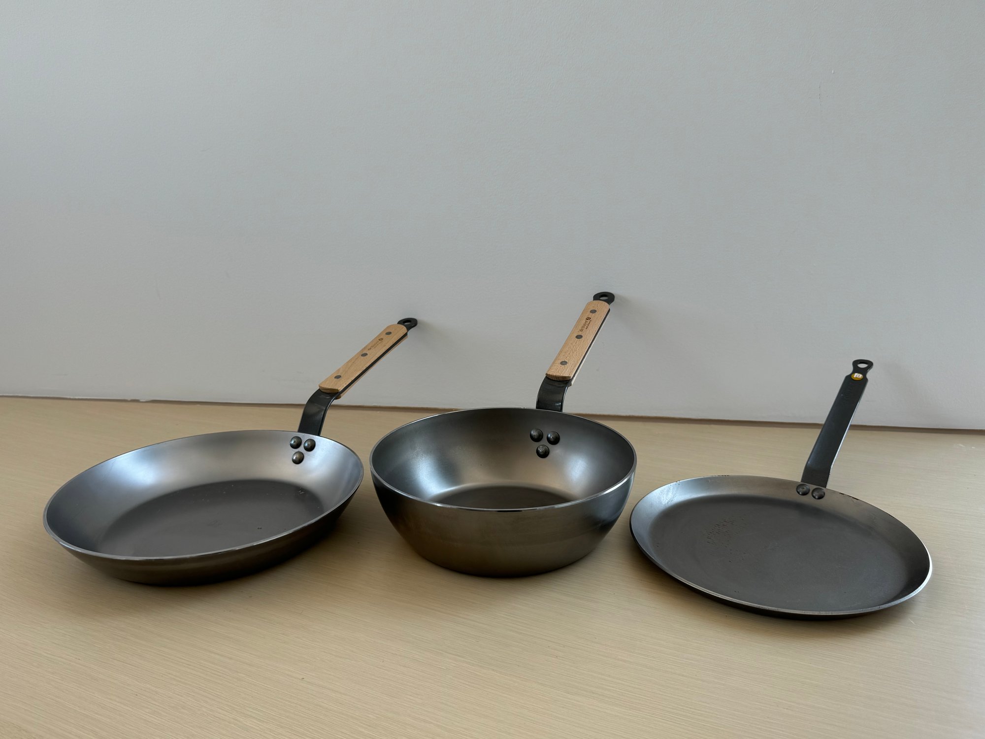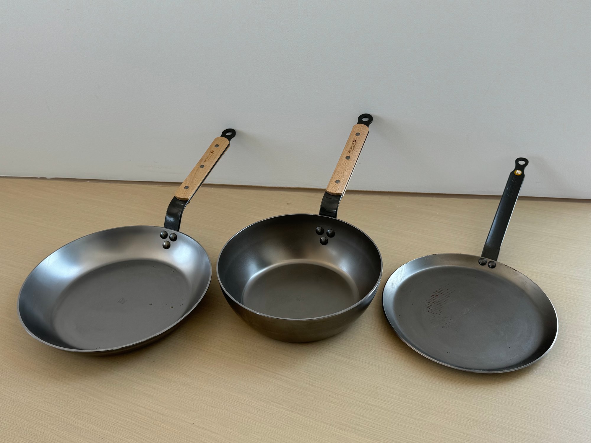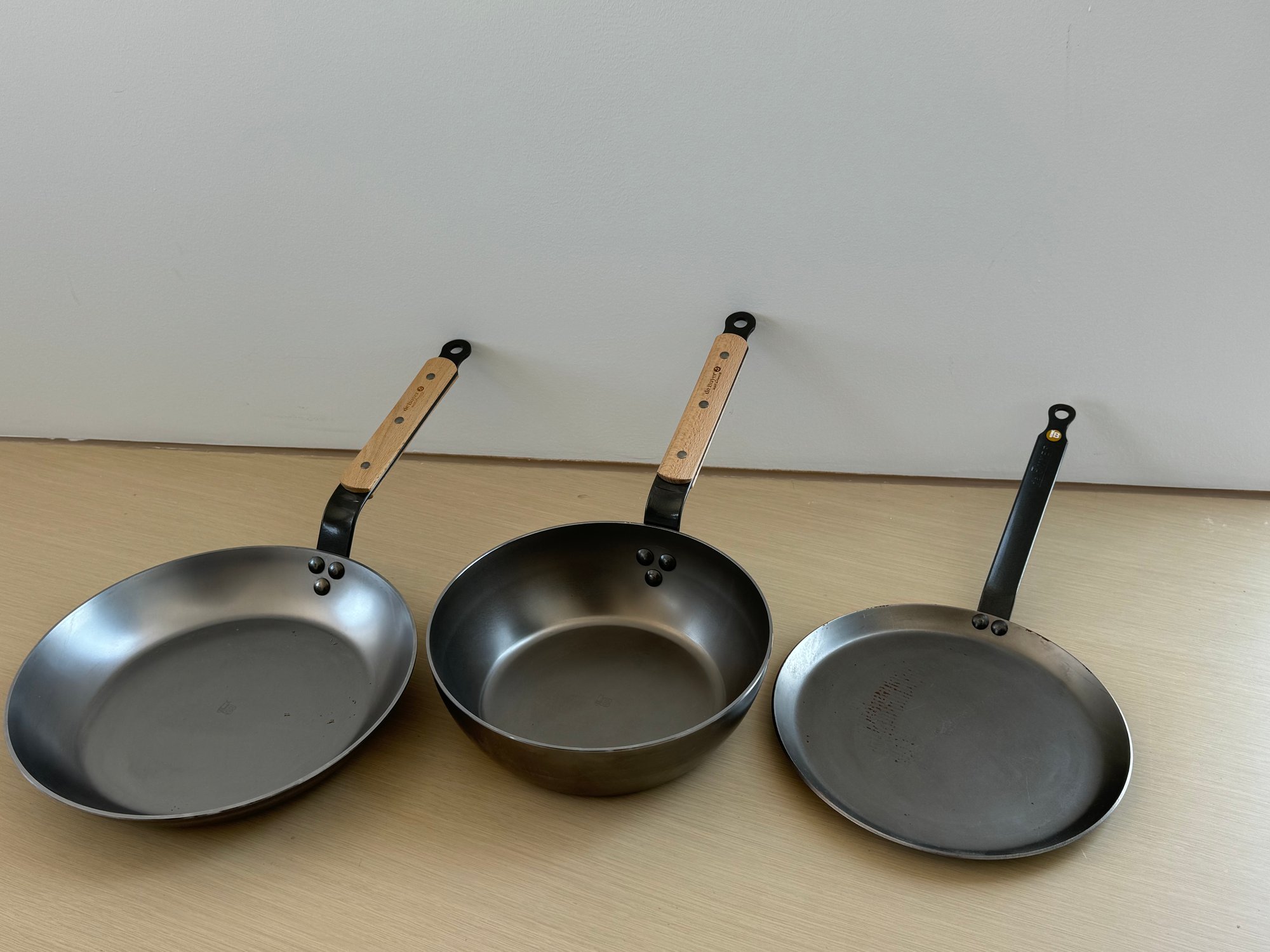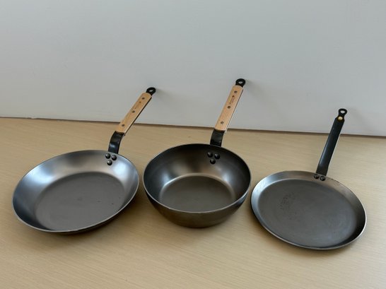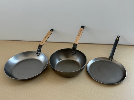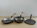 This assortment includes a flat plan which measures 9.5” diameter, 9.5” diameter by 3” tall, and 11” diameter by 2” tall respectively. The bottoms of these pieces do show some signs of wear which is photo-documented.