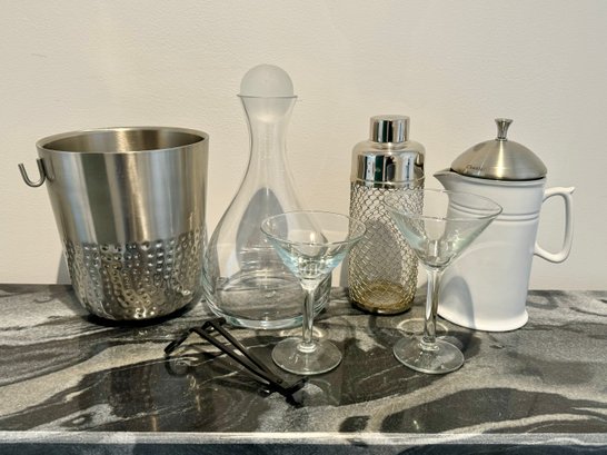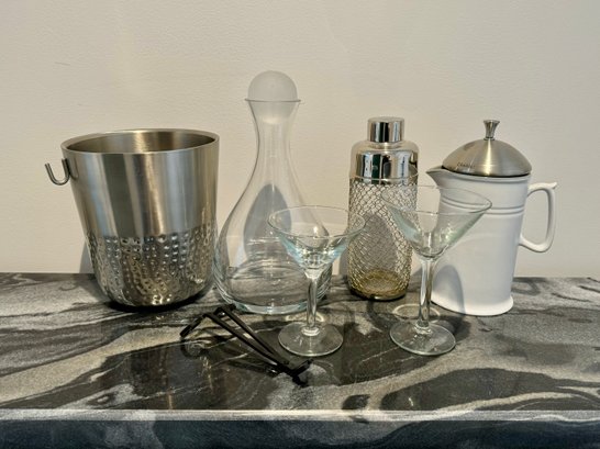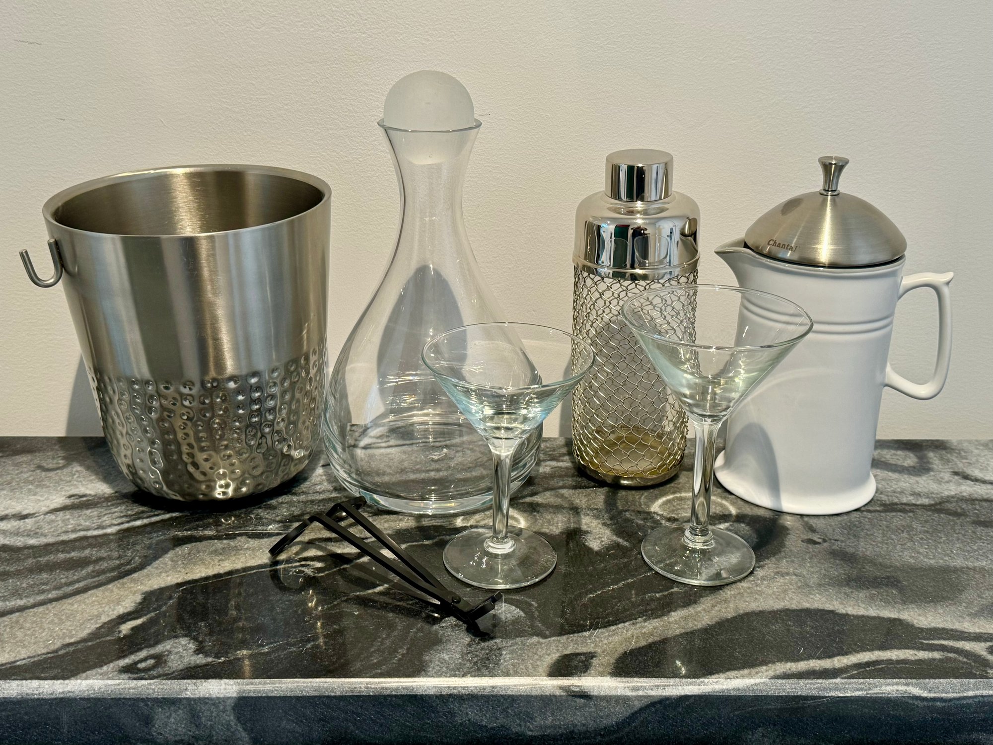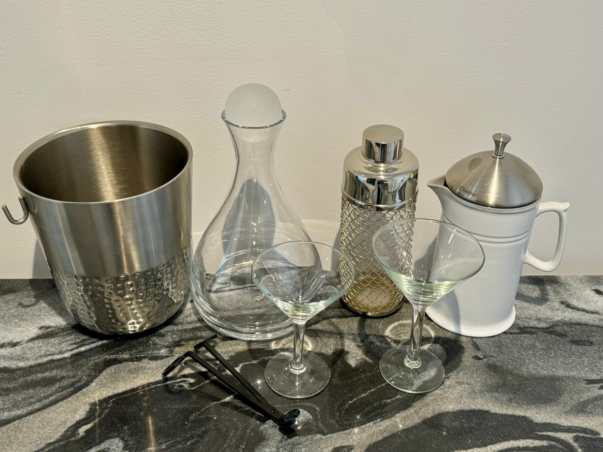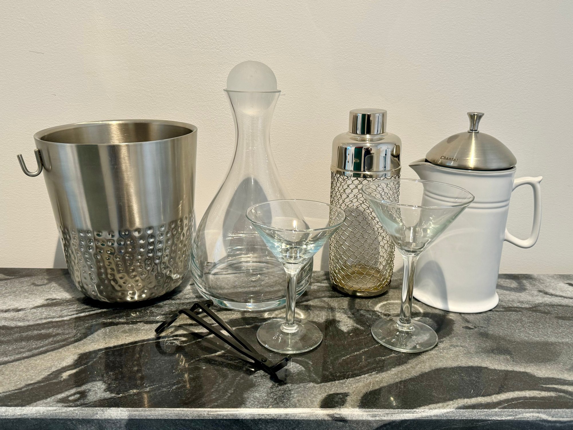 - Pair of martini glasses that are 6” & 7” tall respectively.