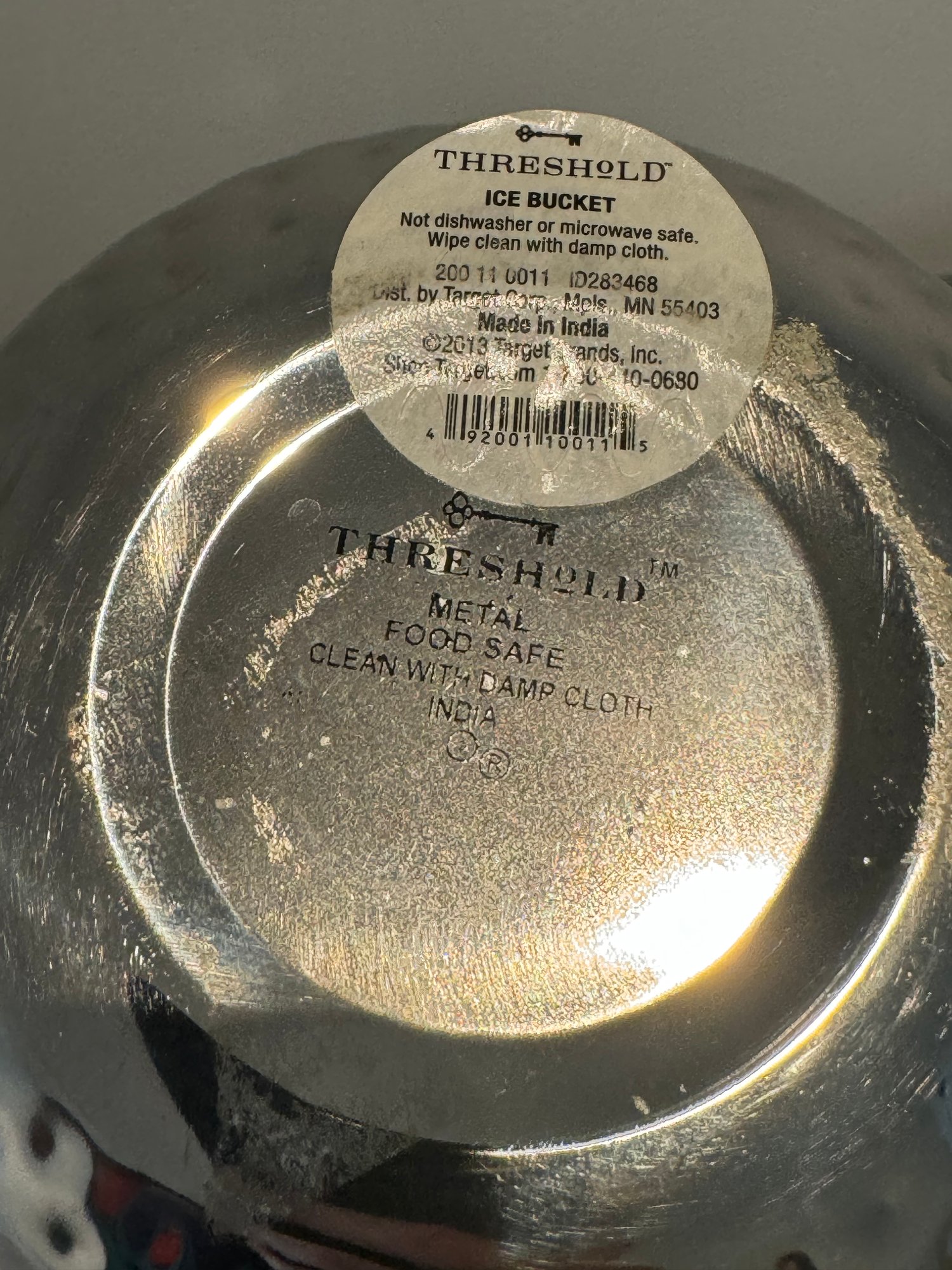 - Threshold ice bucket that is 8” tall with a 7” diameter