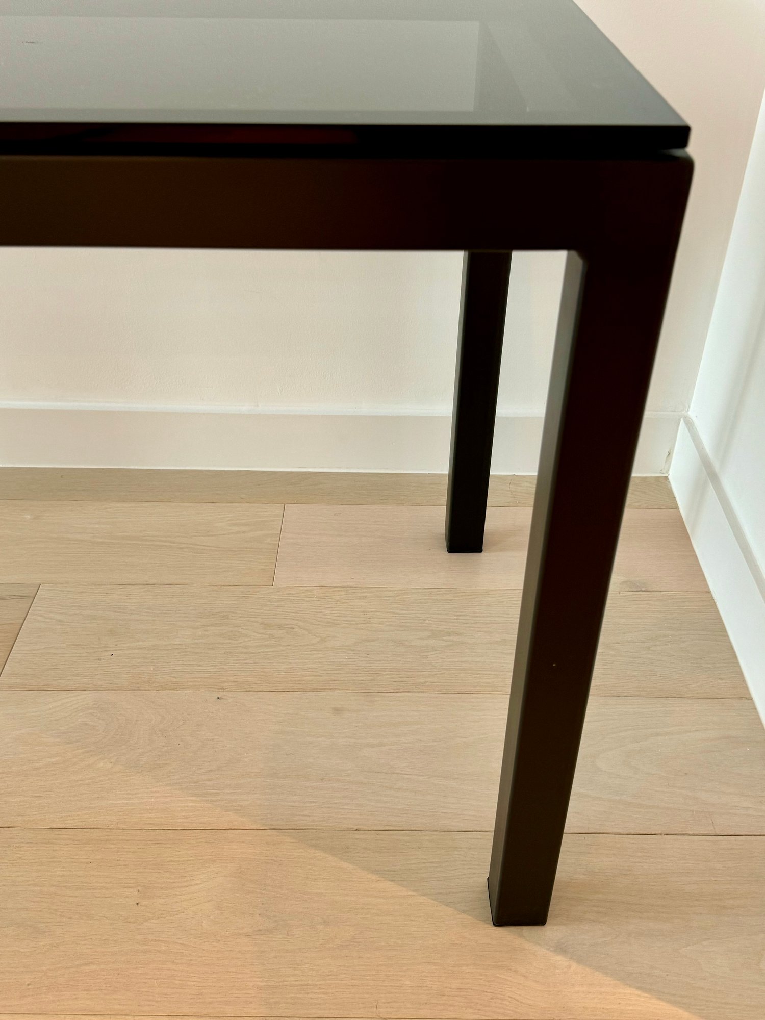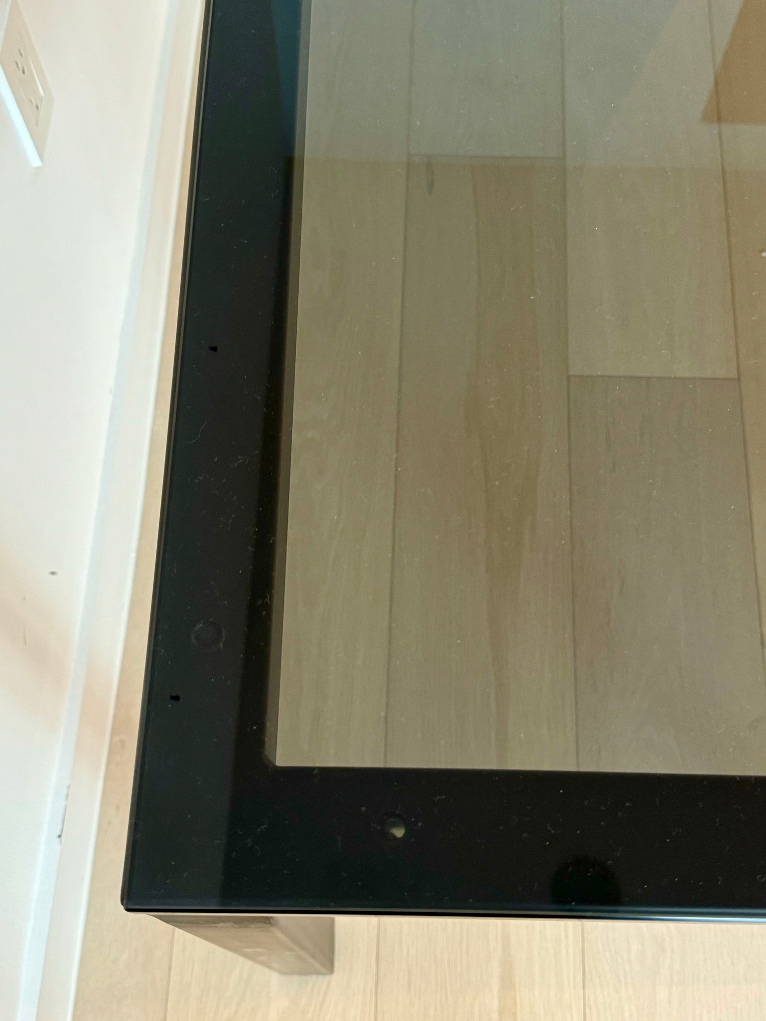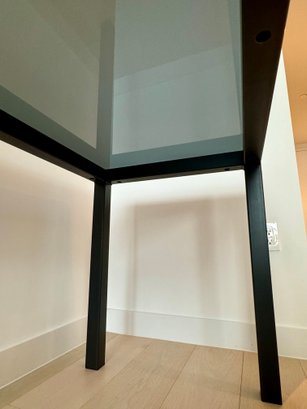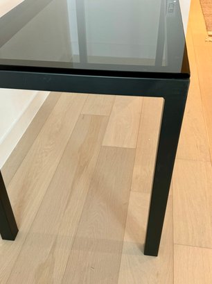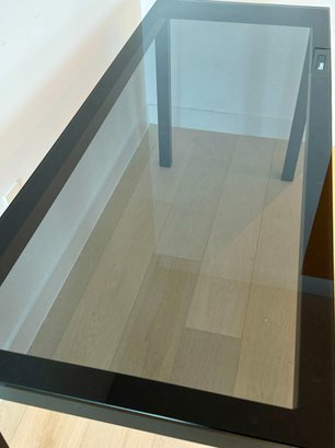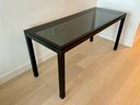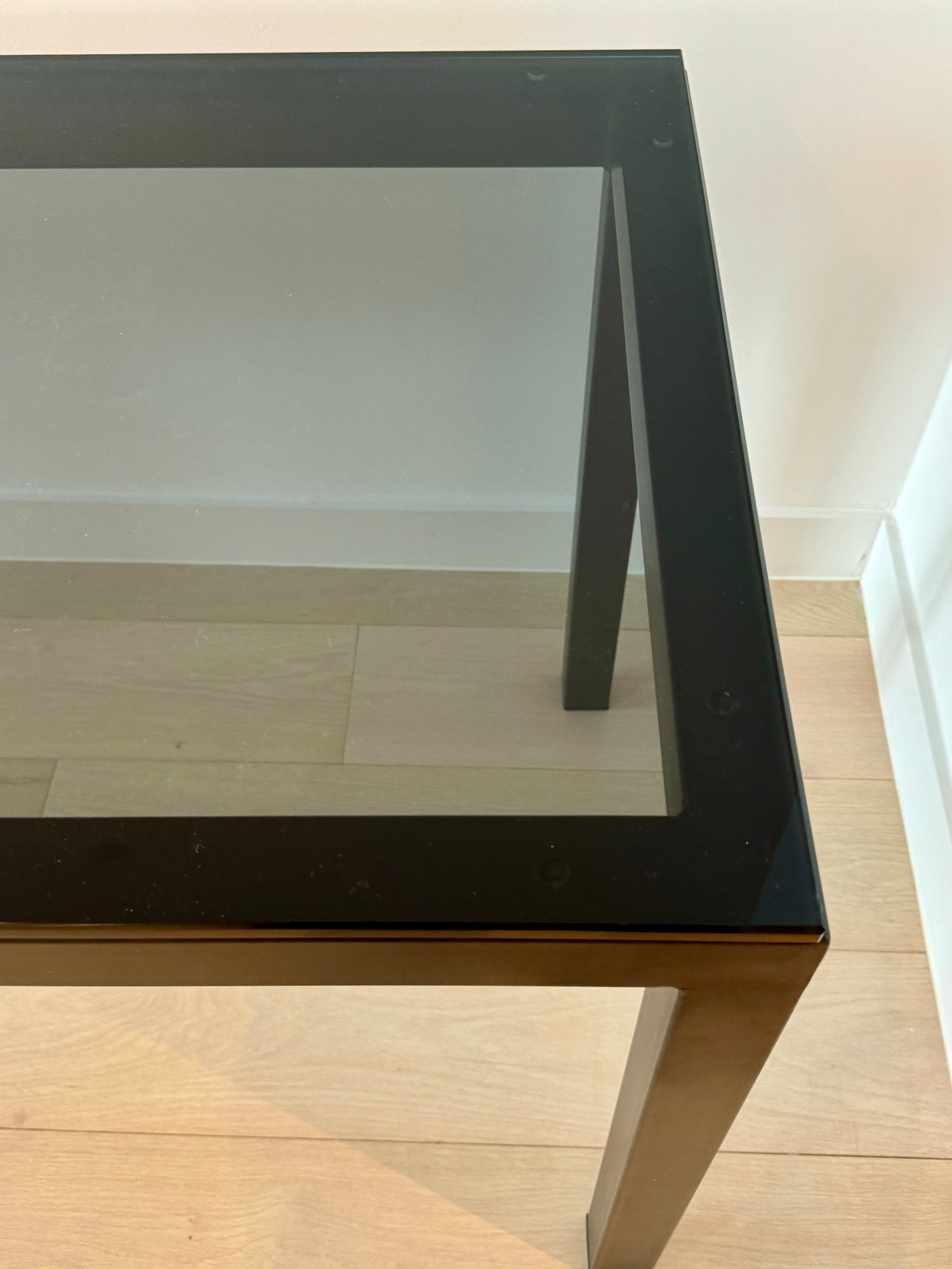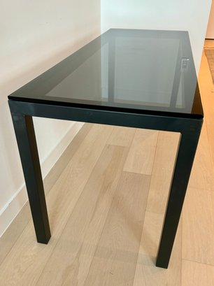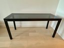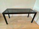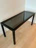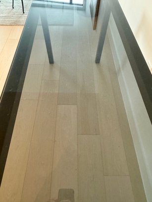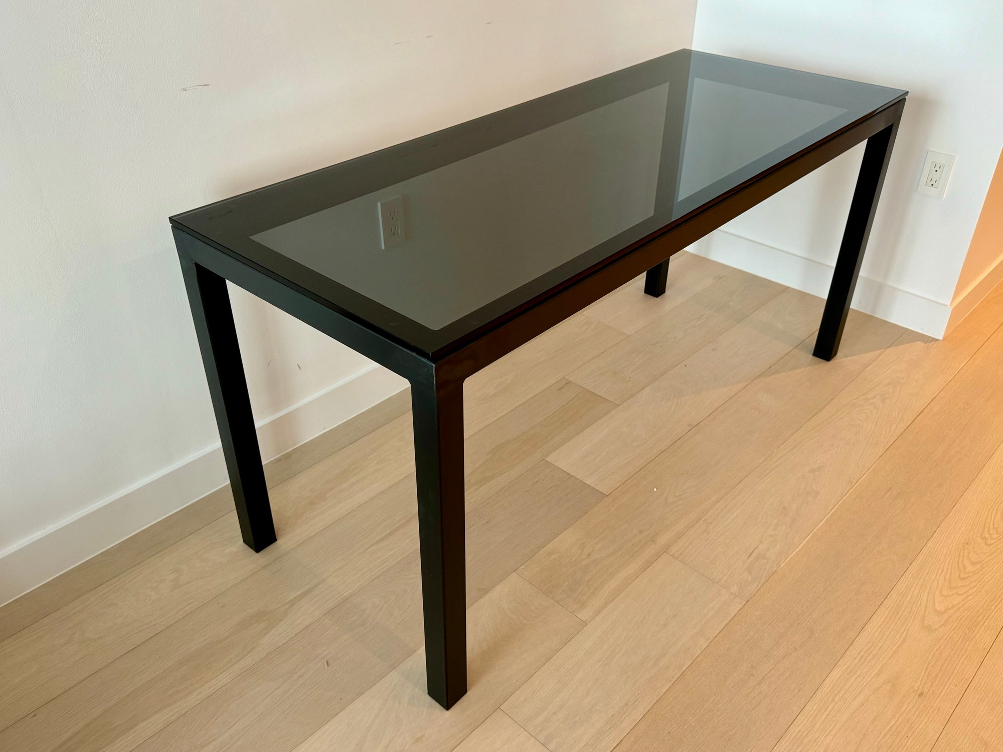 This lovely table measures 60”W x 24”D x 29”H. The glass is removable for transport.