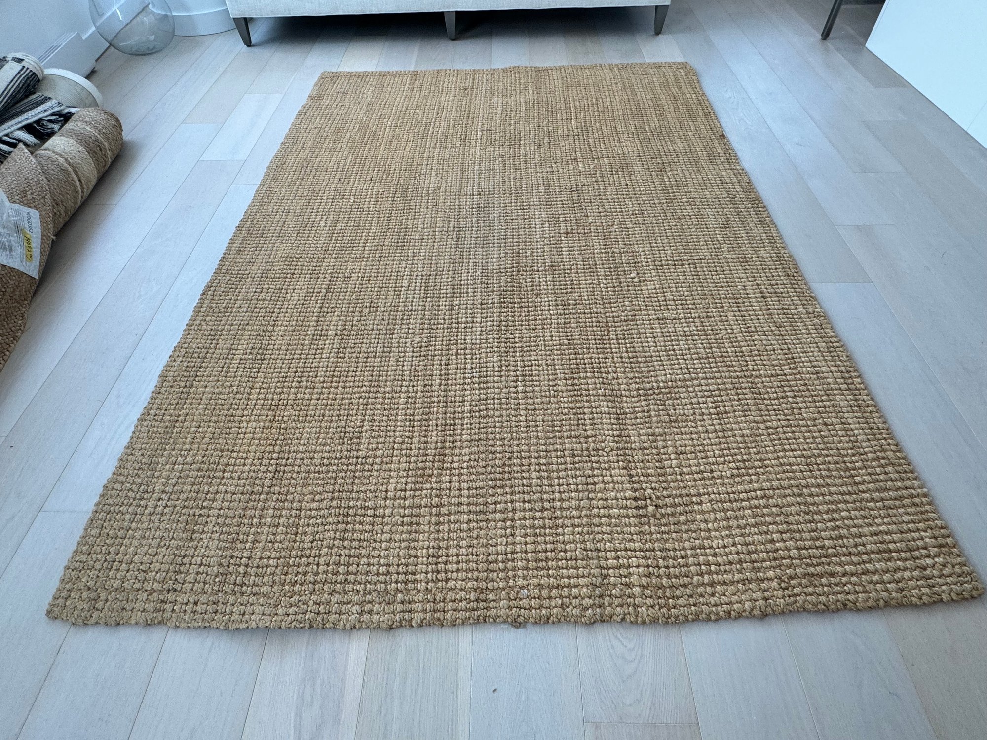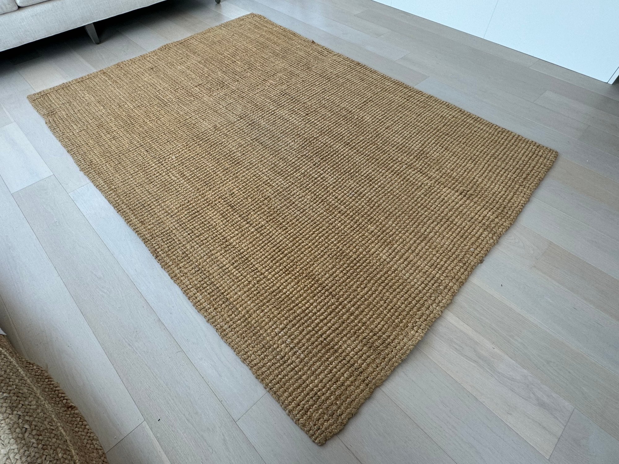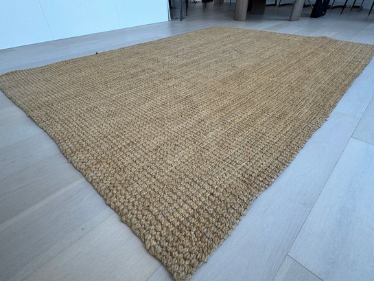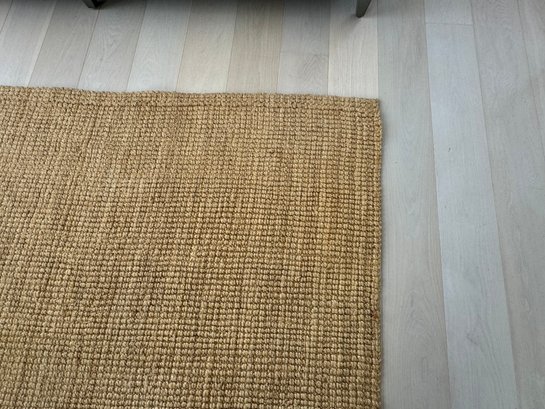 This versatile area rug measures 99” by 69”. It does show very light signs of use.