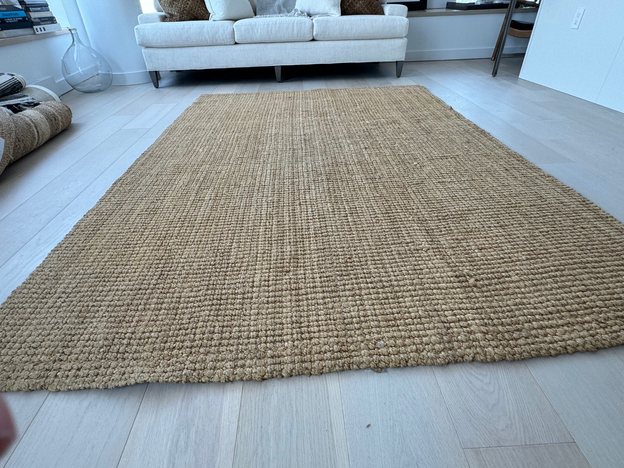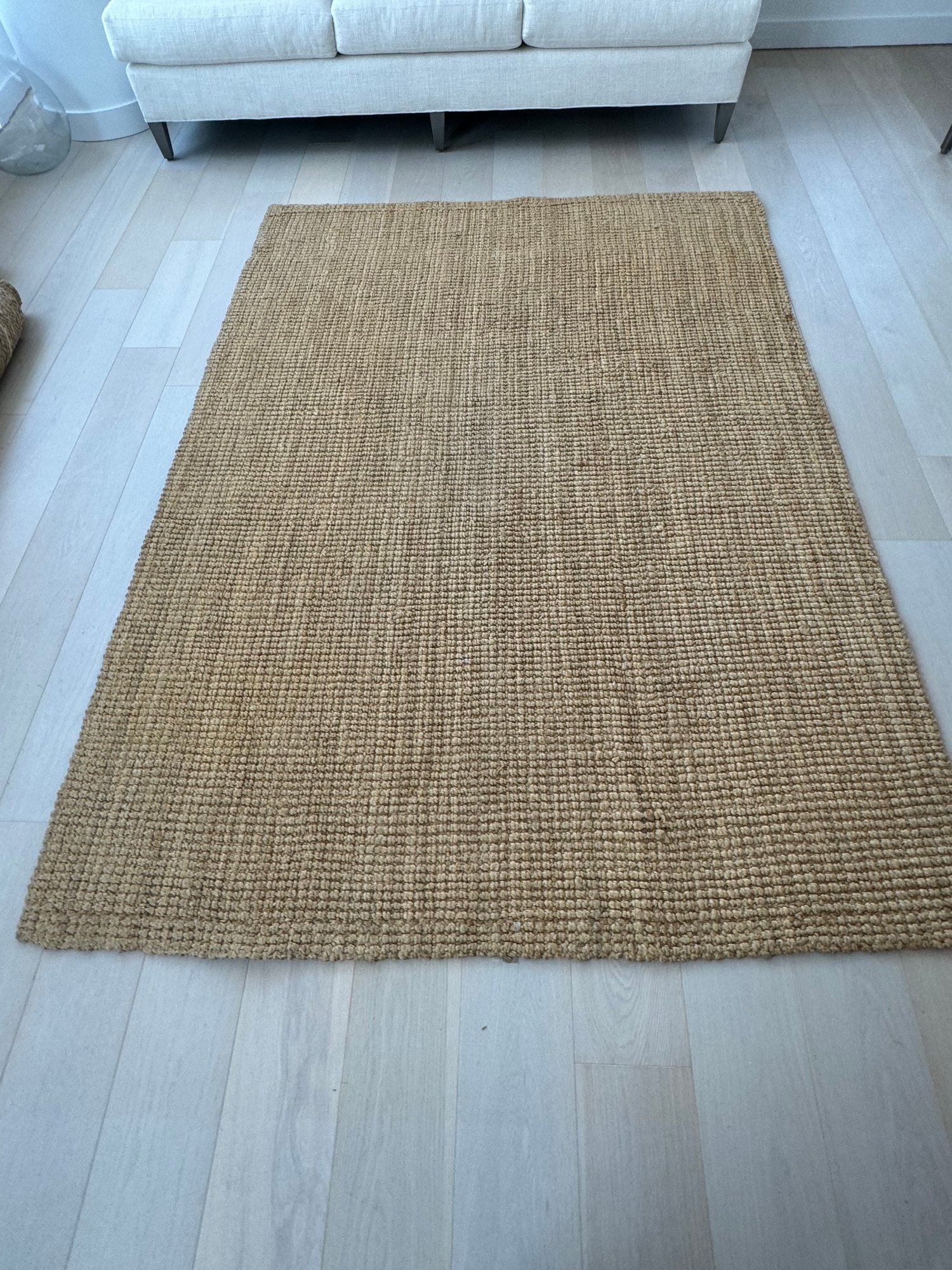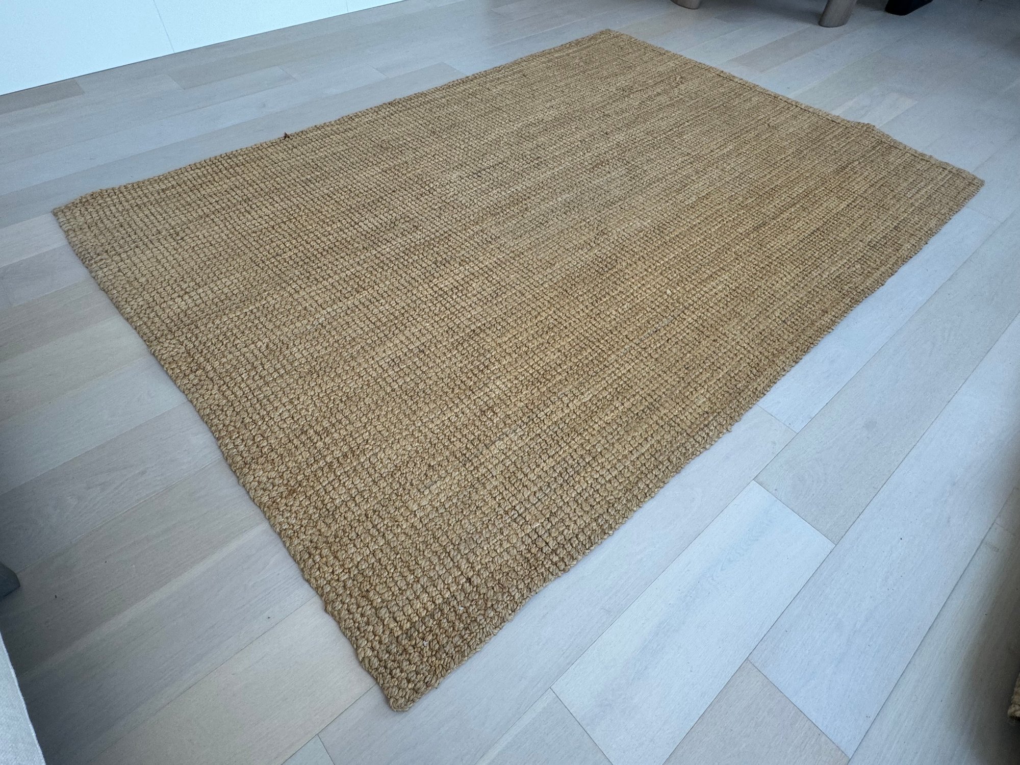 This versatile area rug measures 99” by 69”. It does show very light signs of use.