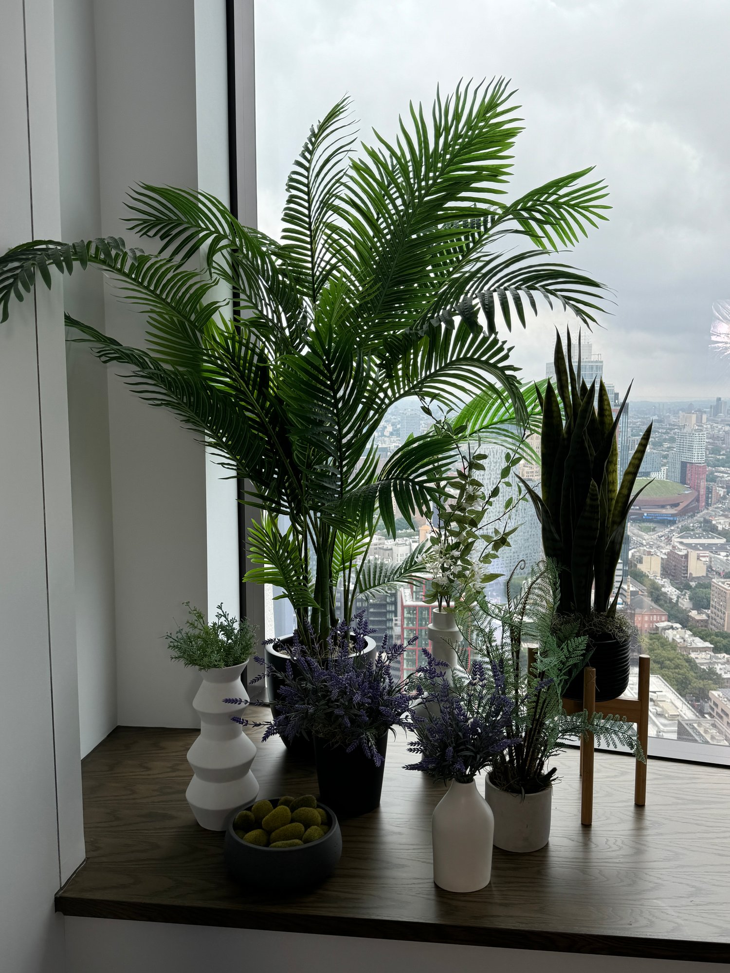 These pieces range from ceramic to stone to wood and measure 44”D by 66’H down to 9”D by 5”H.