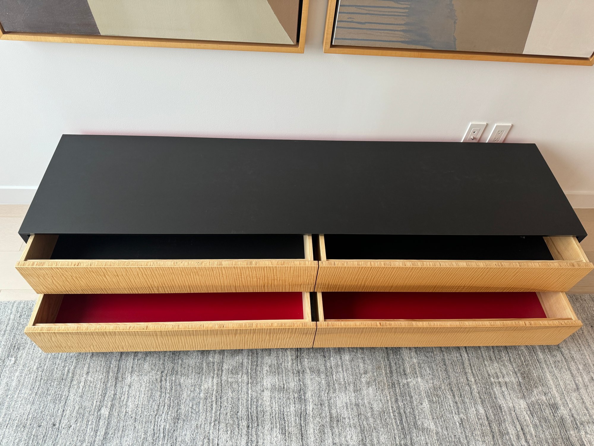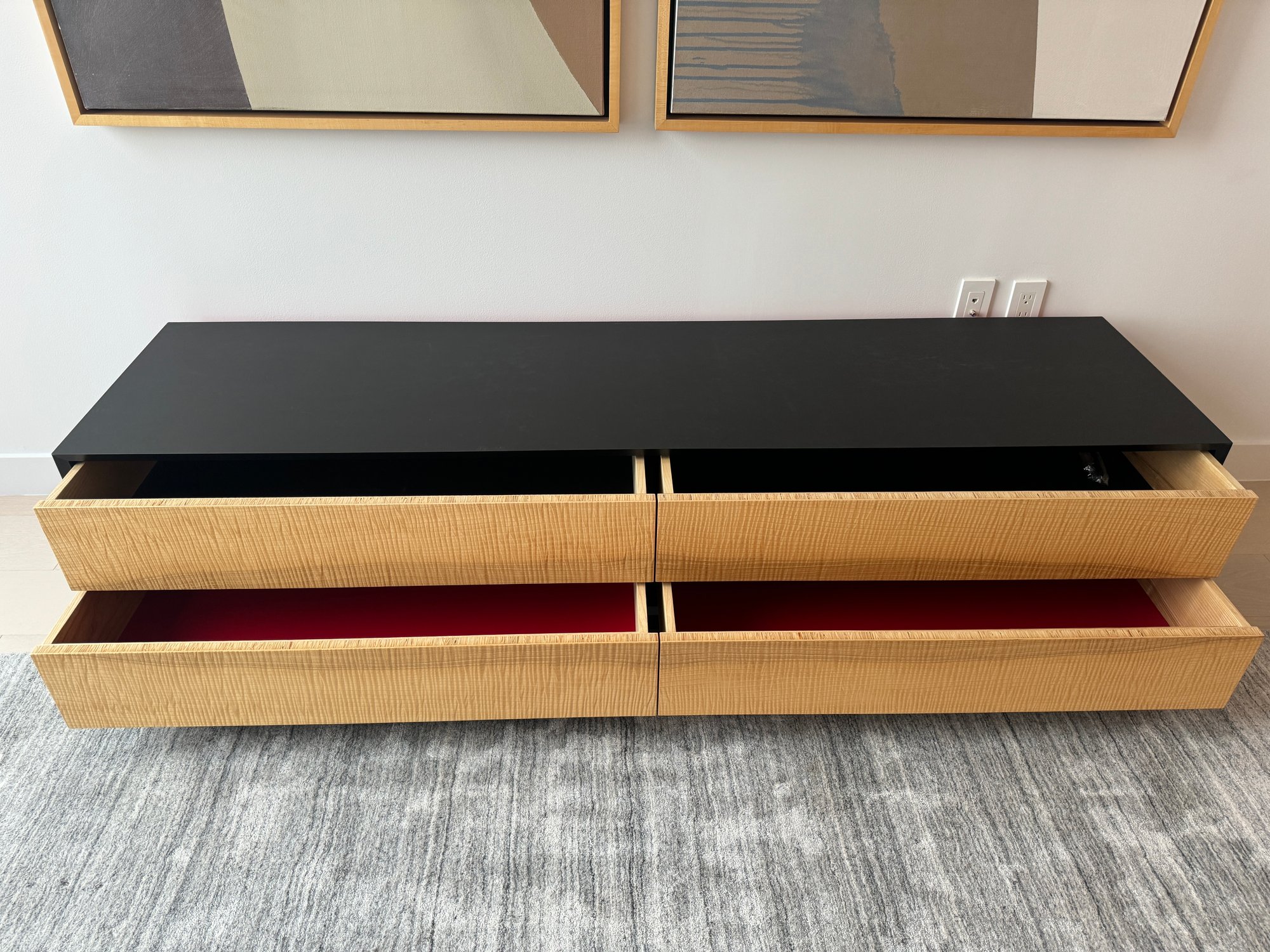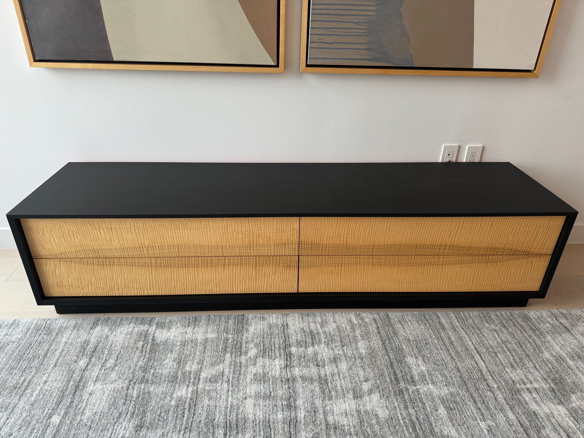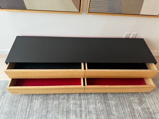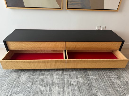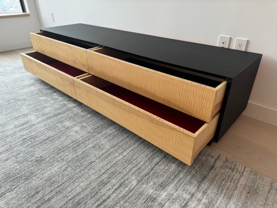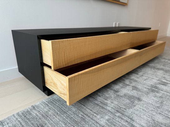 This beautiful piece measures 76”W x 19”D x 18”H. The drawers feature a magnetic closure.