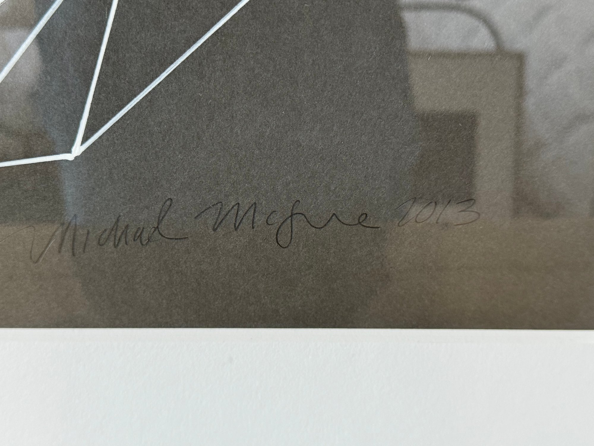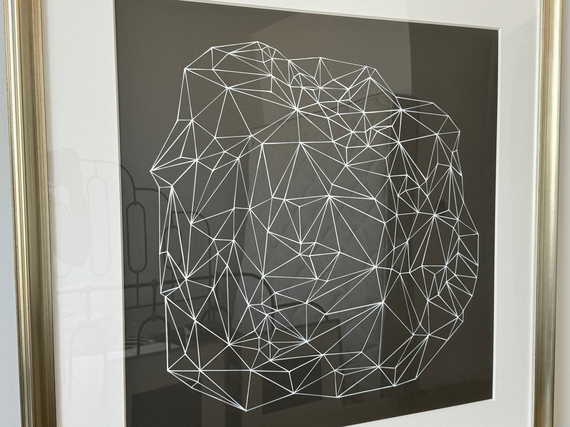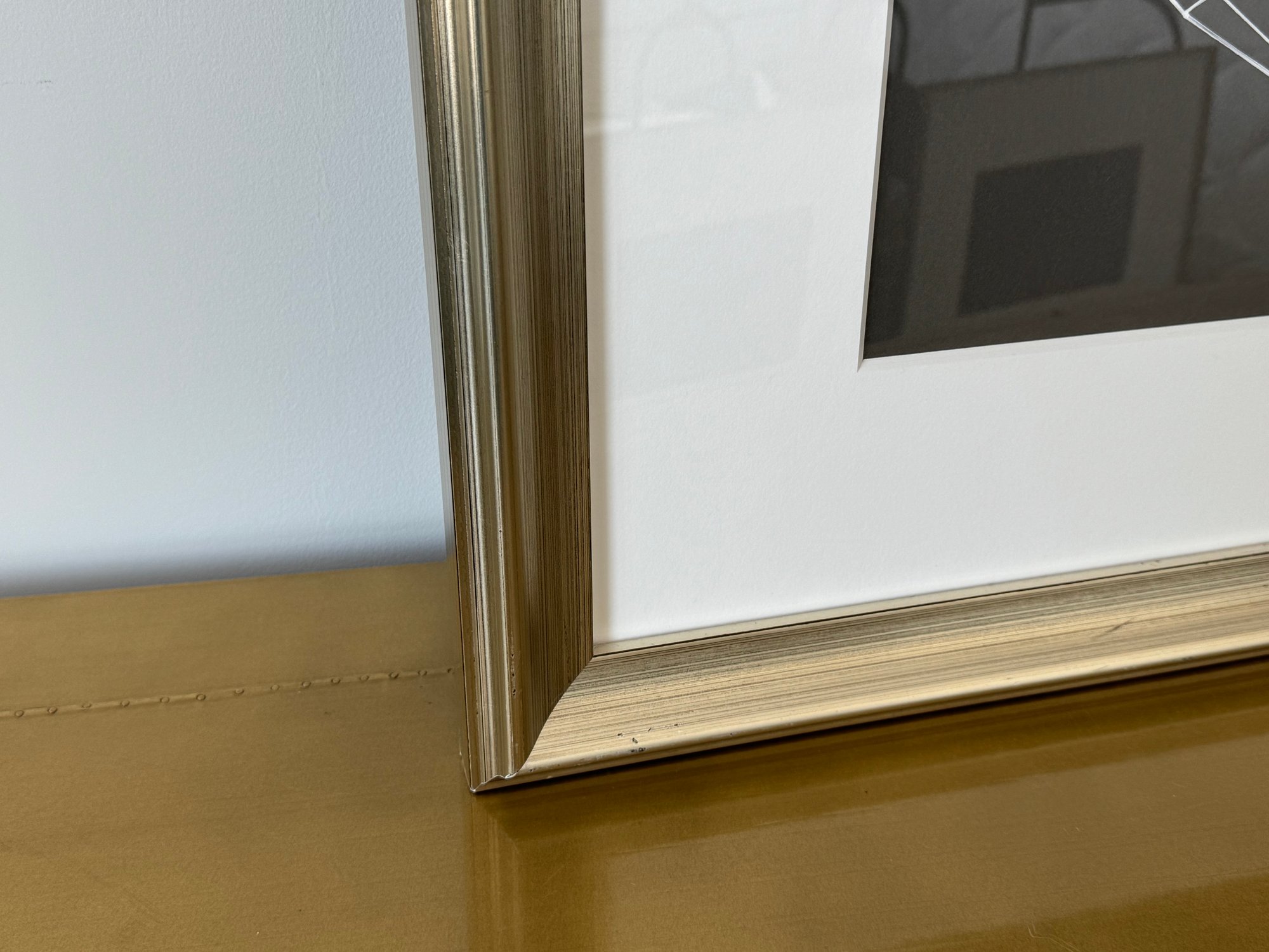 This beautiful piece is framed in silver-painted wood and measures 37.5” square.