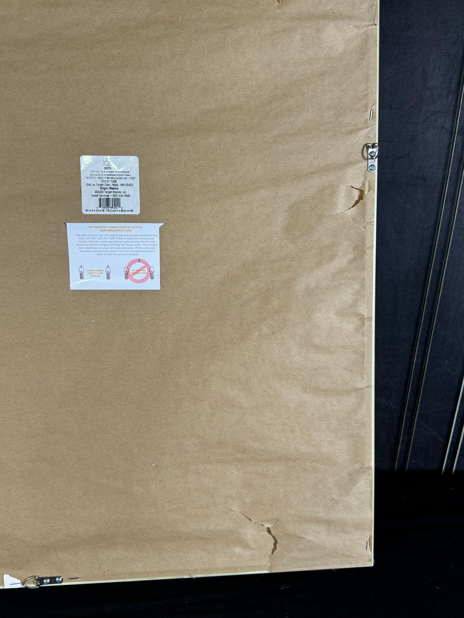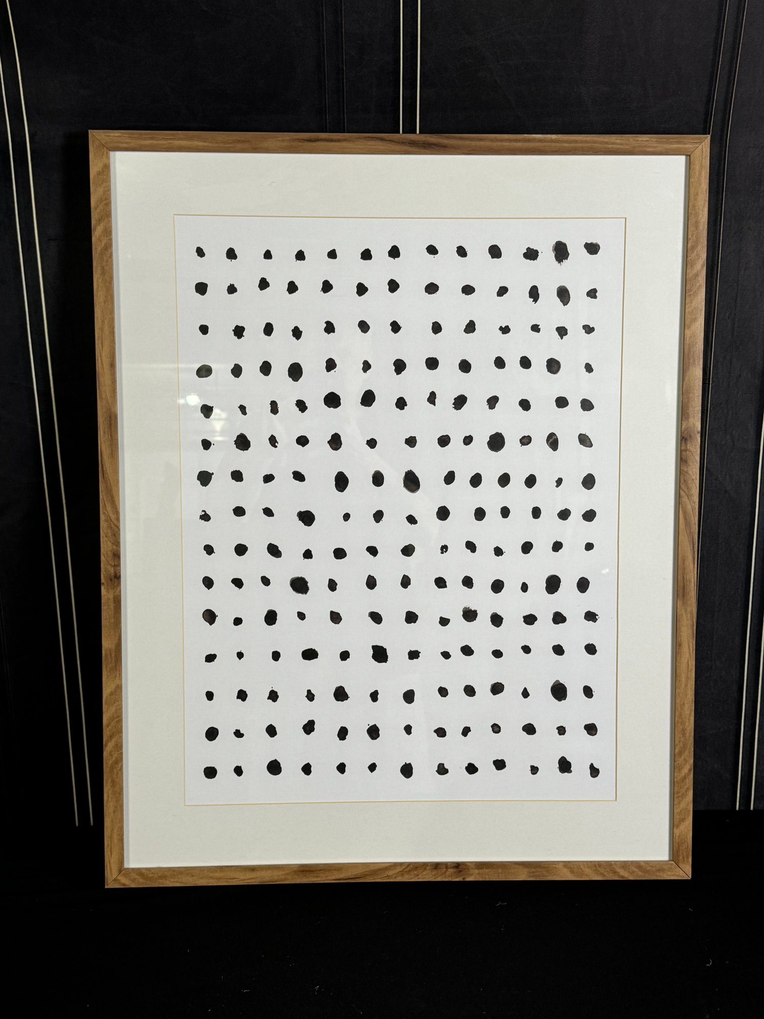This natural wood framed piece measures 24”W by 30”H.