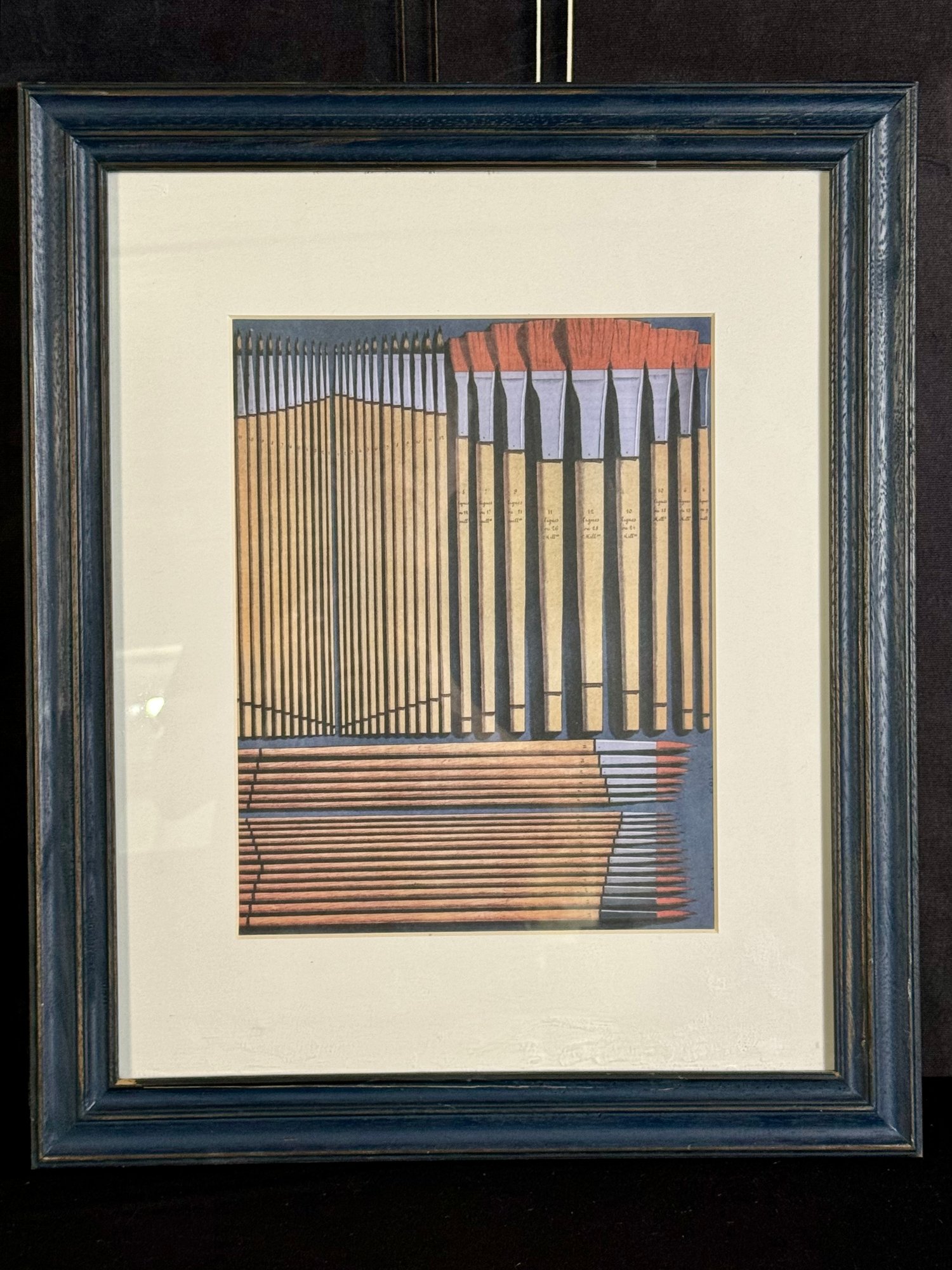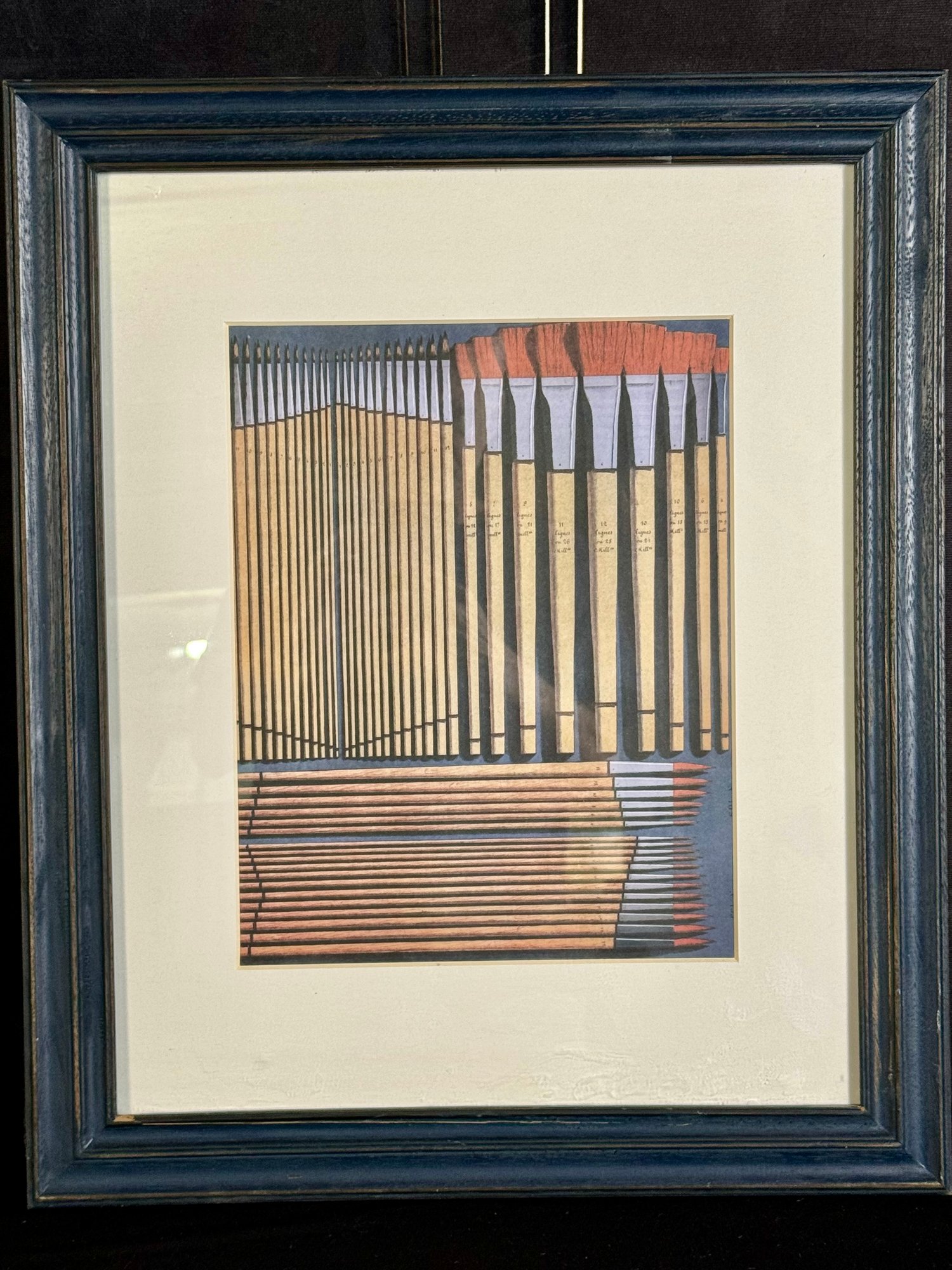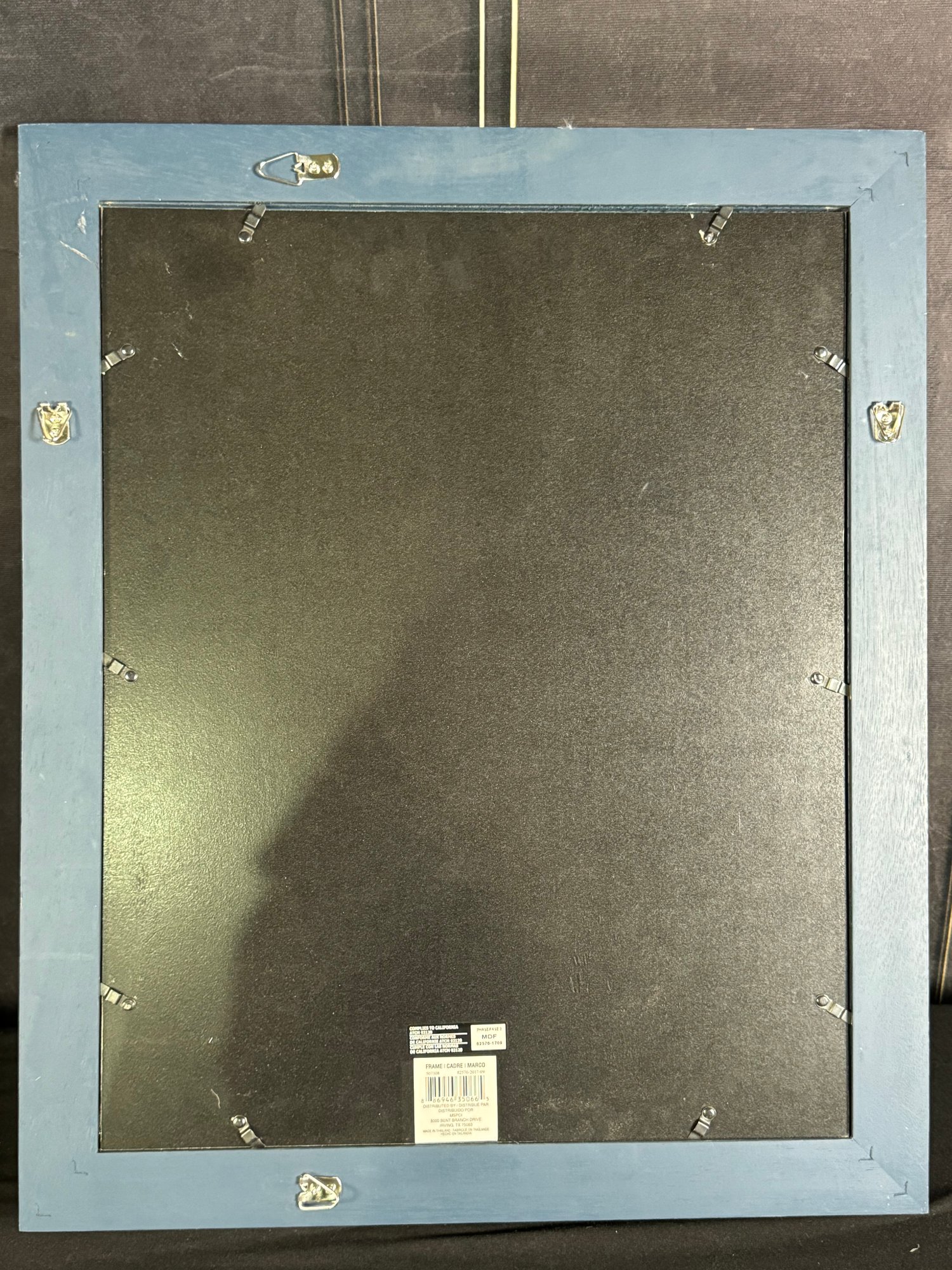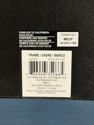 This blue-painted wood frame piece measures 19”W by 23.5”H.