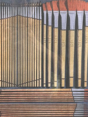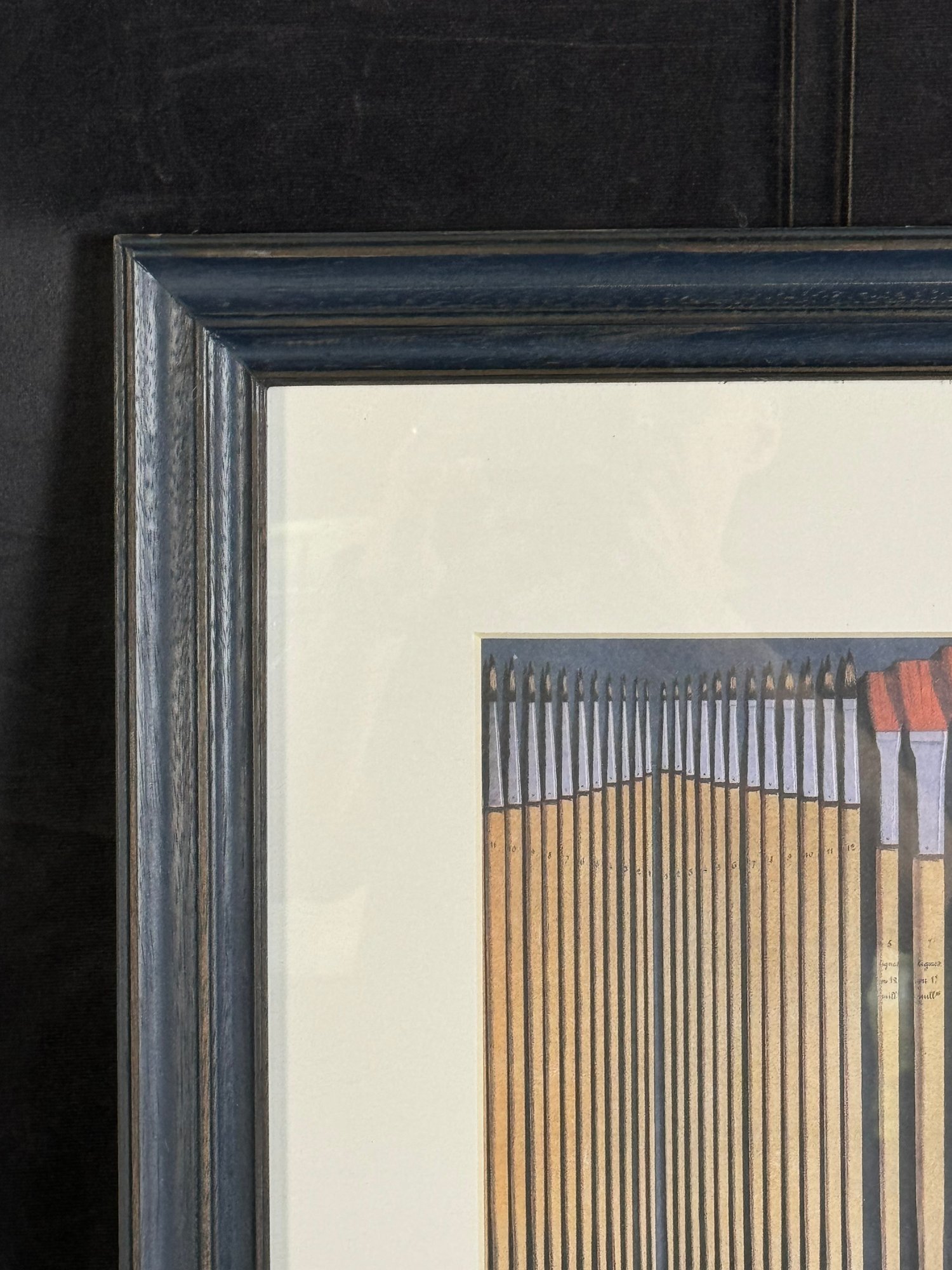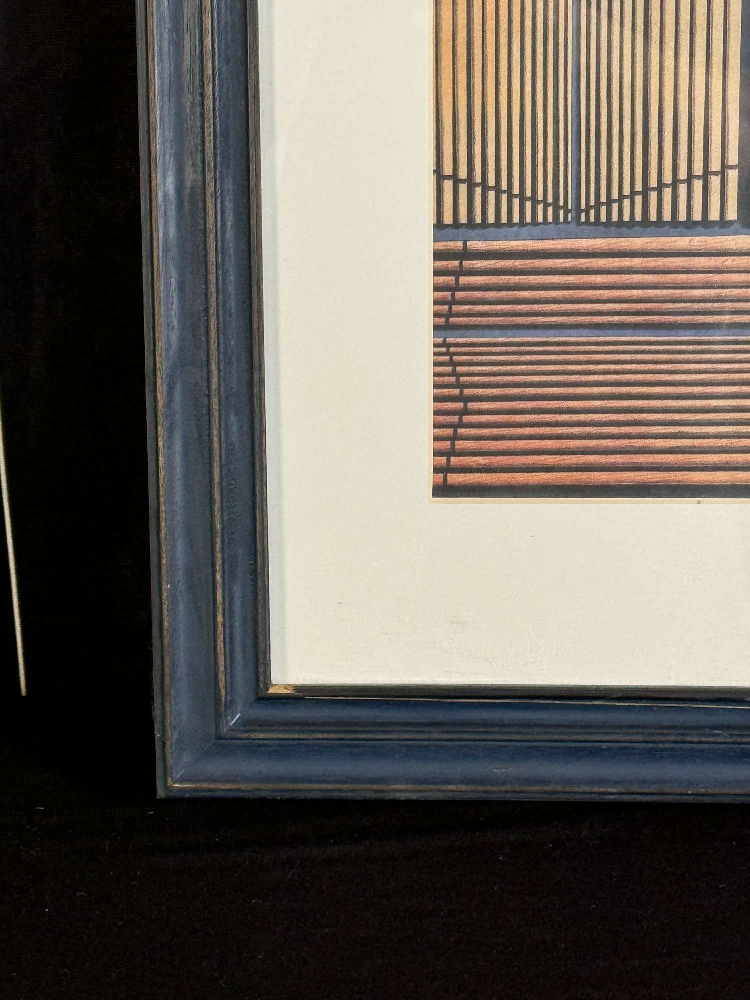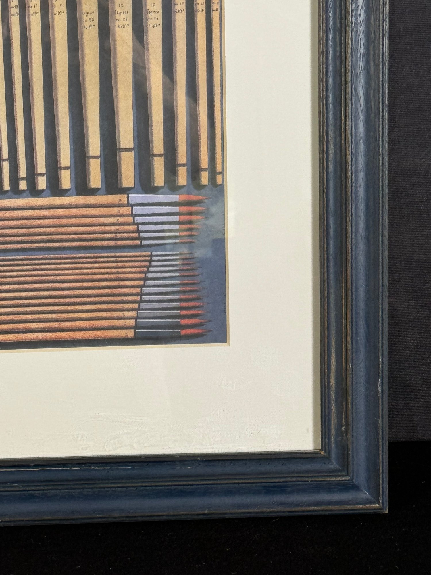 This blue-painted wood frame piece measures 19”W by 23.5”H.