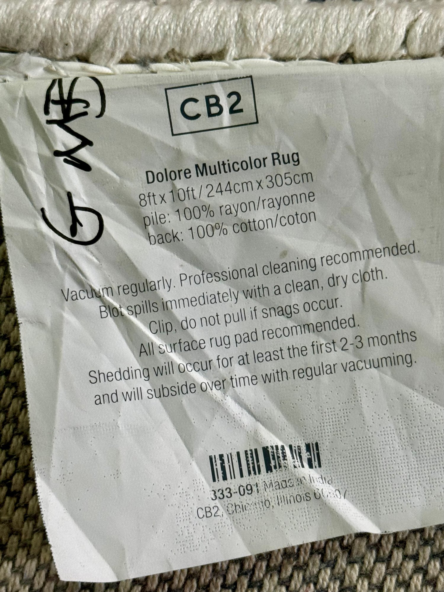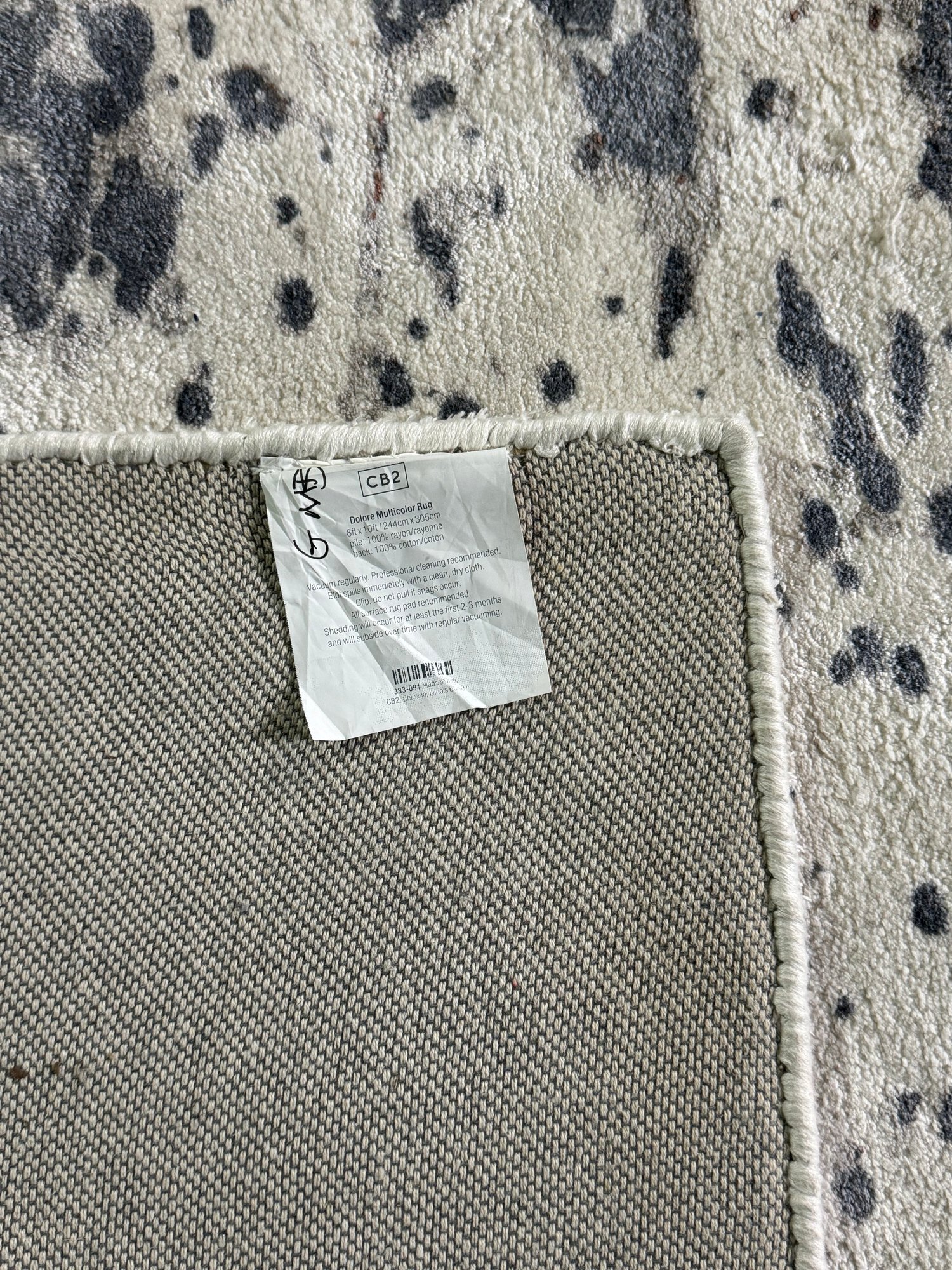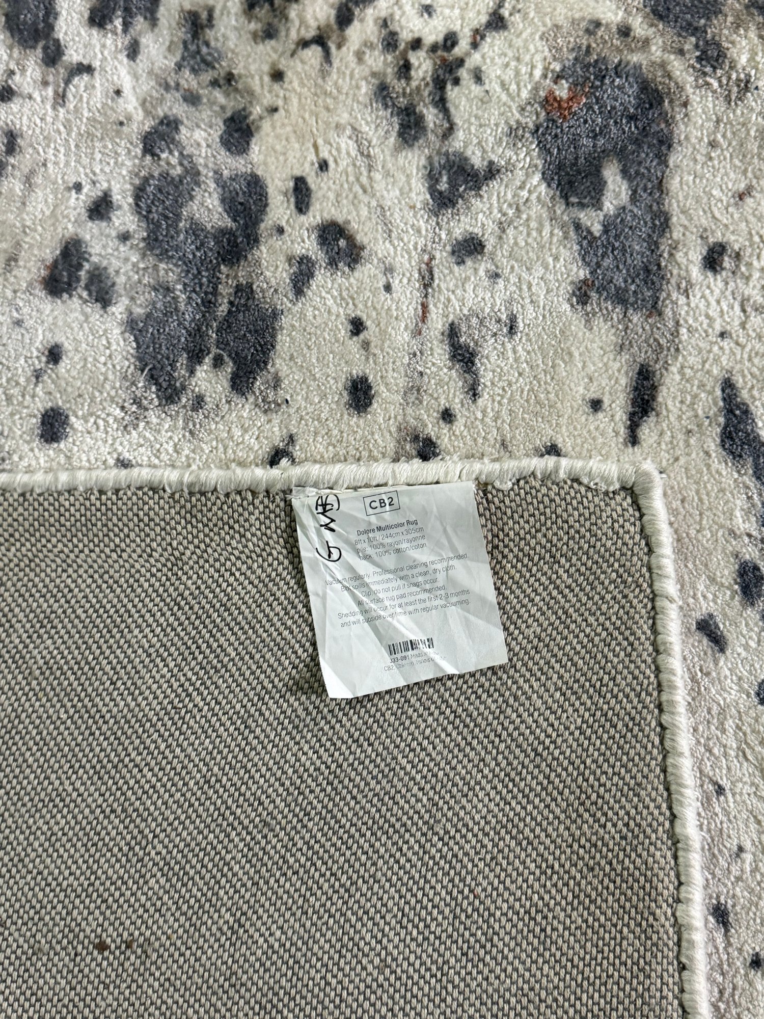 This 100% Rayon pile rug measures 96” by 120”.