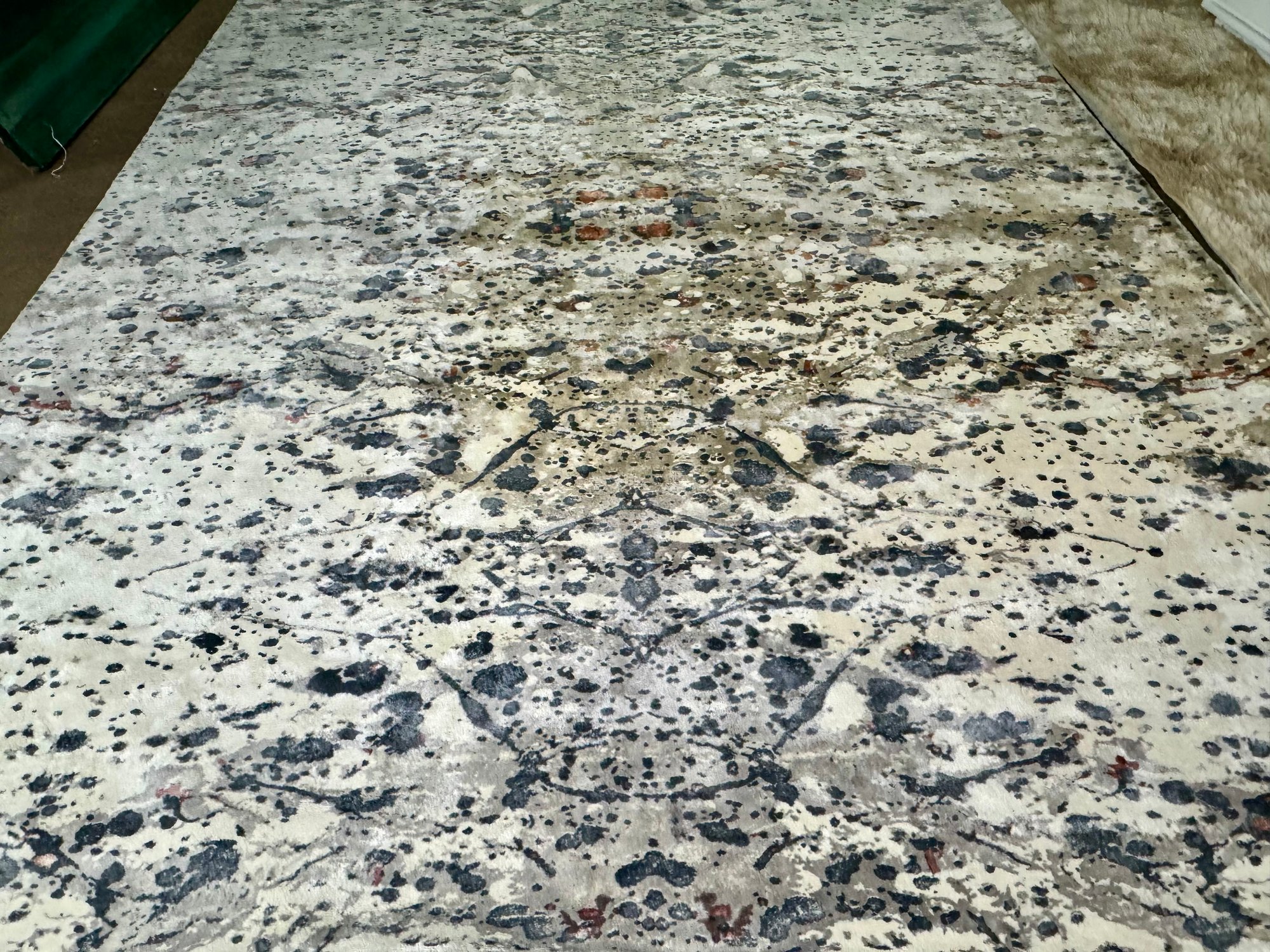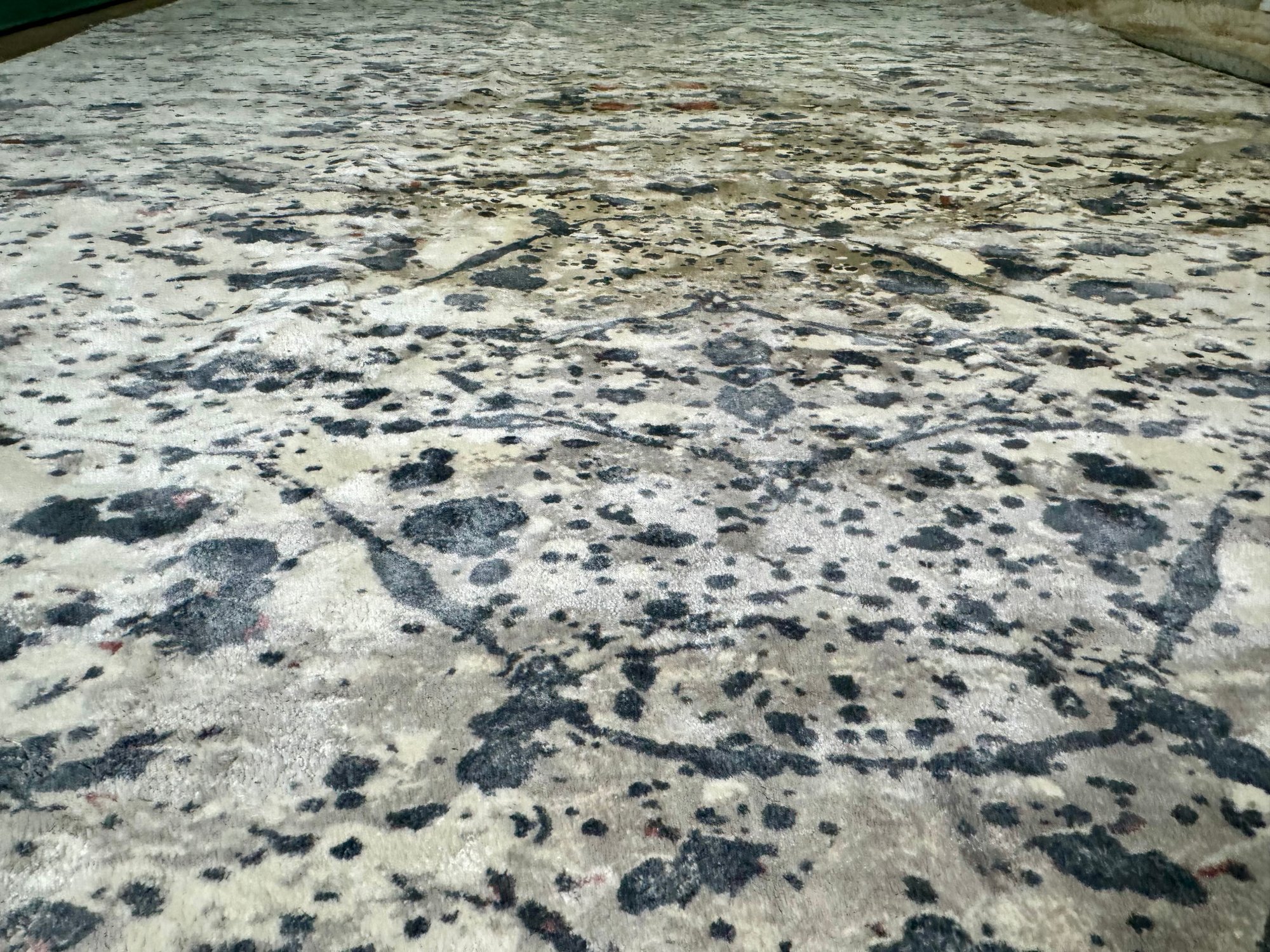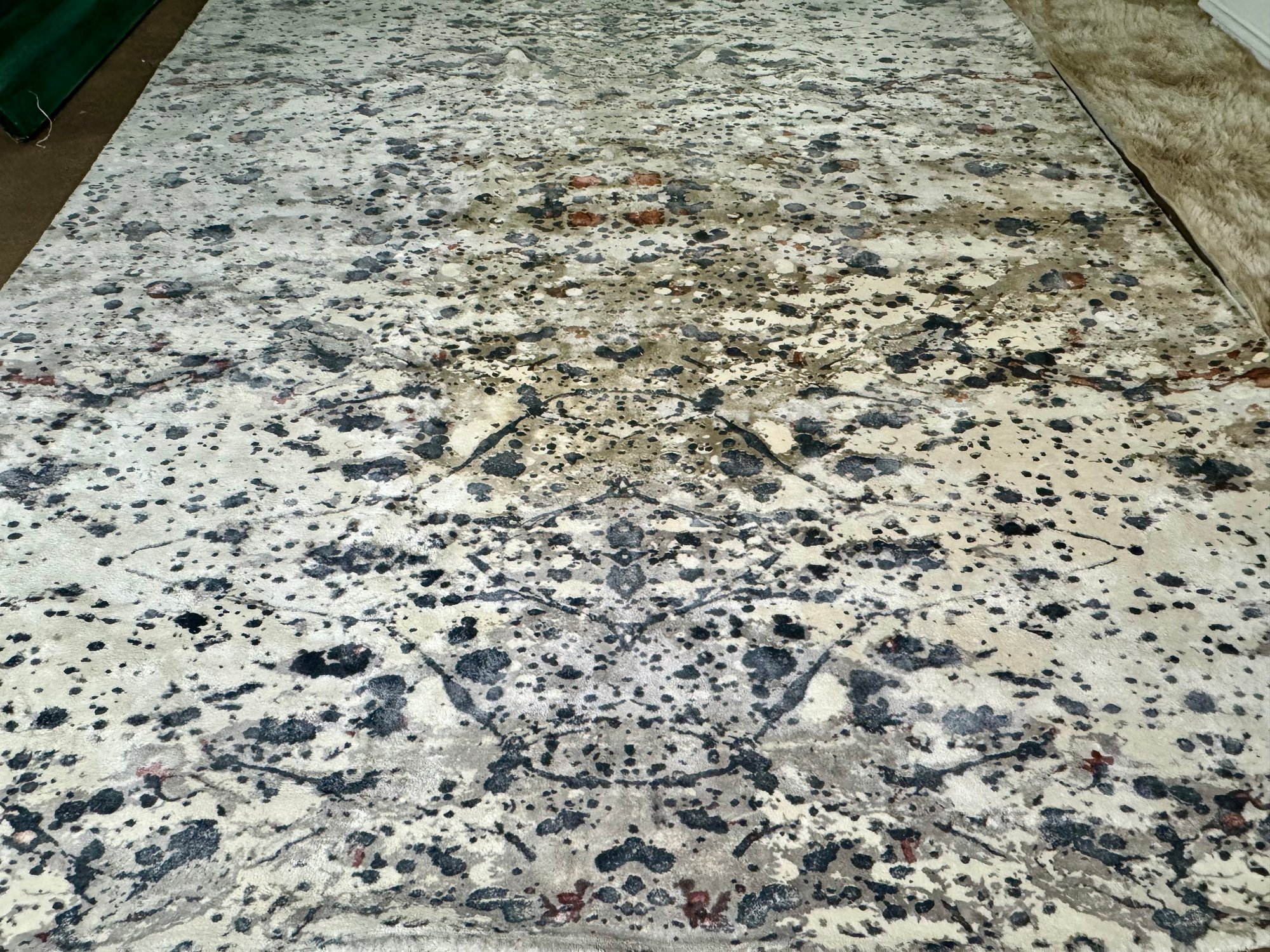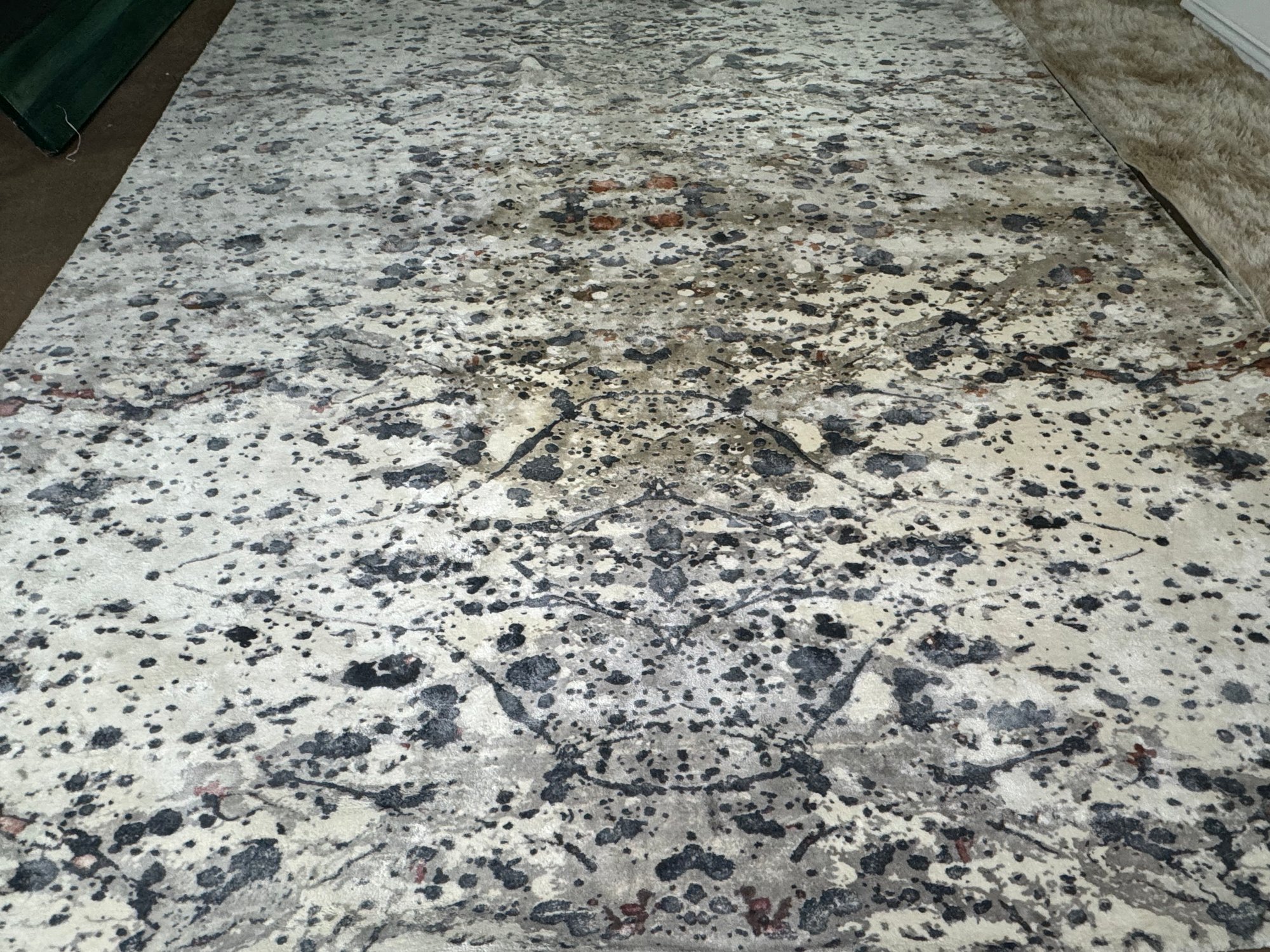This 100% Rayon pile rug measures 96” by 120”.