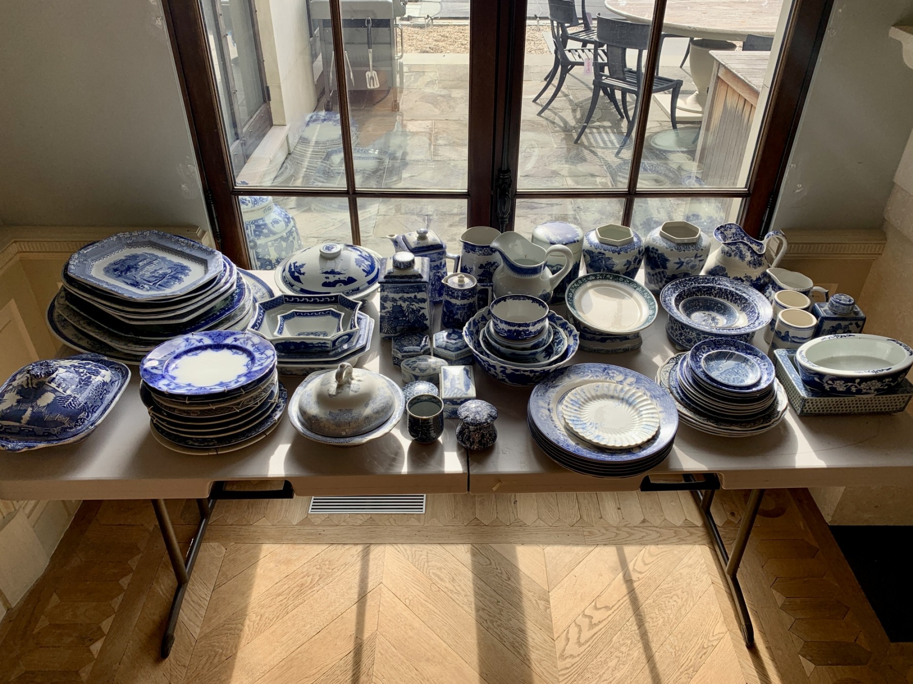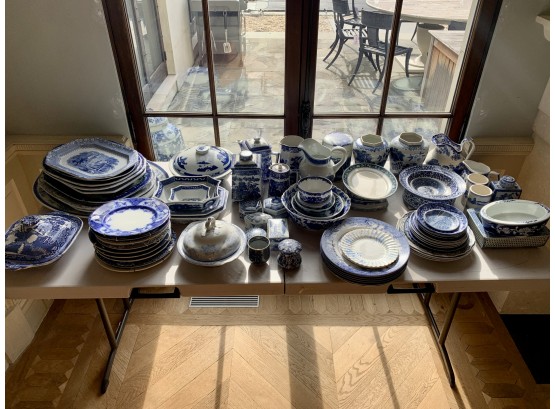 This large collection of ceramic transerware includes approximately 80 piece of various sizes and shapes.