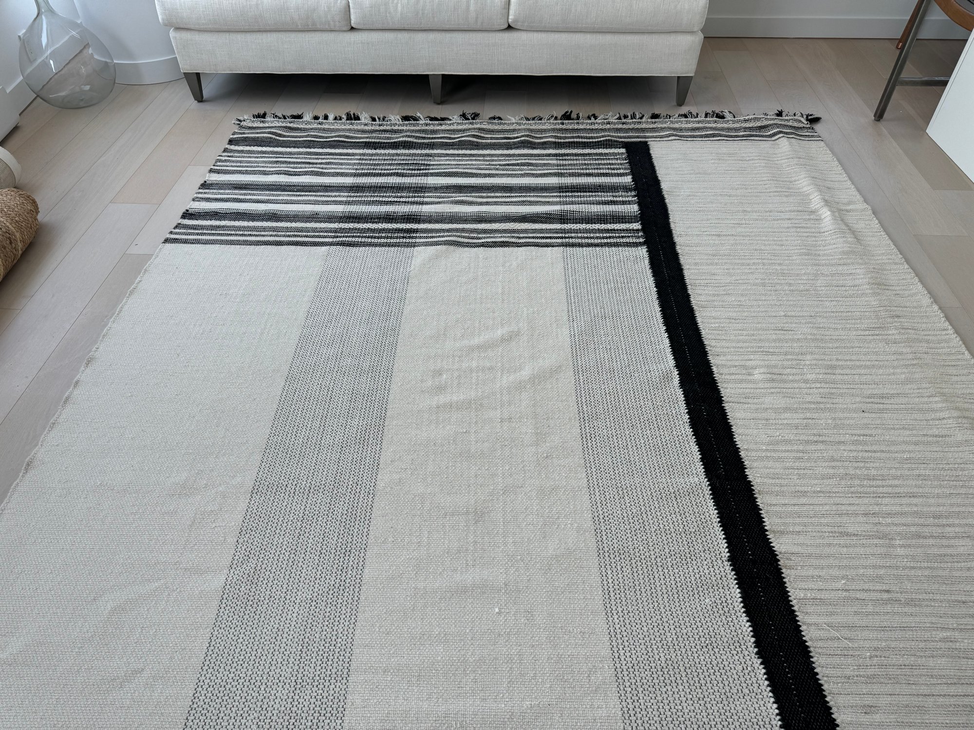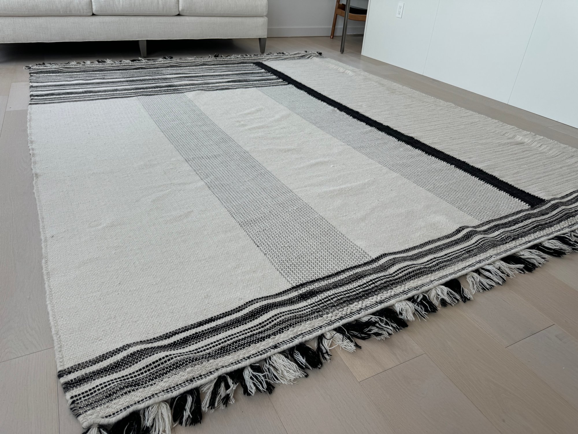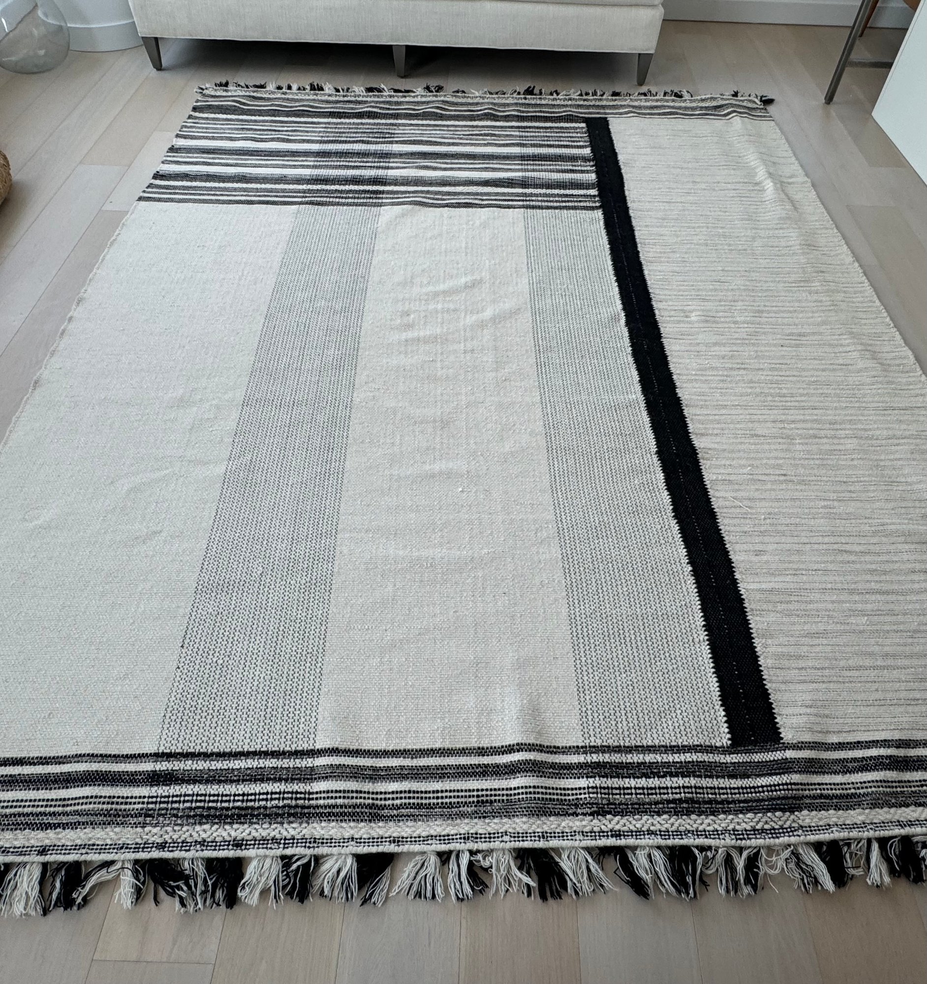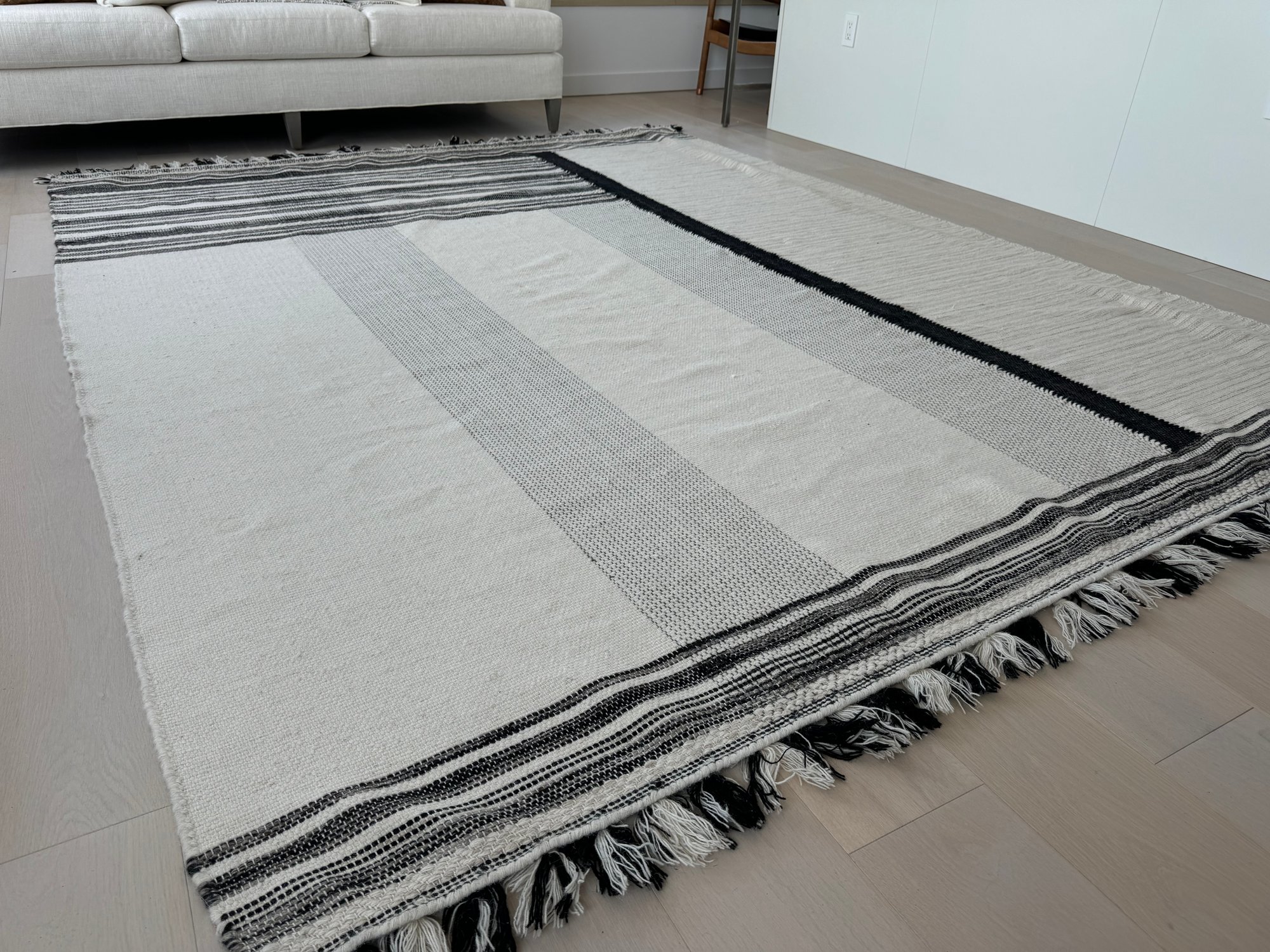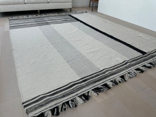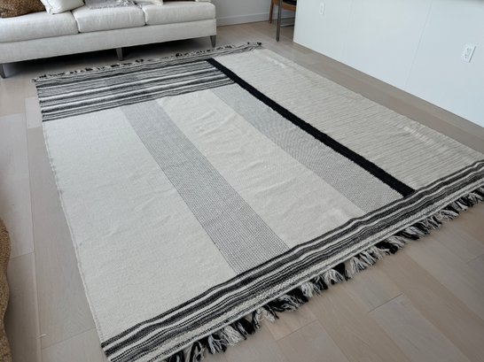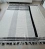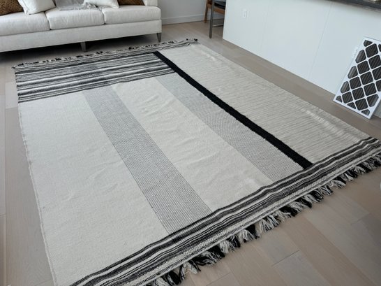 This unmarked rug measures 93” x 115”.