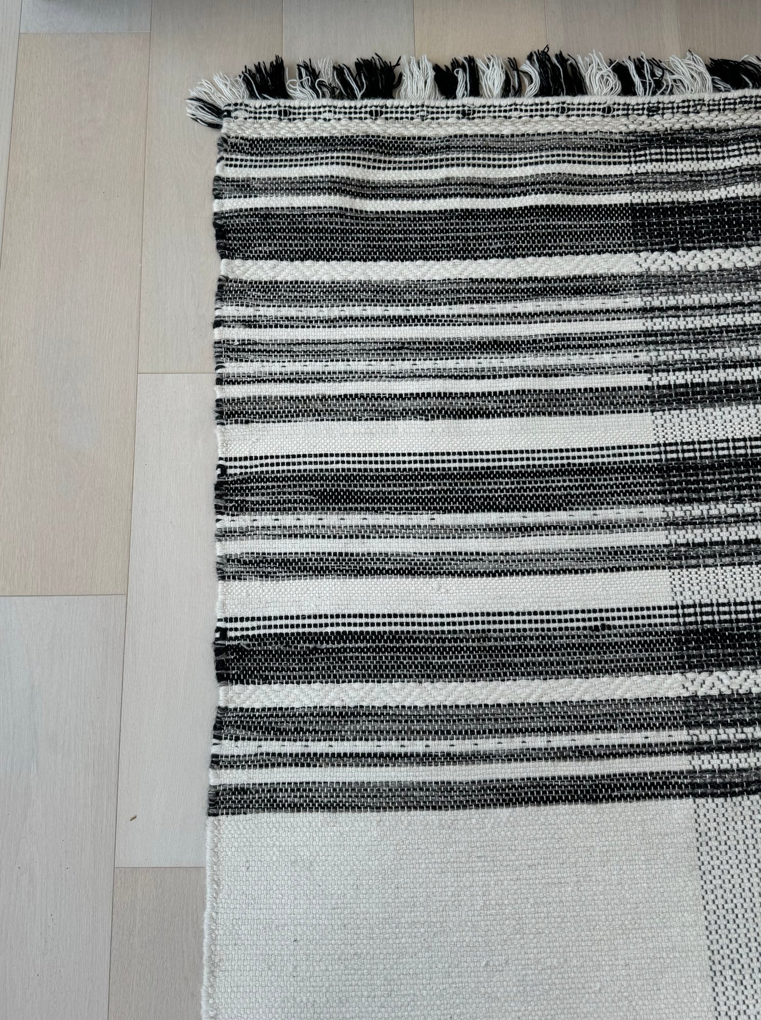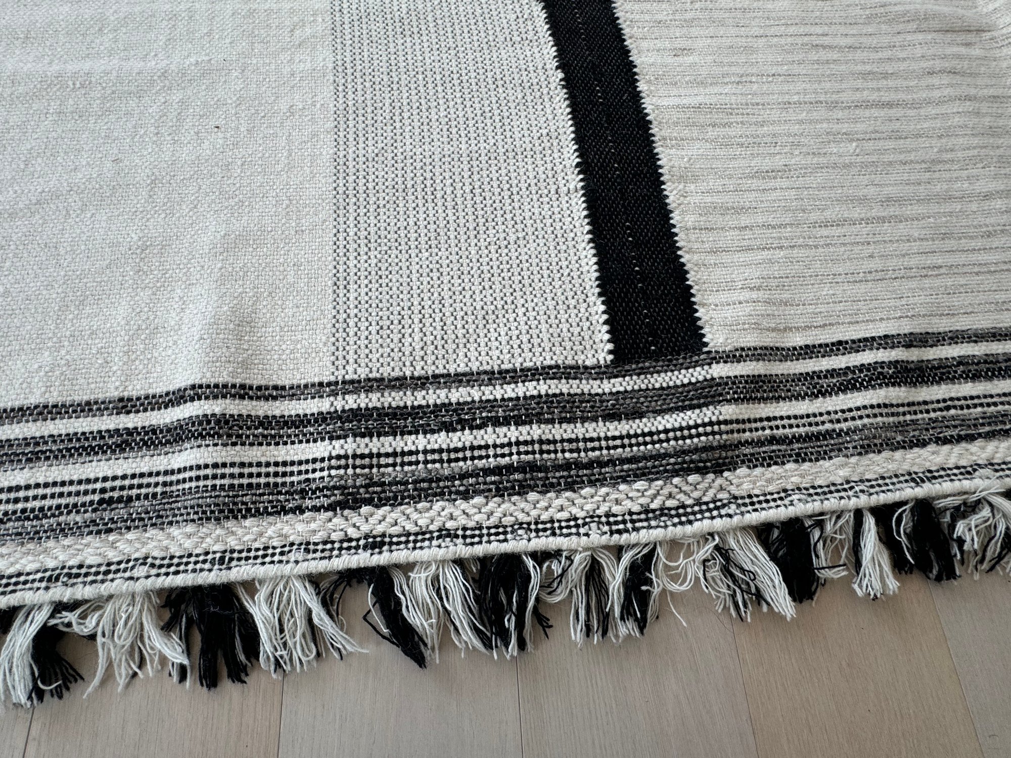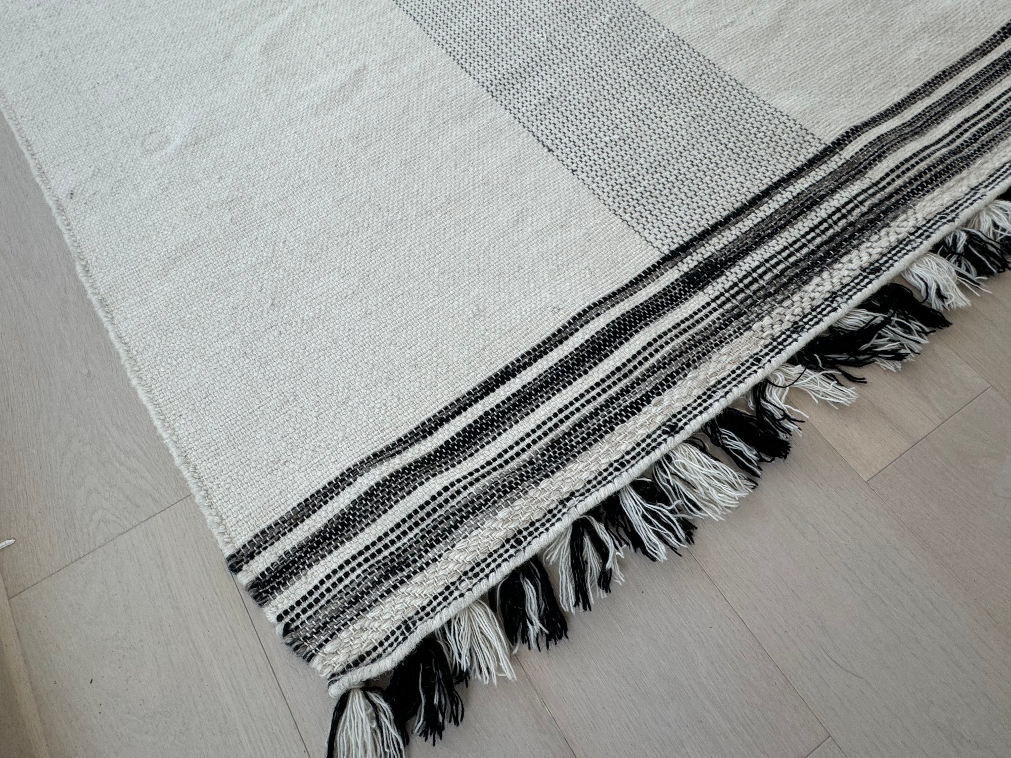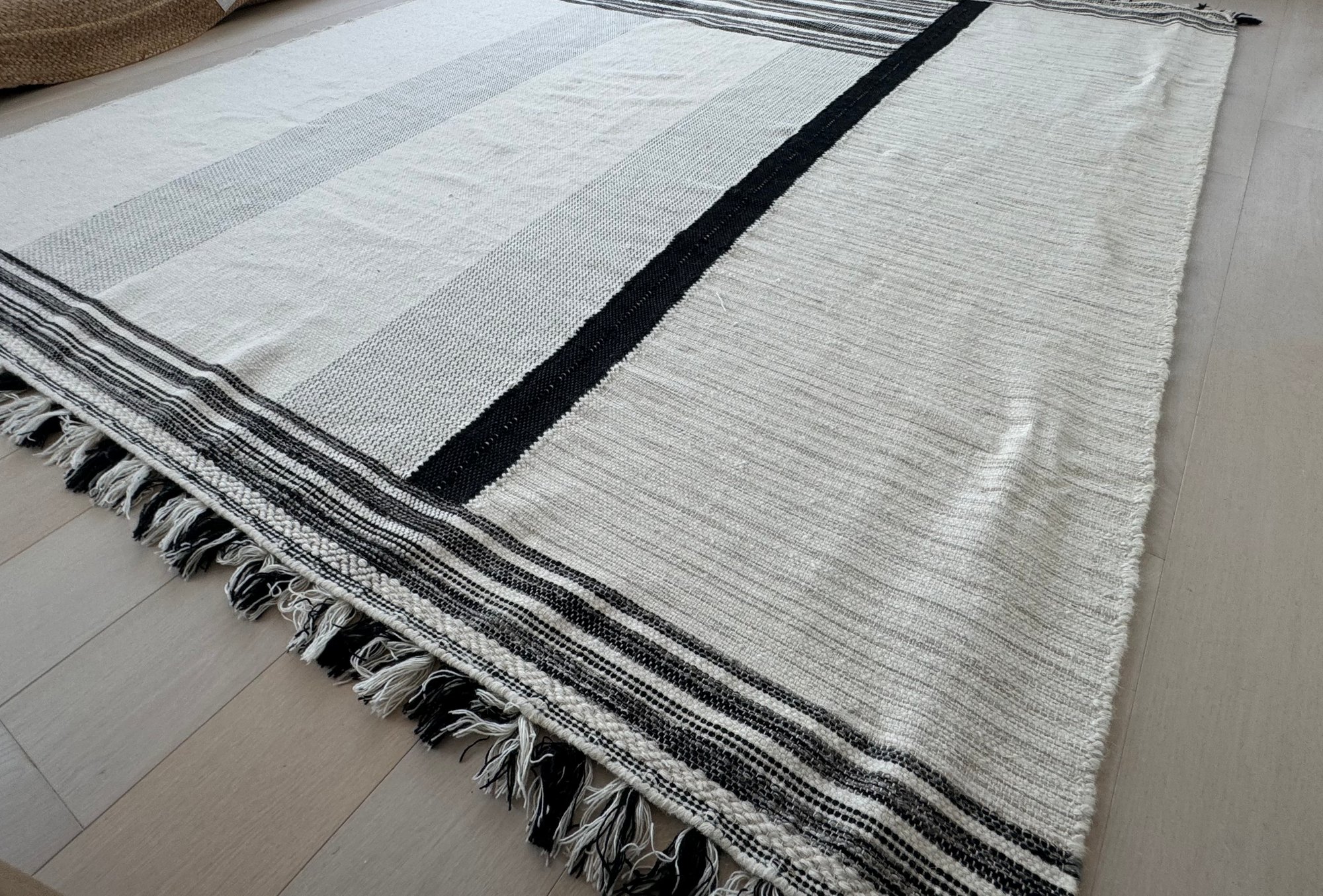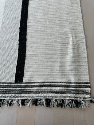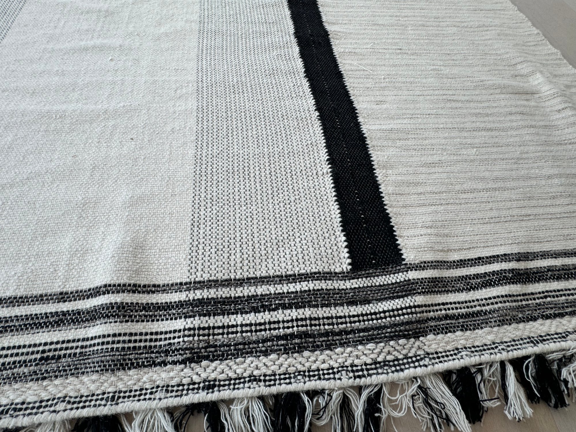 This unmarked rug measures 93” x 115”.
