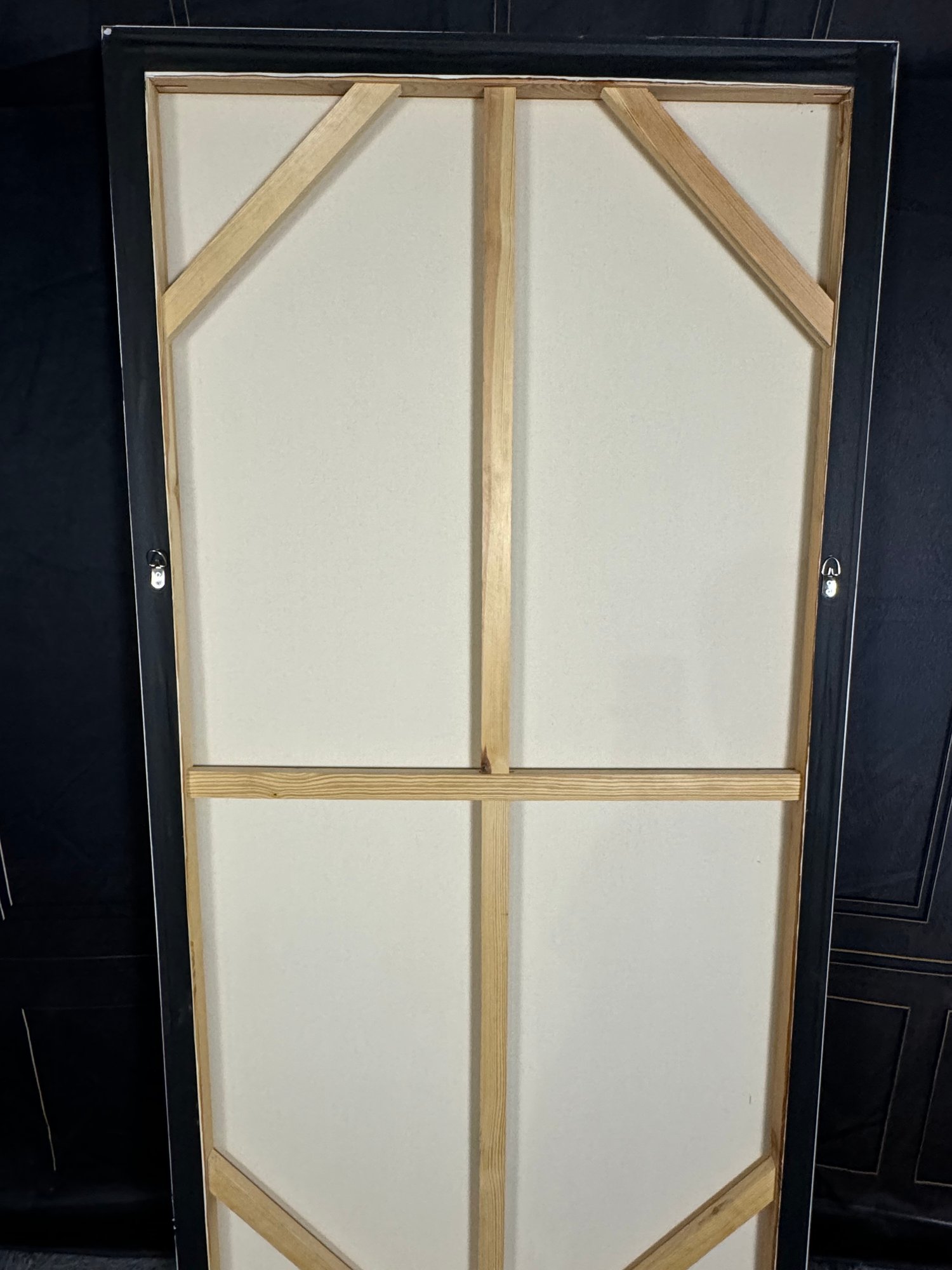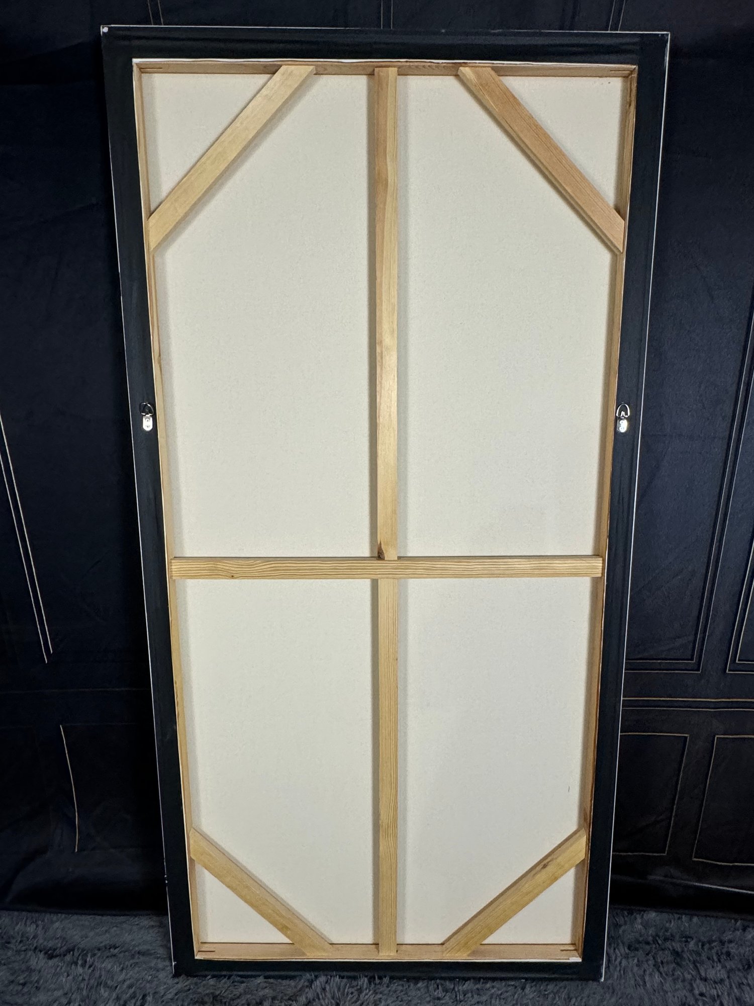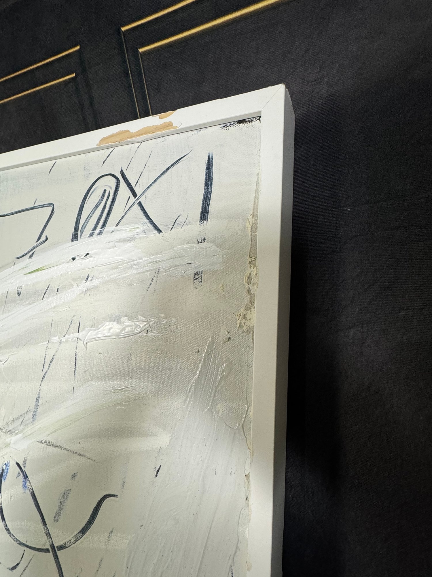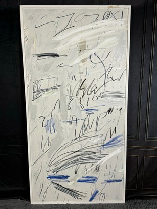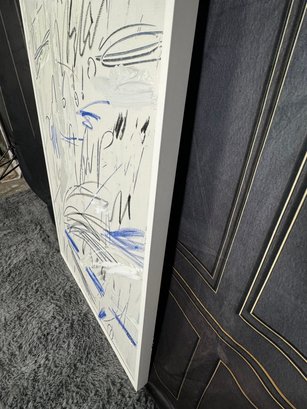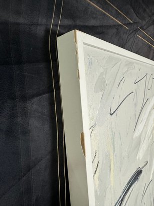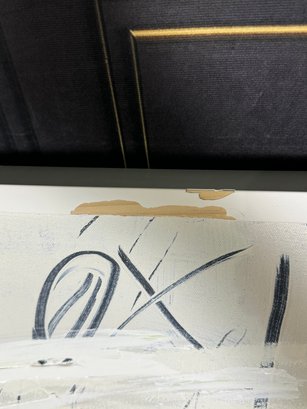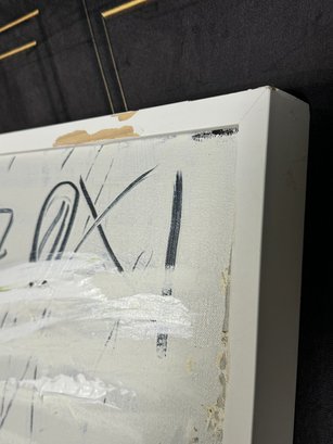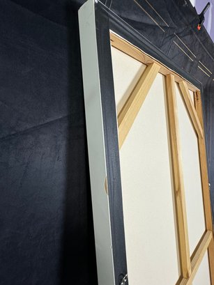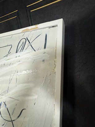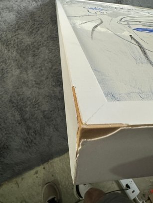 There is some damage to the painted white wood frame that is photo-documented. This piece measures 37”W by 73.5”H.