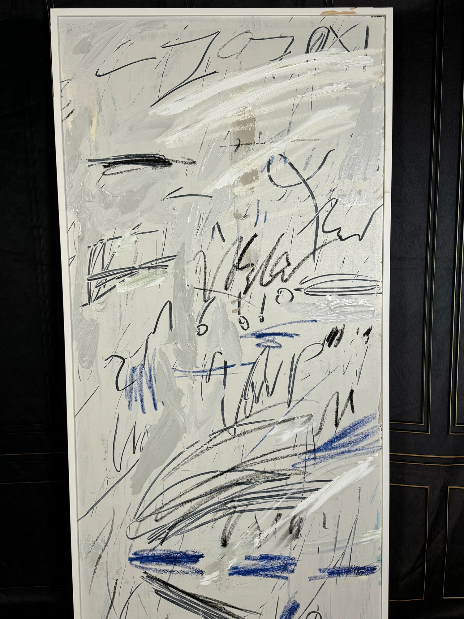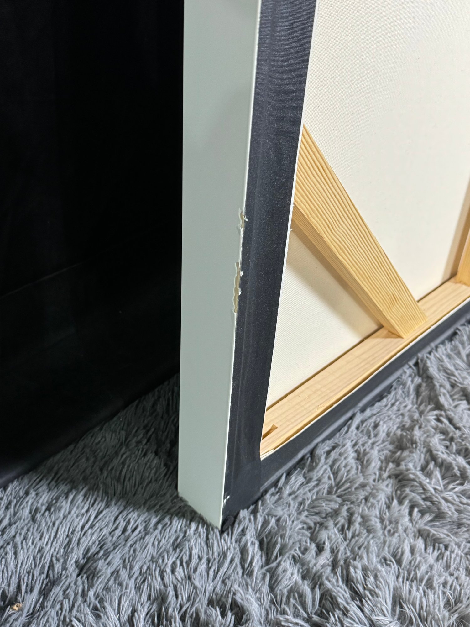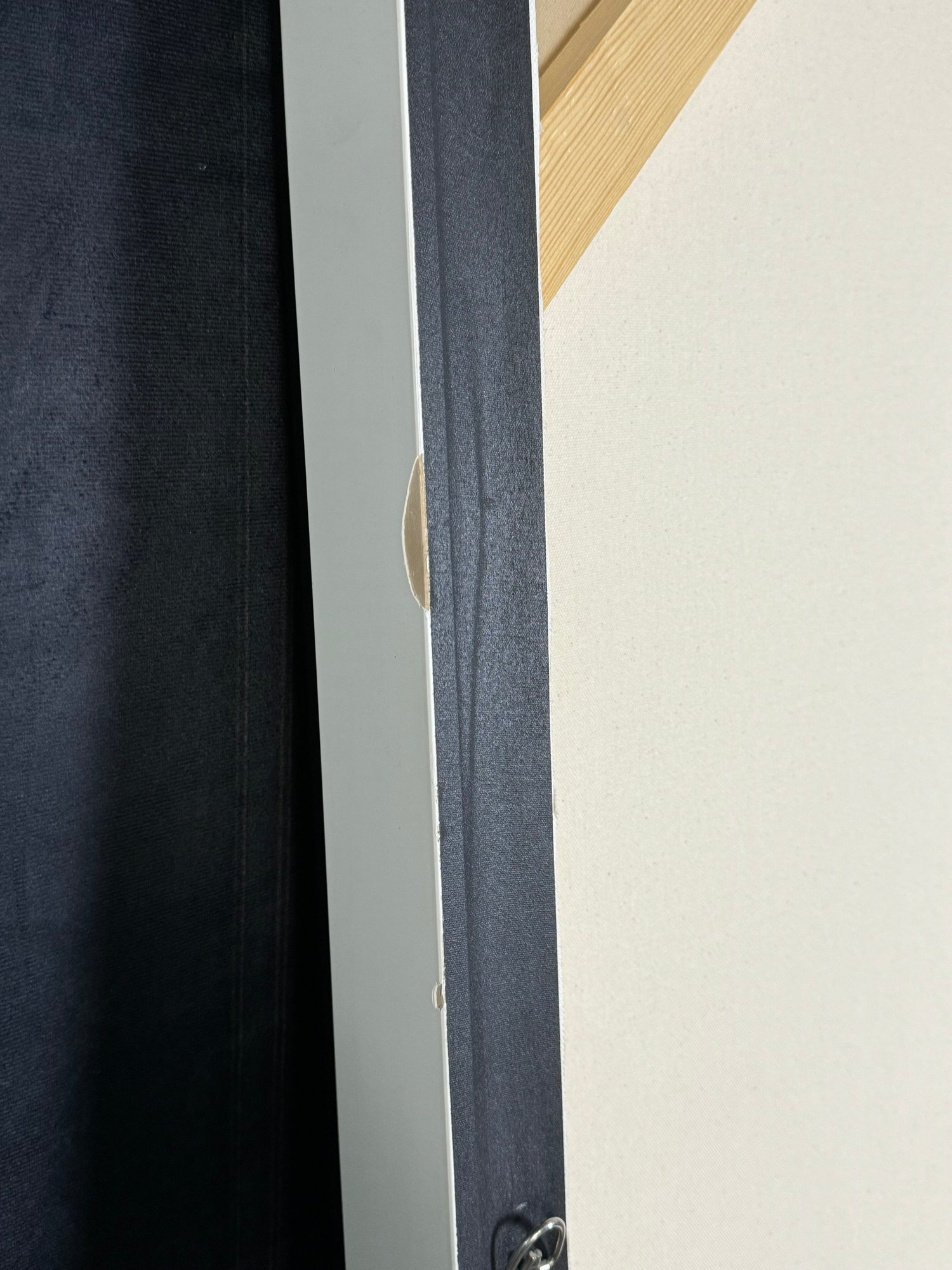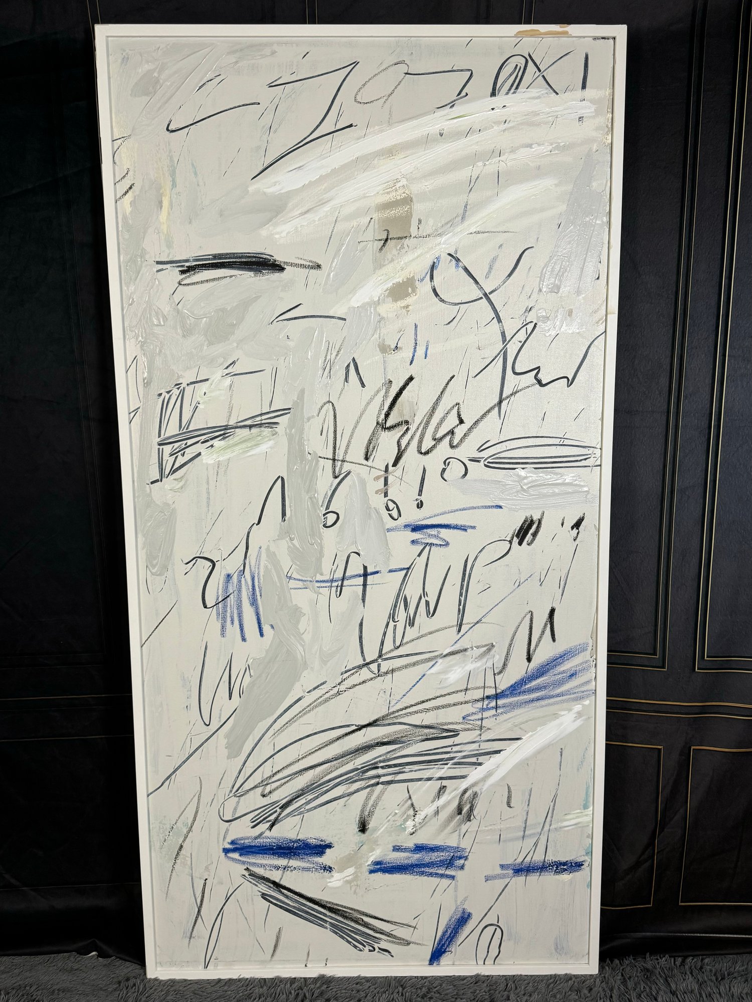 There is some damage to the painted white wood frame that is photo-documented. This piece measures 37”W by 73.5”H.