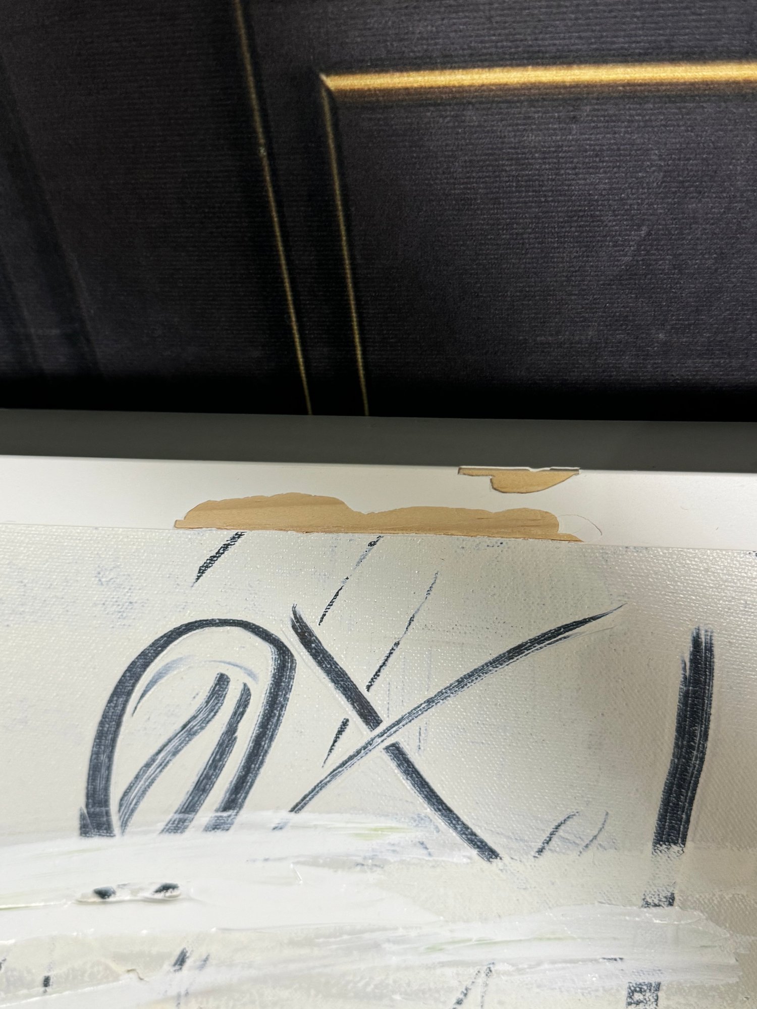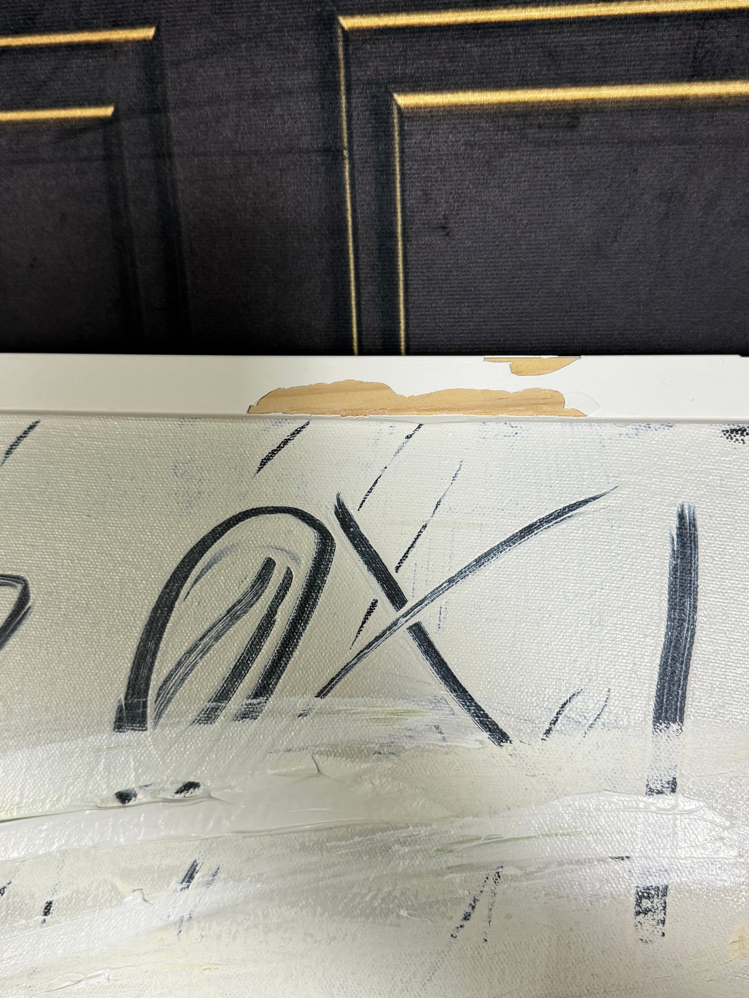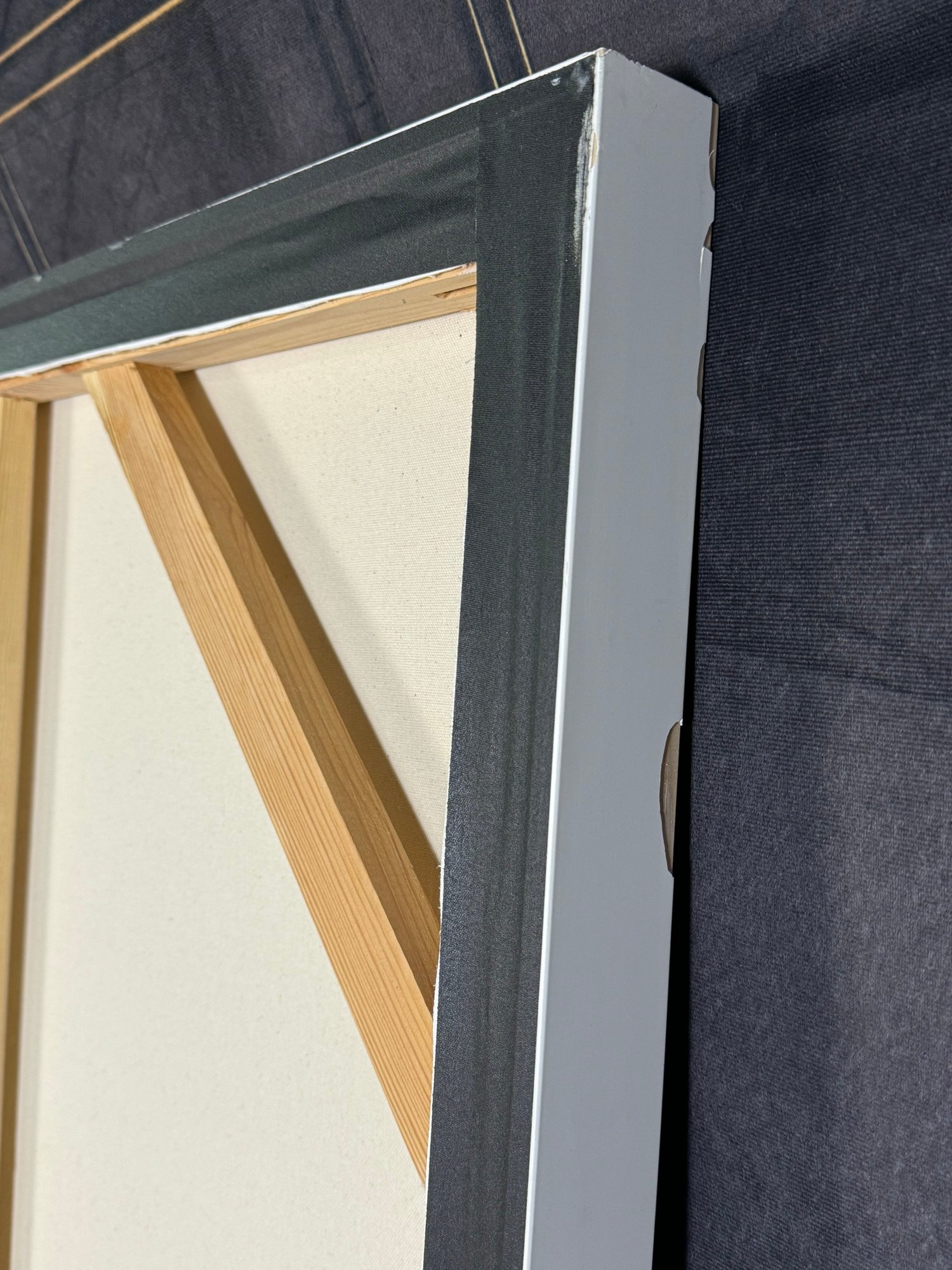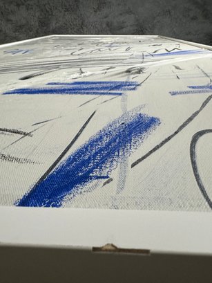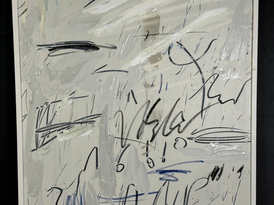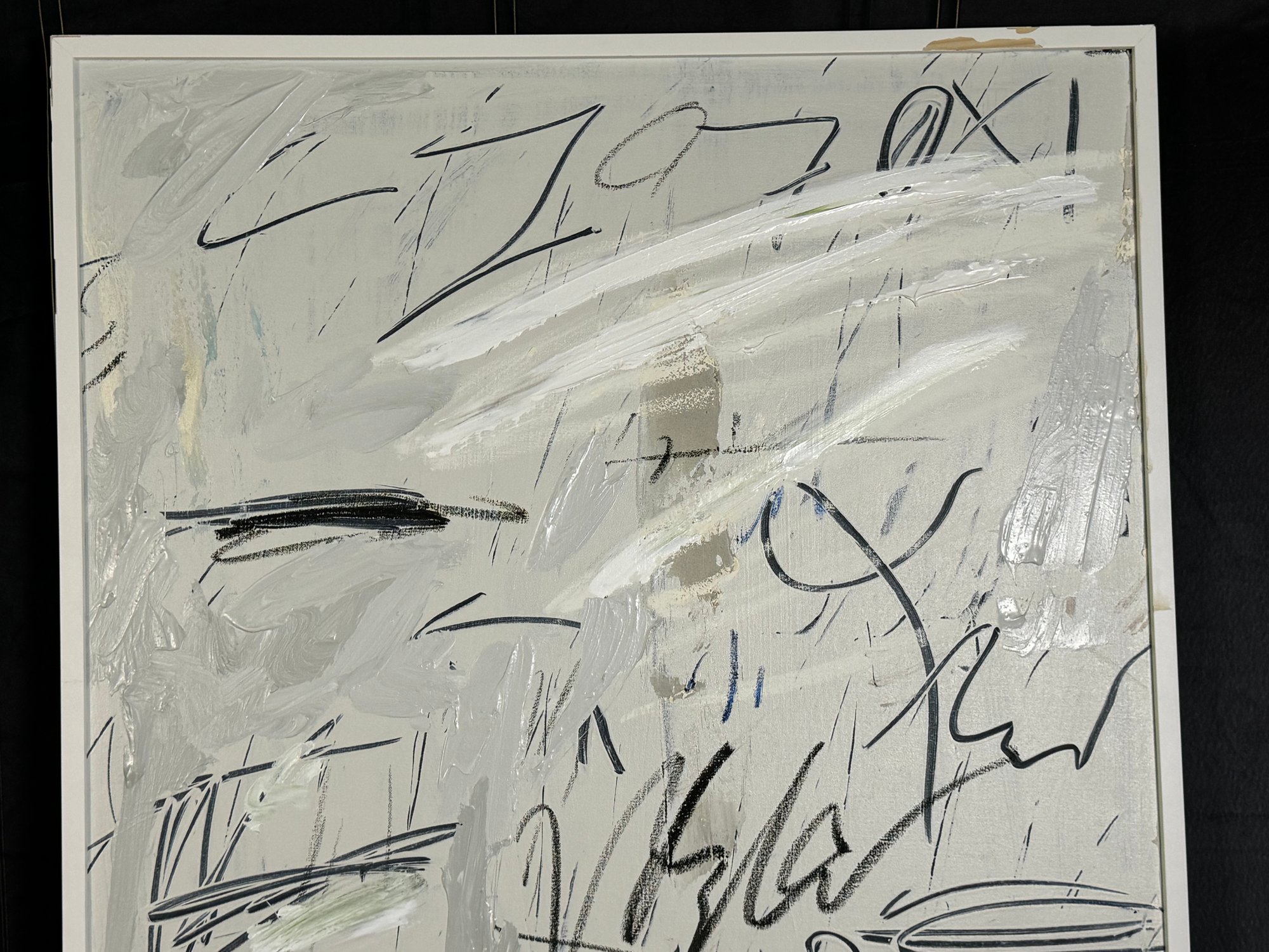 There is some damage to the painted white wood frame that is photo-documented. This piece measures 37”W by 73.5”H.