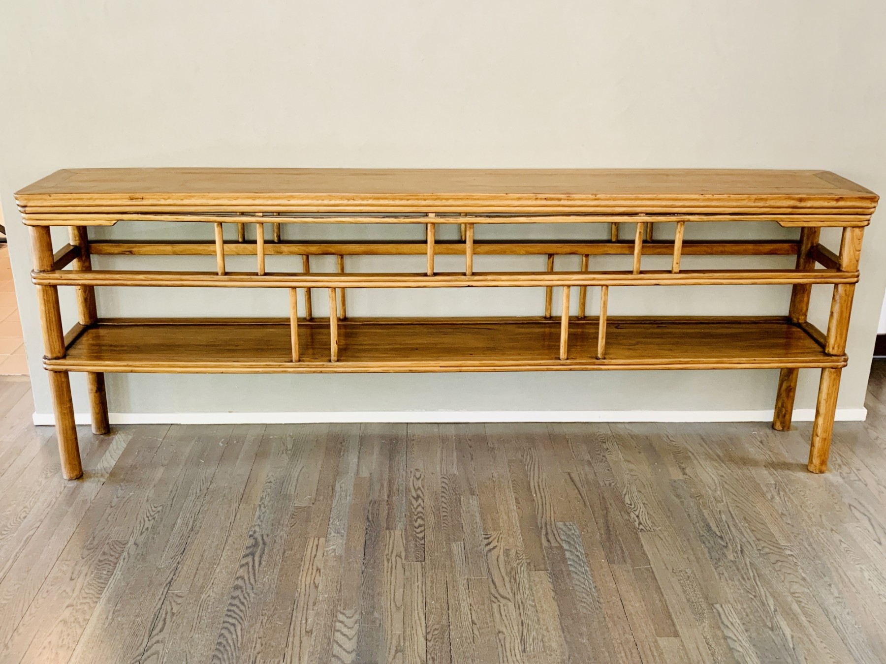This large statement console table measures 101” long by 16” wide by 37.5” tall.