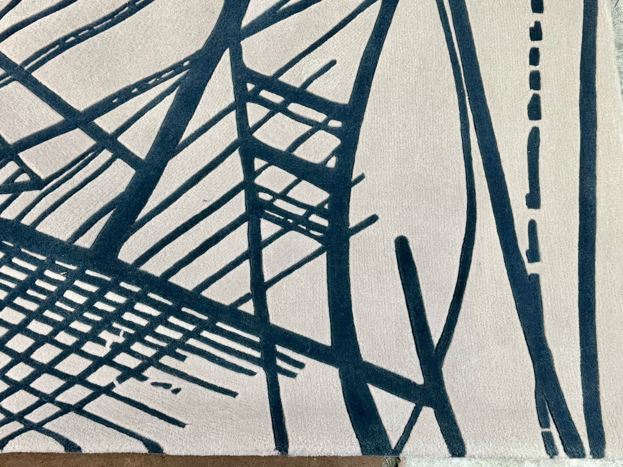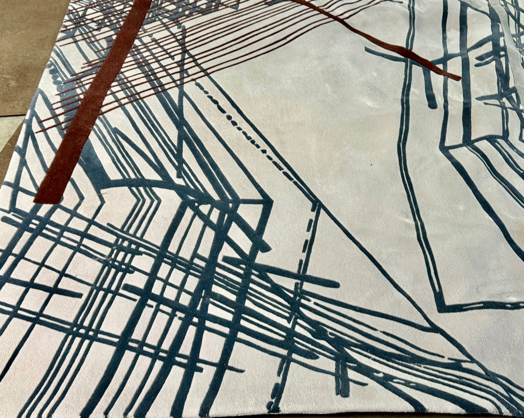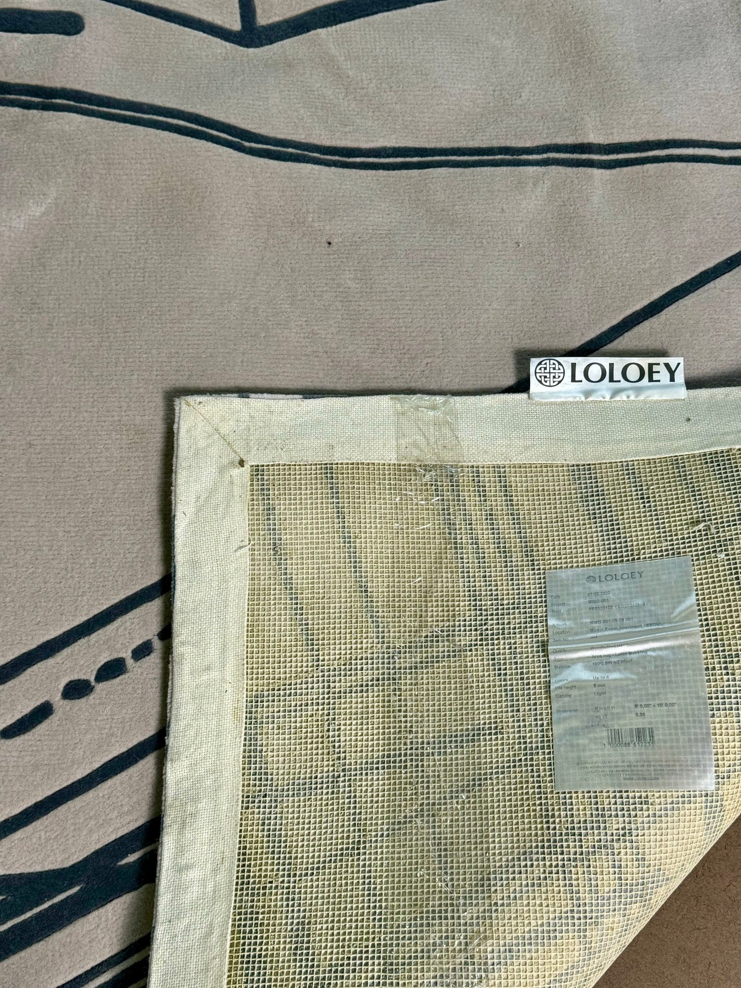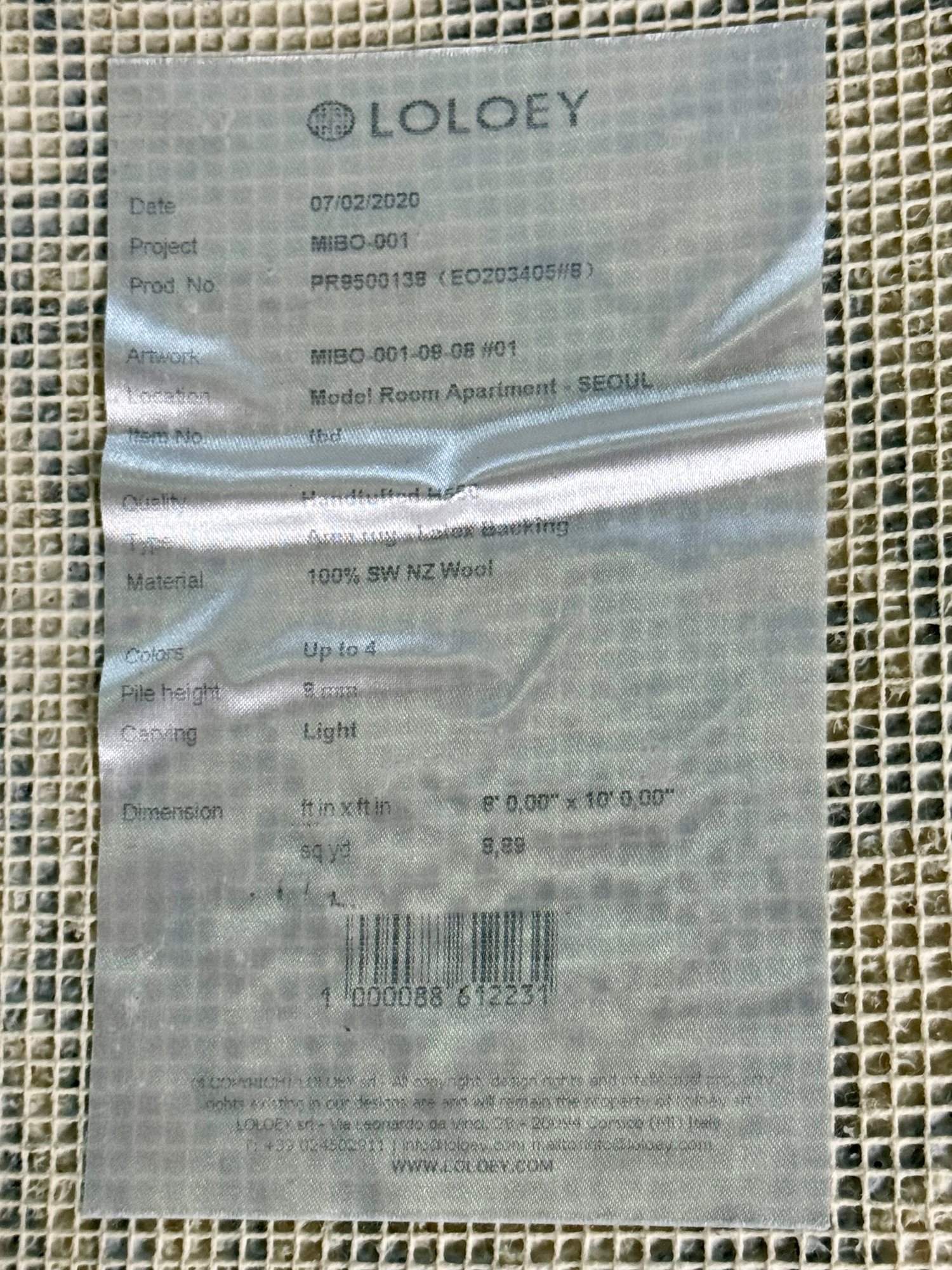 This rug is made from New Zealand Wool and measures 96”w by 120”l.