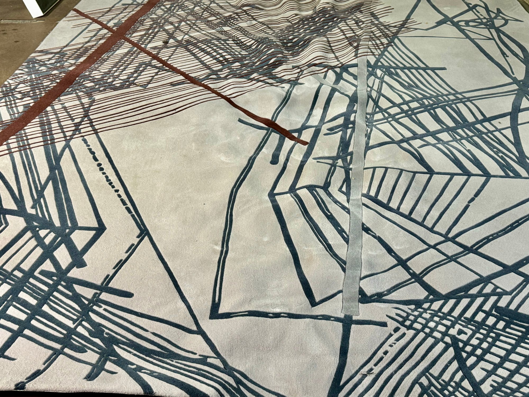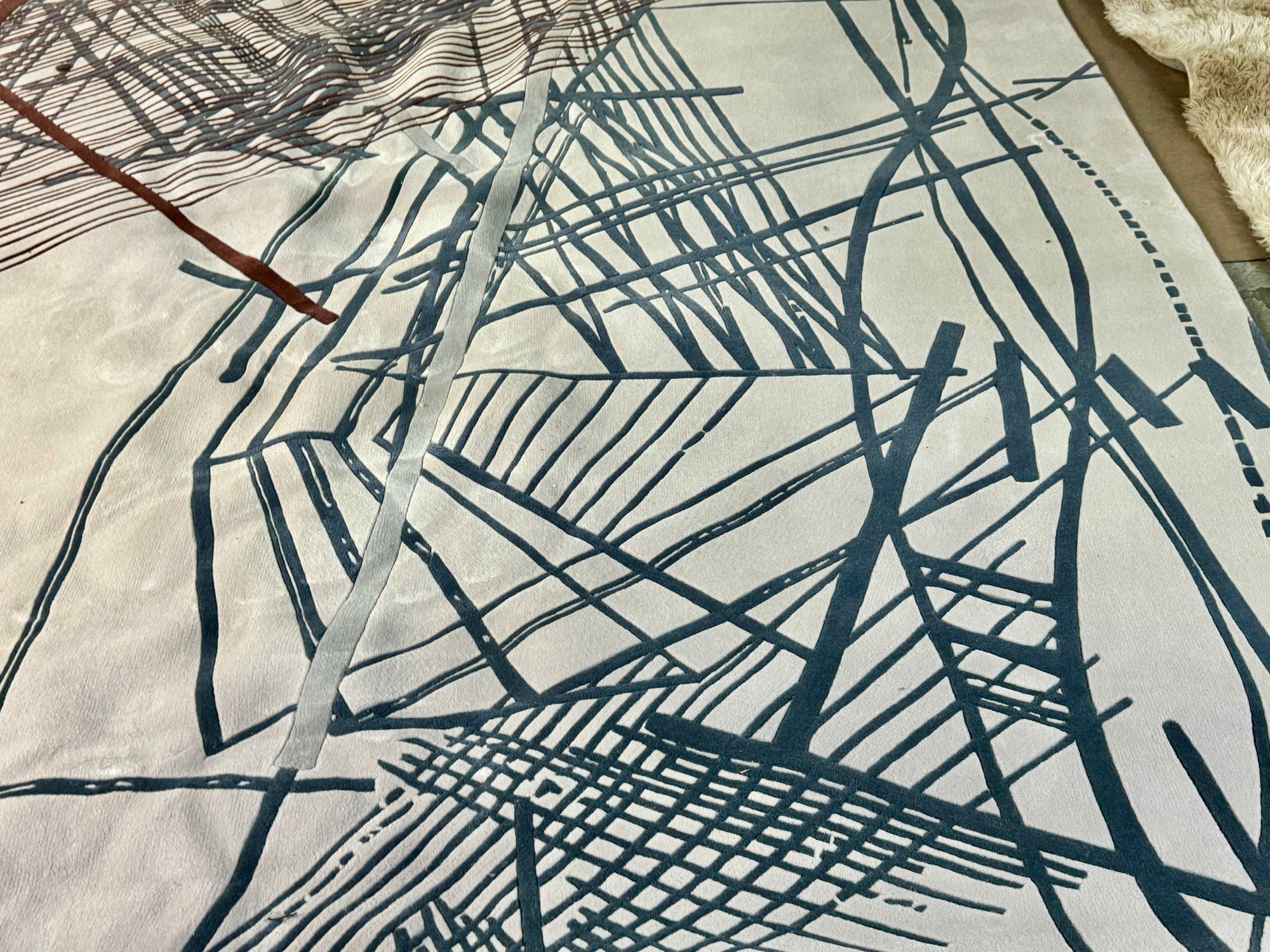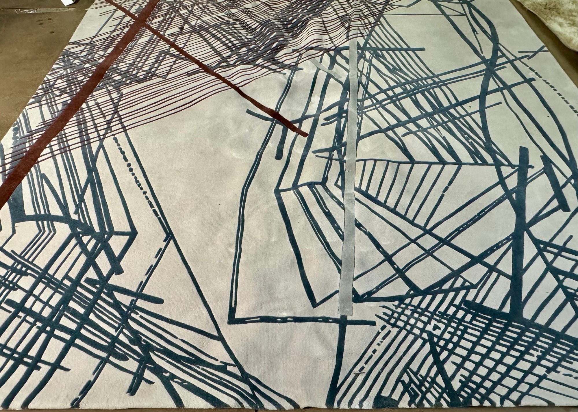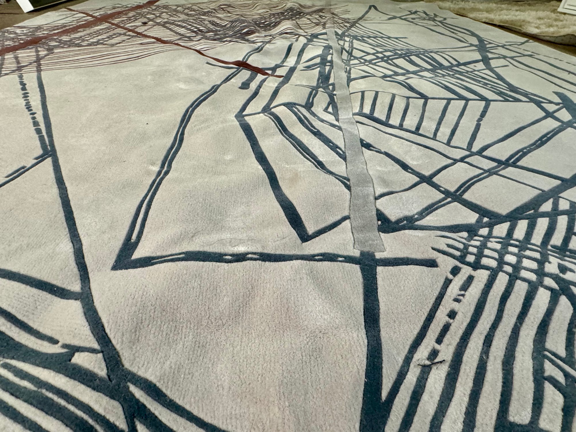 This rug is made from New Zealand Wool and measures 96”w by 120”l.