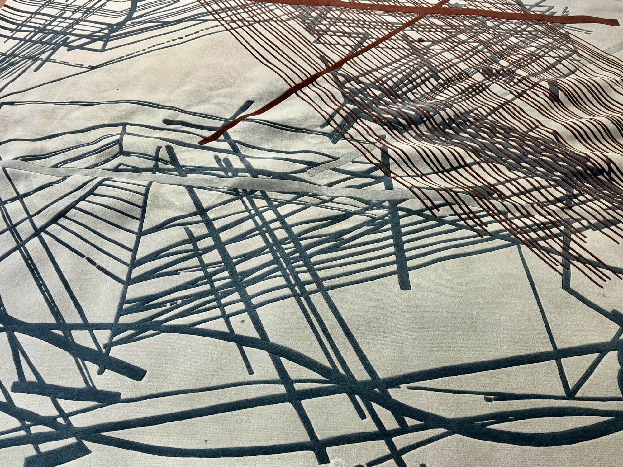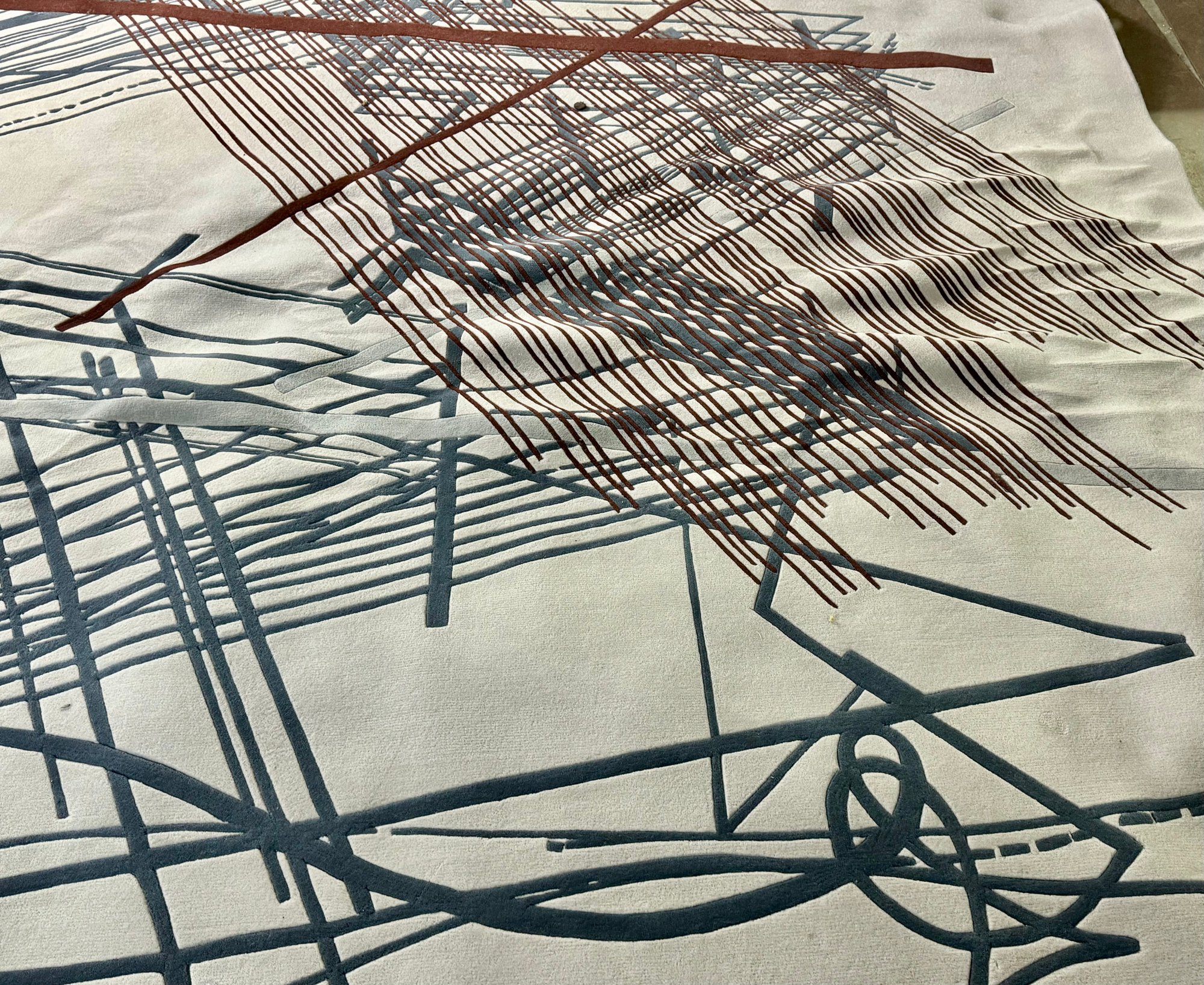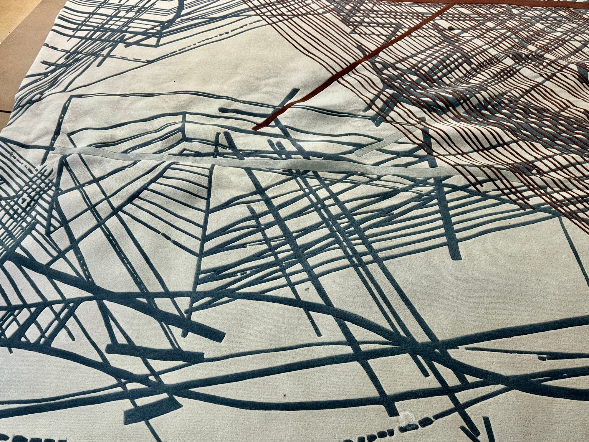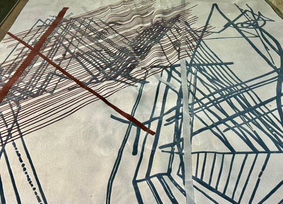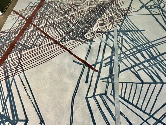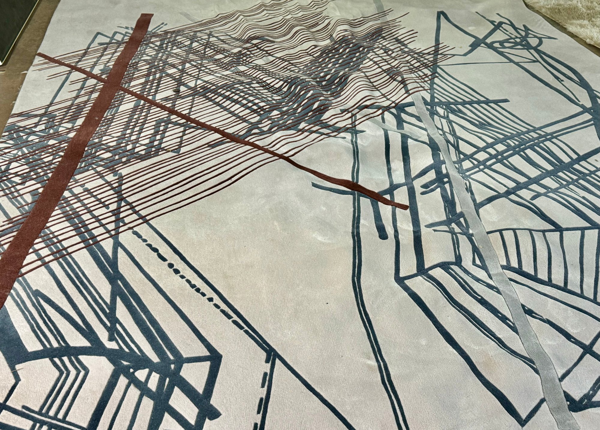 This rug is made from New Zealand Wool and measures 96”w by 120”l.